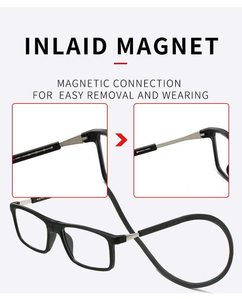 Nueva cinta adhesiva suave portátil anti-perdida imán gafas anti-luz azul cómodas cuello de mediana edad gafas de lectura de periódicos