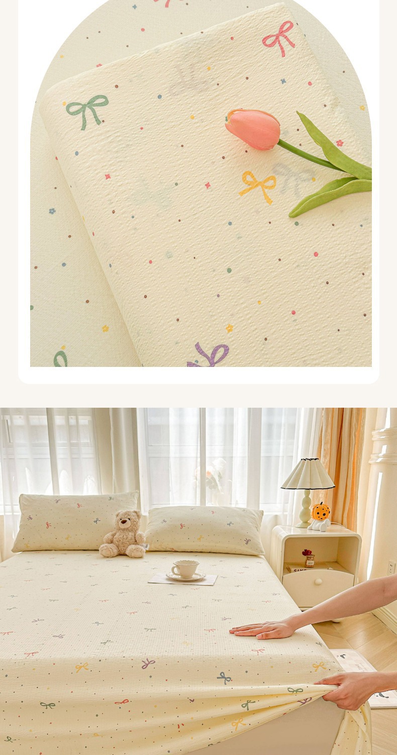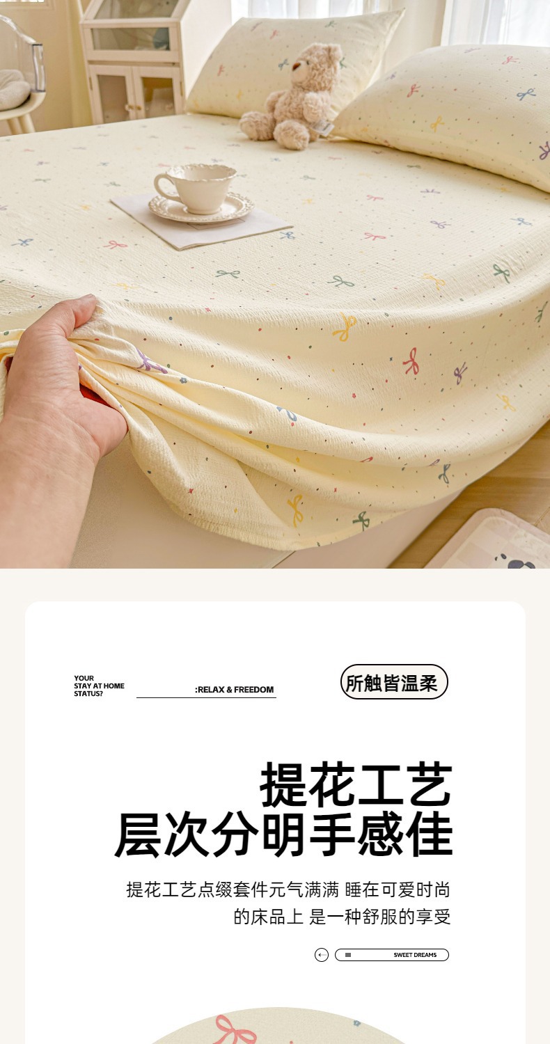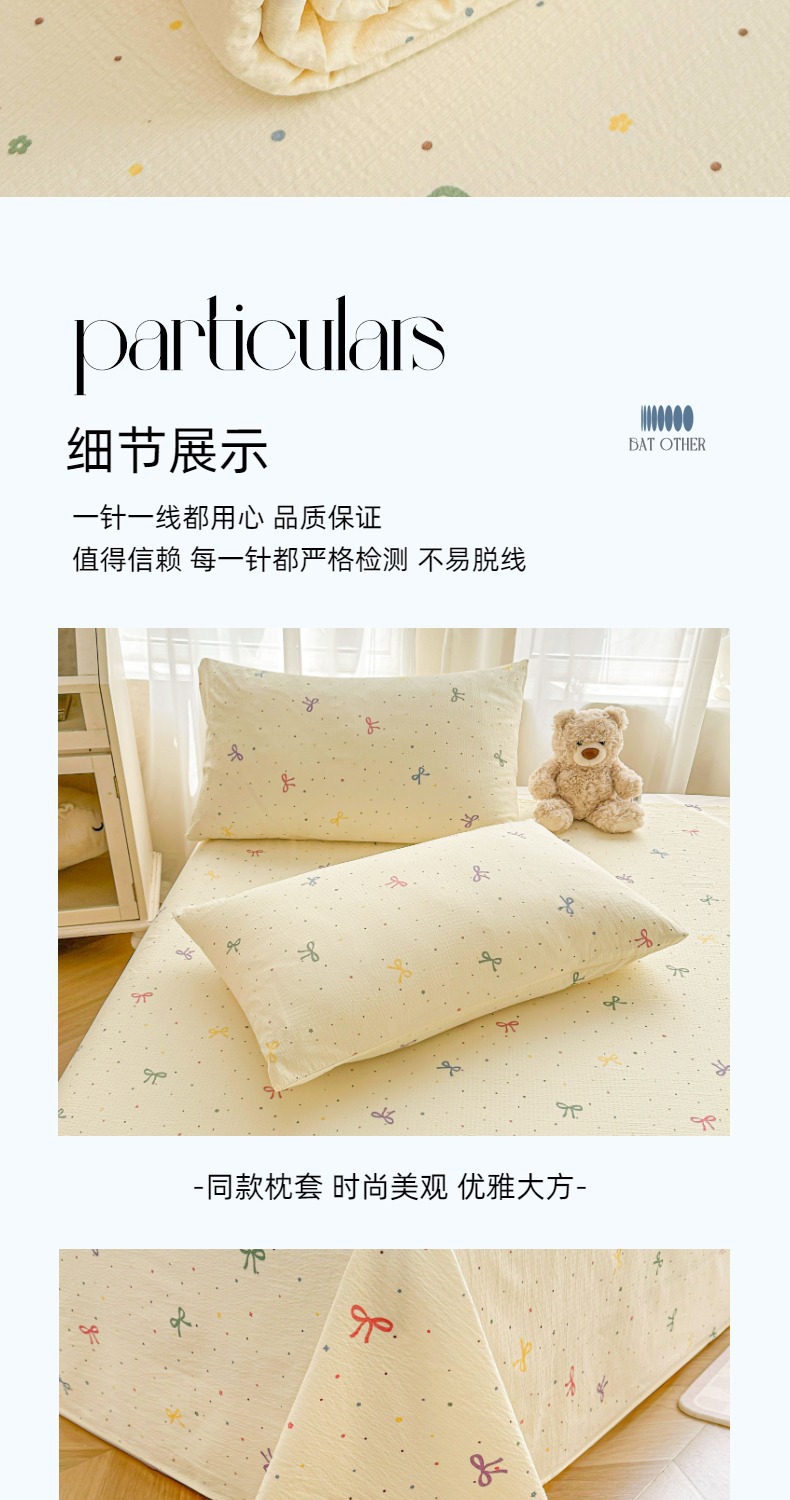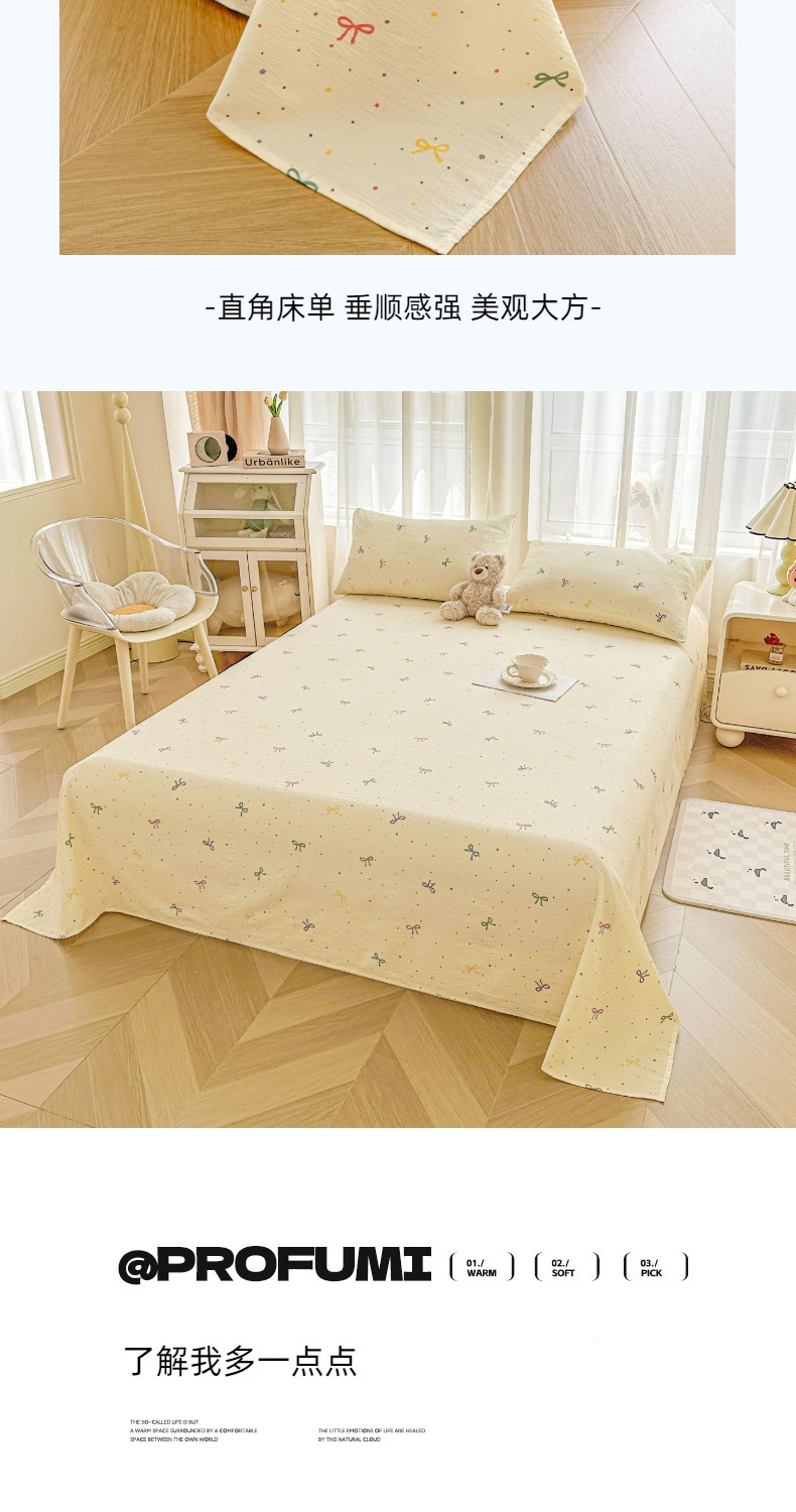 Juego de sábanas de algodón lavado de tres piezas: Sábana de gasa de doble capa Clase A, funda de almohada y sábana individual para dormitorio de estudiantes de verano.