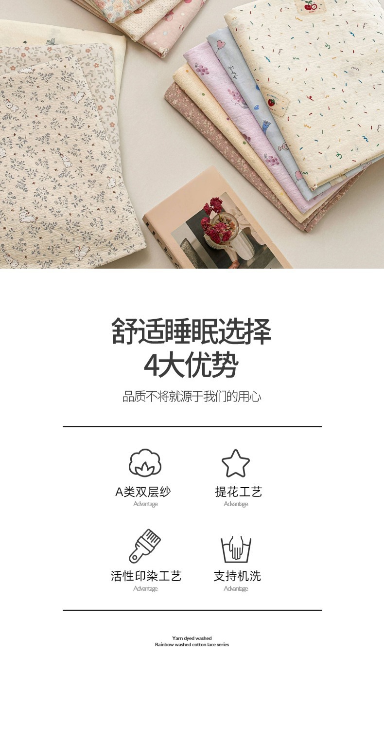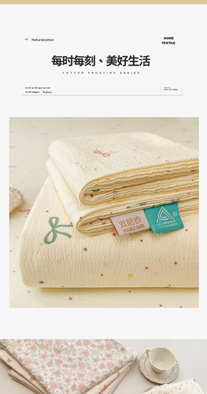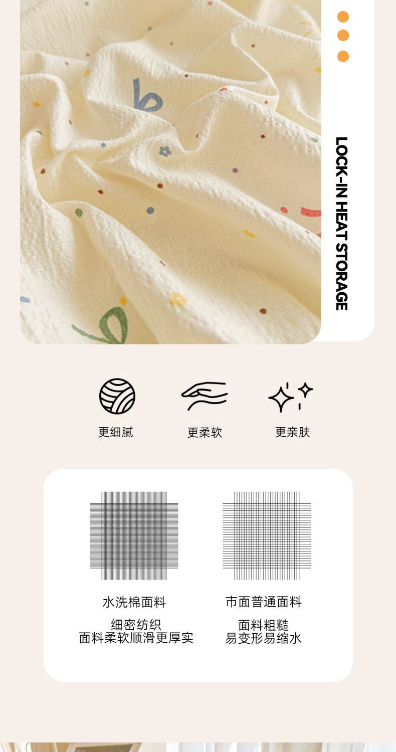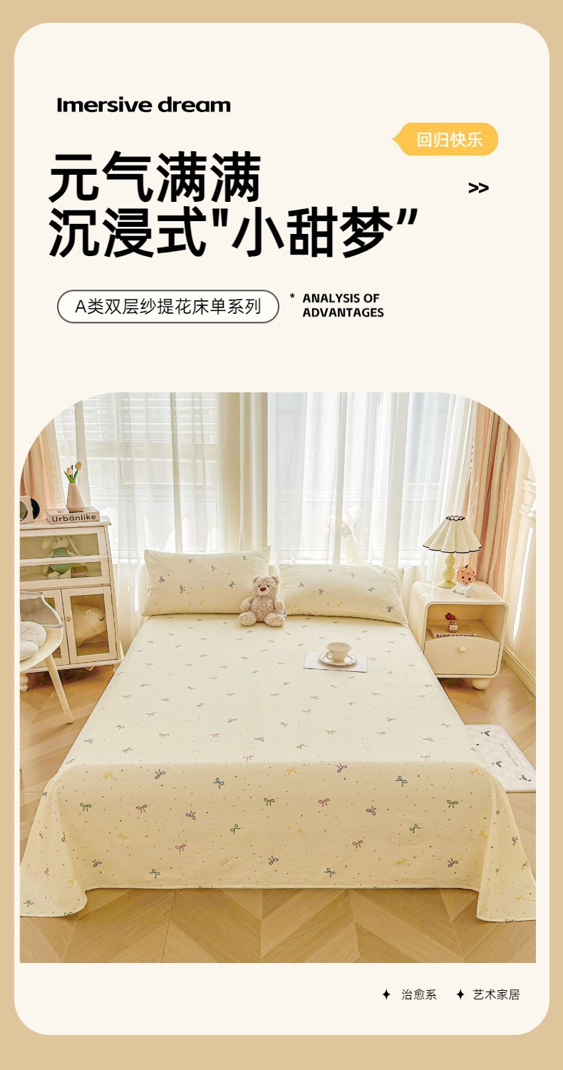 Juego de sábanas de algodón lavado de tres piezas: Sábana de gasa de doble capa Clase A, funda de almohada y sábana individual para dormitorio de estudiantes de verano.