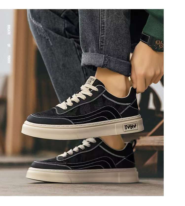 Zapatos de lona para hombres de invierno transpirables antiolores zapatos de tela negra zapatos de skate camuflado explosivo anti-deslizante zapatos de moda casuales
