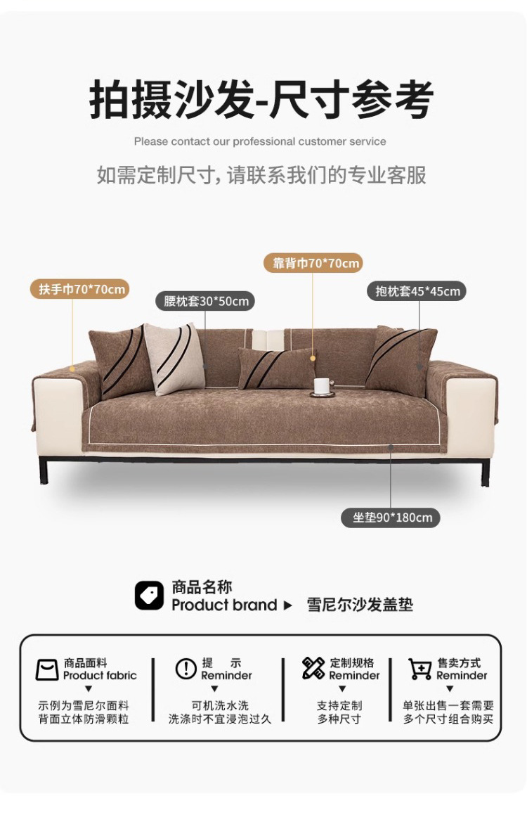 2025 nuevo cojín de sofá de lujo ligero de alta calidad, cojín antideslizante de Schneider, cuatro estaciones de sofá recto universal