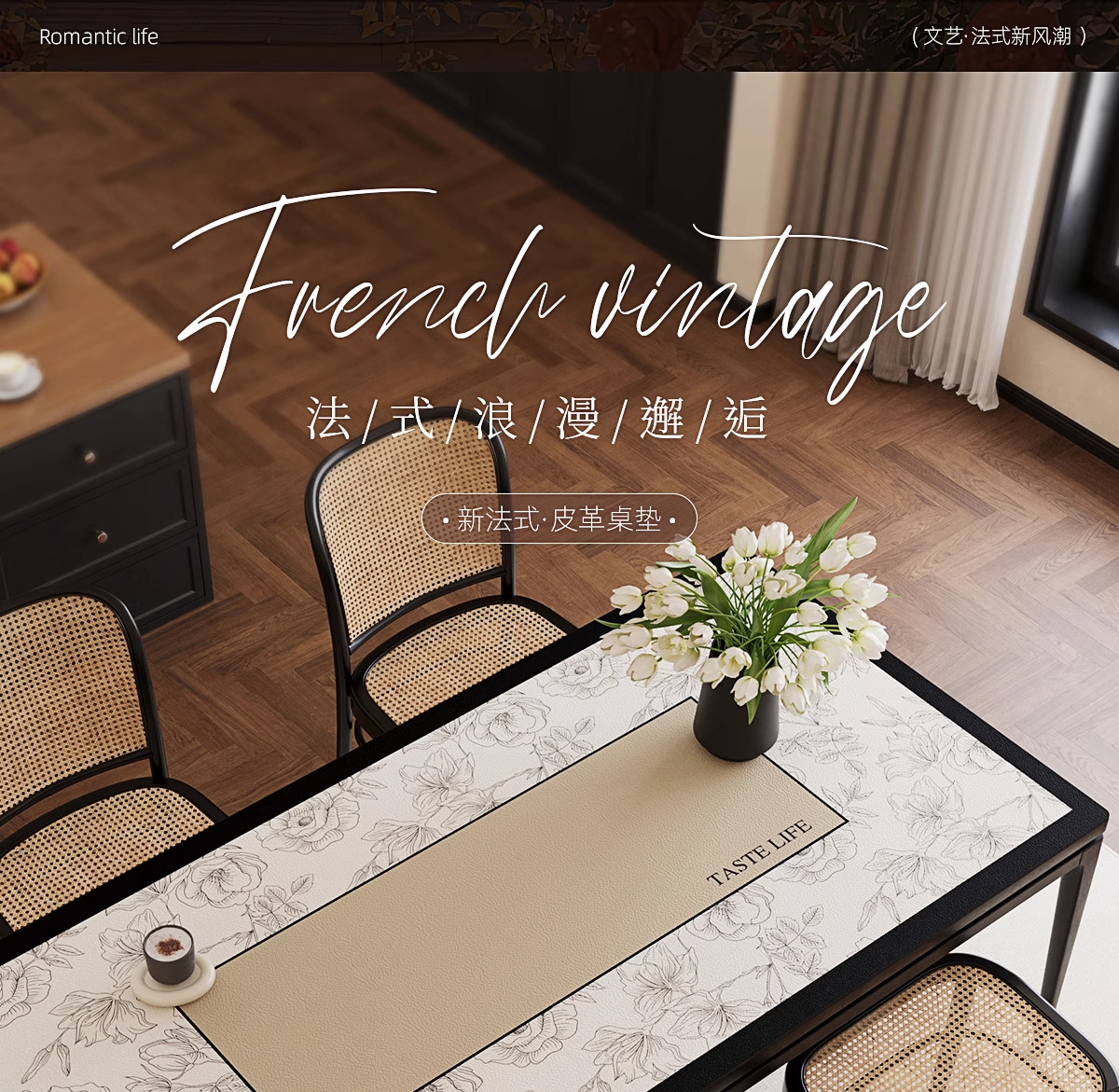 Francés retro lujoso lujoso 2025 nuevo cojín de mesa impermeable a prueba de aceite sin lavado a prueba de quemaduras de cuero toallas de mesa de estilo medieval
