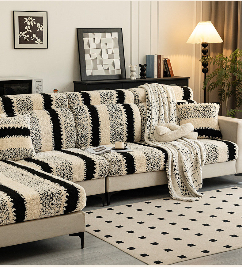 Sofá cubierta 2024 nuevo otoño invierno engrosado peluche elástico todo incluido sofá gaza cojín de madera sólida sofá cubierta de respaldo