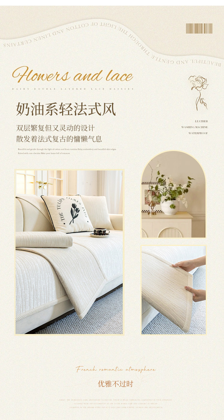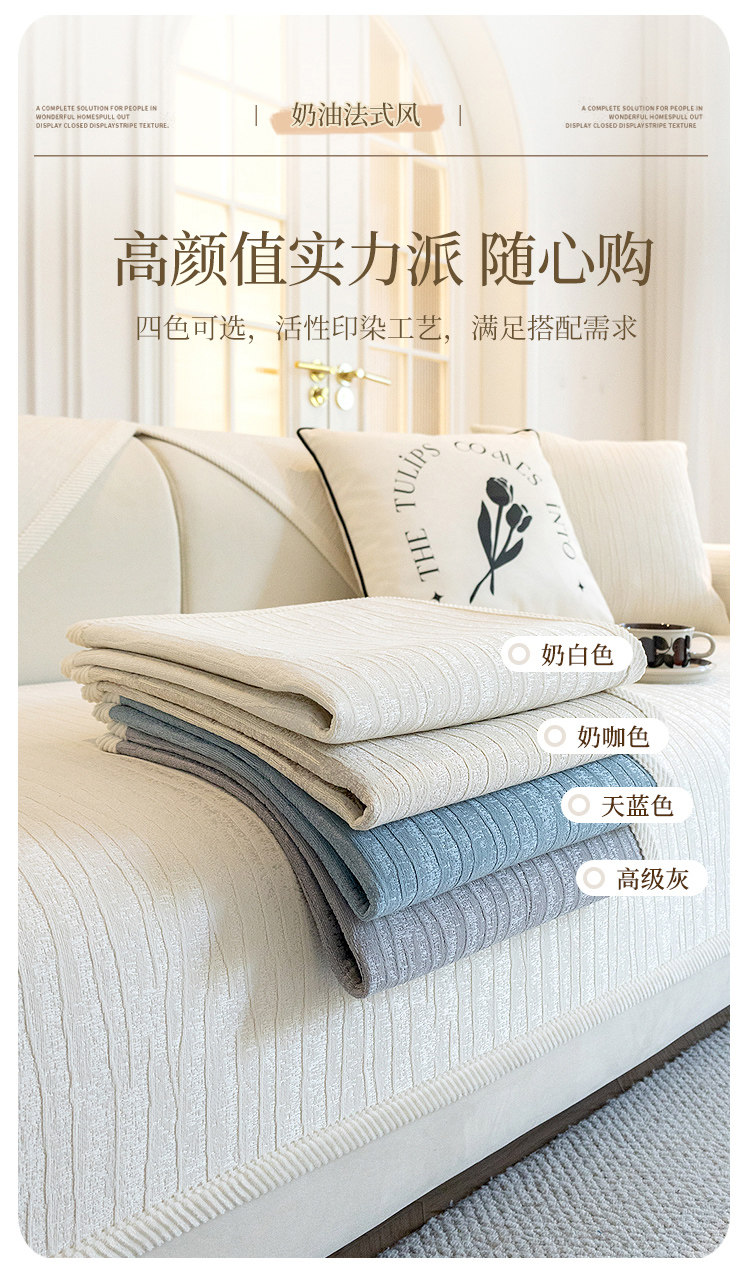 Sofá de aire crema francesa cuatro estaciones general 2024 nuevo cojín antideslizante de alta calidad sofá de piel cubierta tela