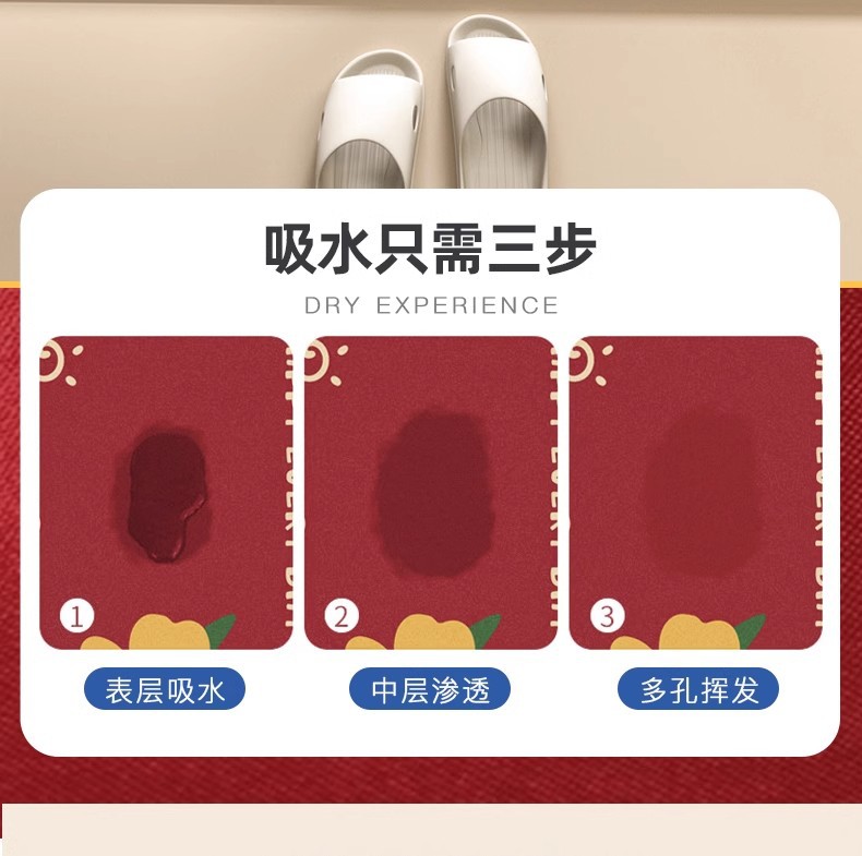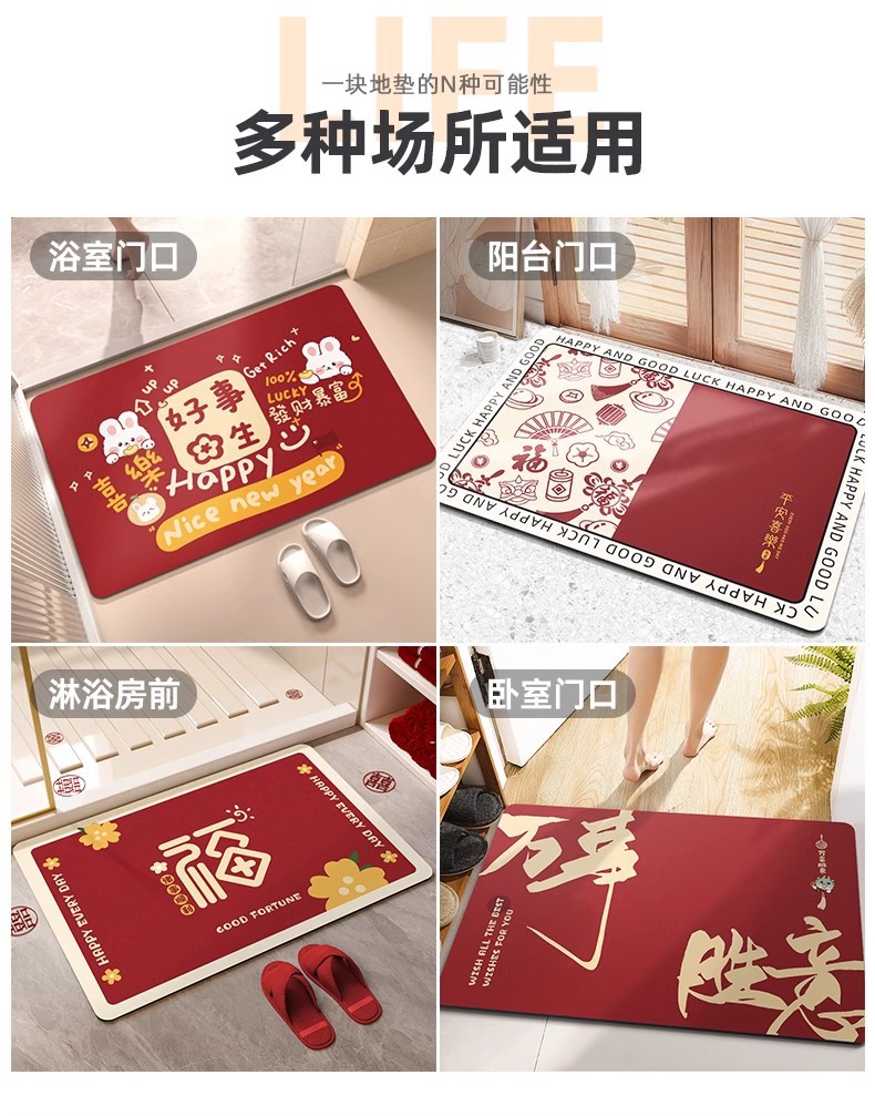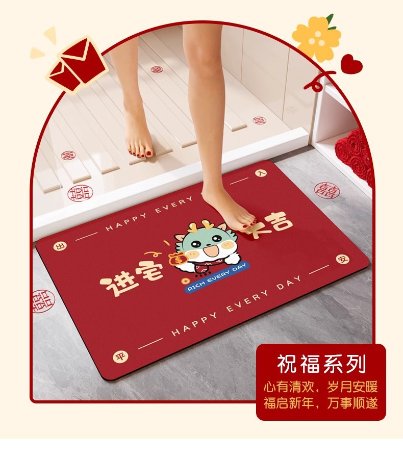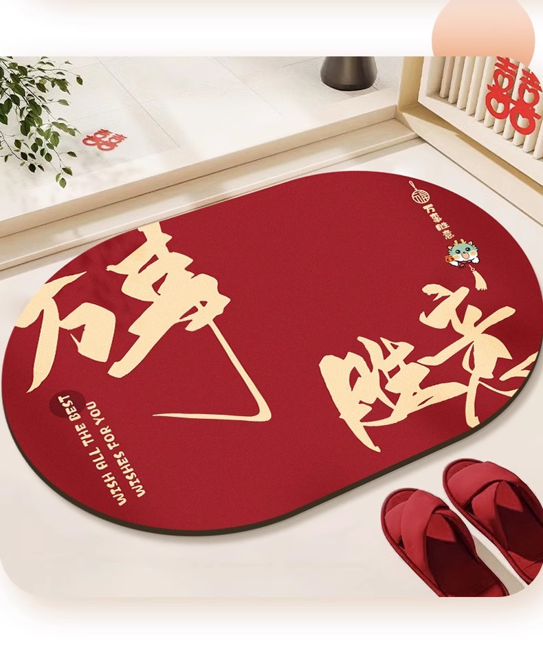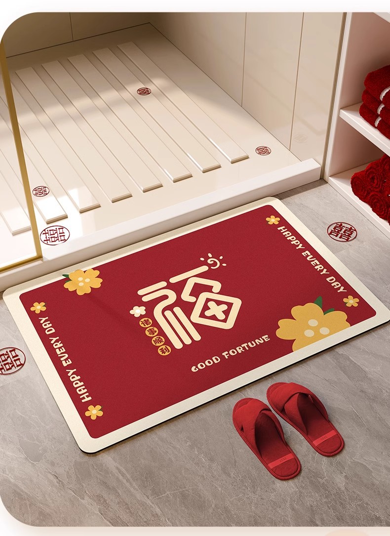 Año Nuevo alfombra de baño de absorción rápida almohadilla de pies secos barro de diatomas rojo puerta de baño antideslizante alfombra de boda
