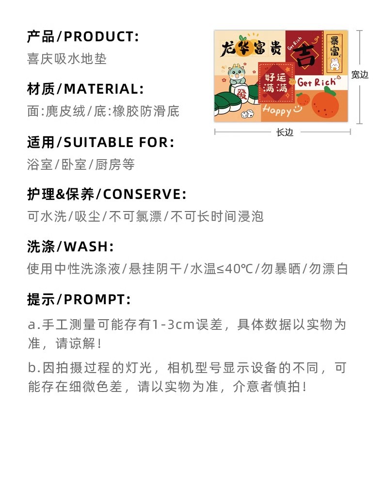 | Tamaño | 30cm * 50cm (3 mm de espesor)| Tamaño pequeño no recomendado, 40cm * 60cm [espesor 3mm].| Succión instantánea, secado rápido, 45cm * 70cm, espesor 3mm| Seguridad antideslizante| Hot sale], 50cm * 80cm [3mm de espesor]| Limpieza conveniente| Hot sale], 60cm * 90cm [3mm de espesor]| Materiales ecológicos], 80cm * 120cm [3mm de espesor]|[Corte plano], tamaño personalizado para contactar con el servicio al cliente para cambiar el precio [No soporta devoluciones] |
