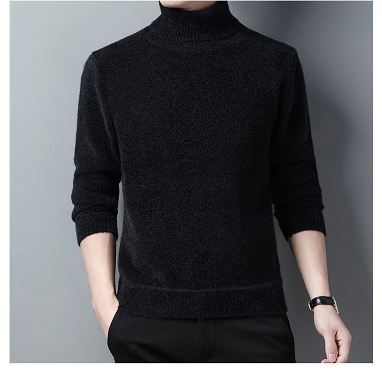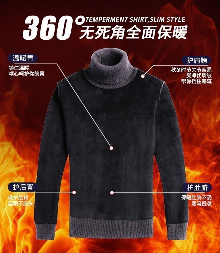 [Aumentar el grosor de terciopelo] Suéter de cuello alto para hombre genuino de Chenille, camiseta de punto cálida de mediana edad