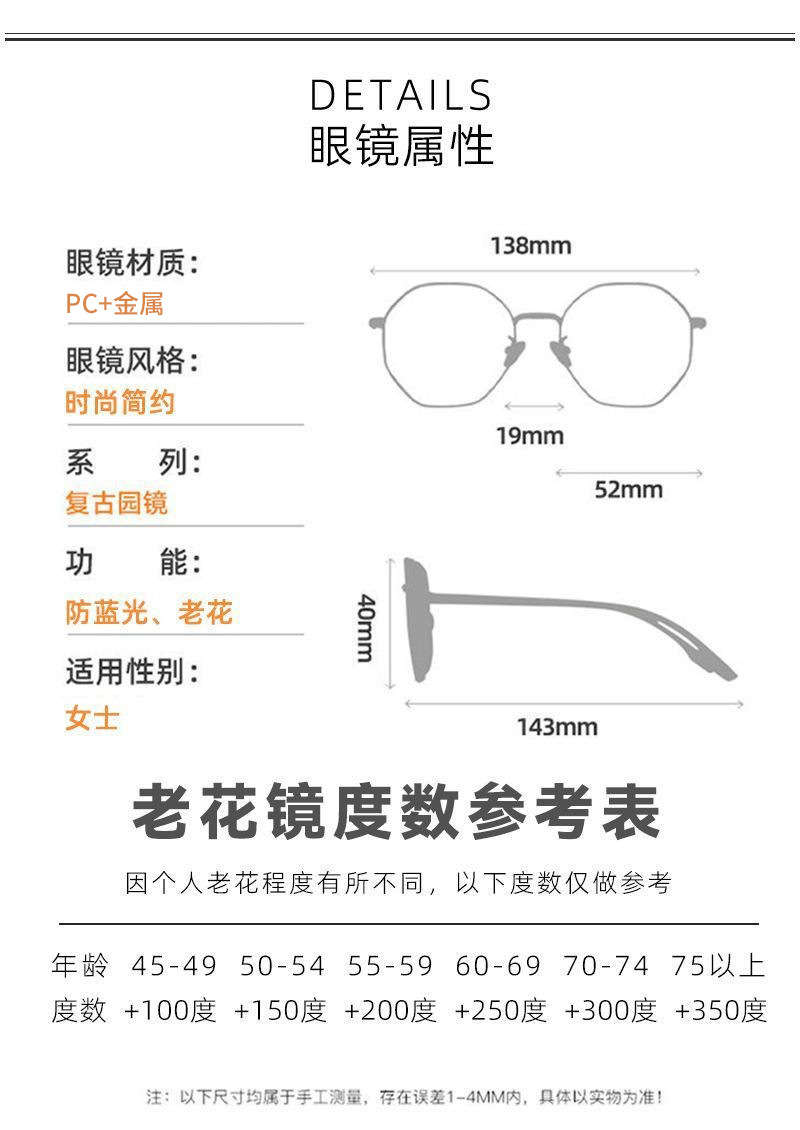 Clásico y elegante damas gafas de luz de metal para mujeres de mediana edad de moda anti-luz azul marco de gafas de luz de luz