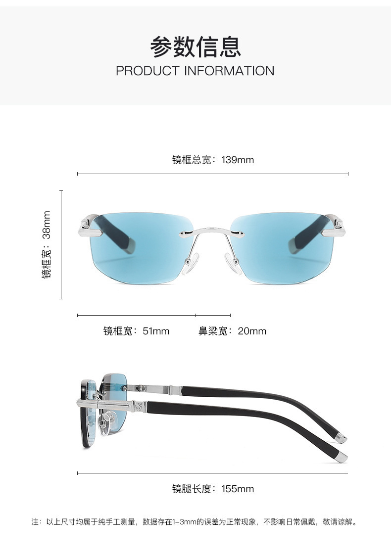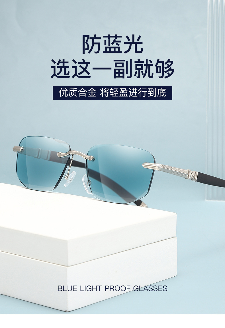 Sin marcos elegantes gafas de moda ultraligeras mujeres cortadas de tinta verde gafas de alta definición para hombres de negocios de alto nivel parecen jóvenes