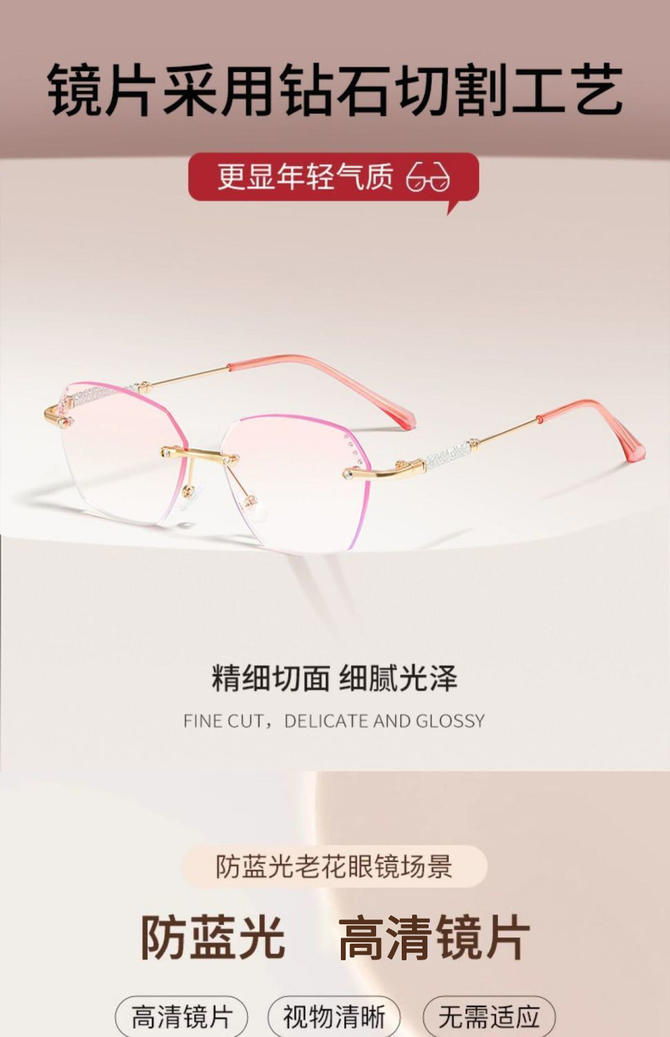 2026 nuevo poligono sin bordes gafas de luz ultra ligera moda red anti-luz azul gafas de luz de alta calidad para mujeres