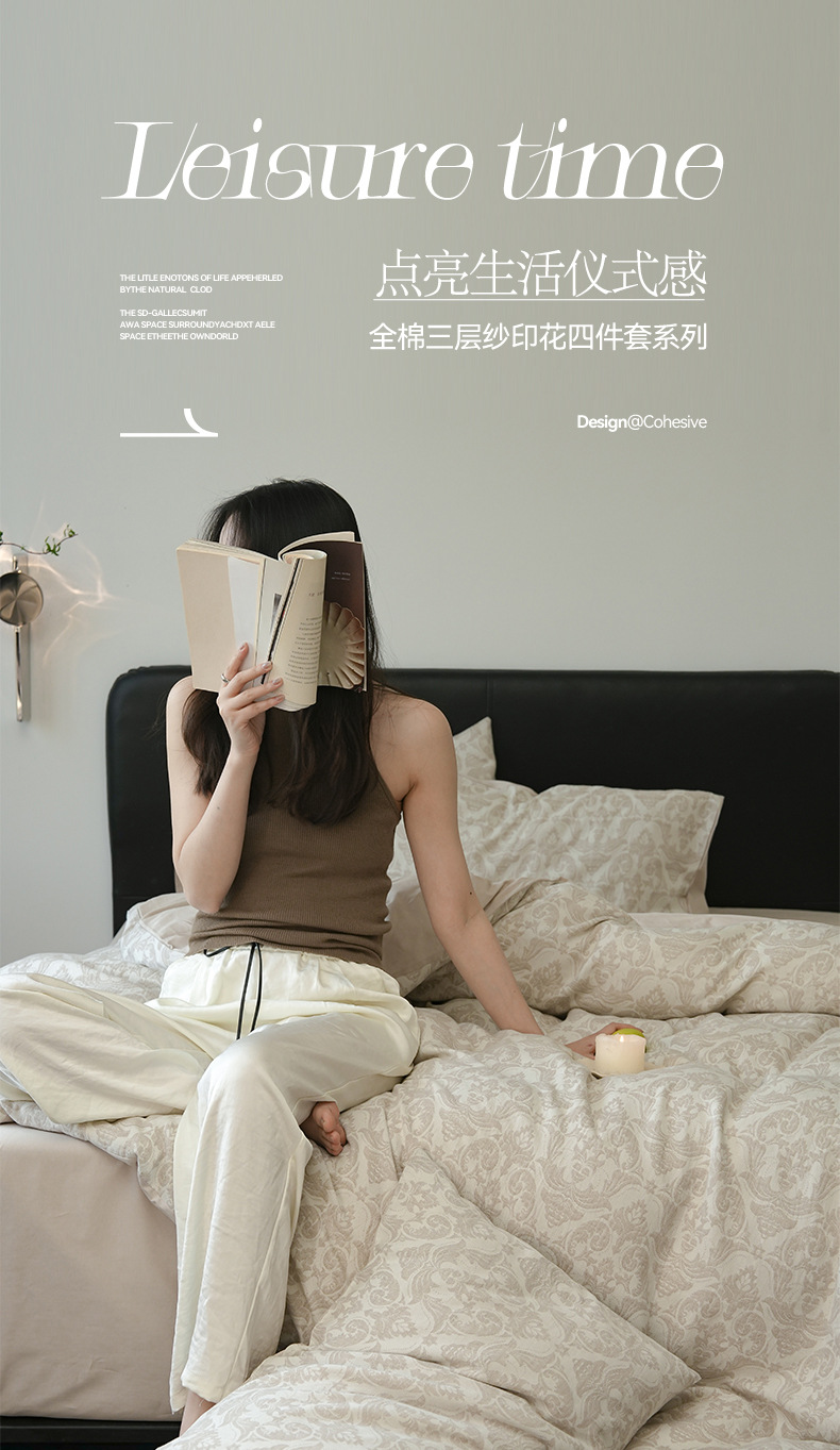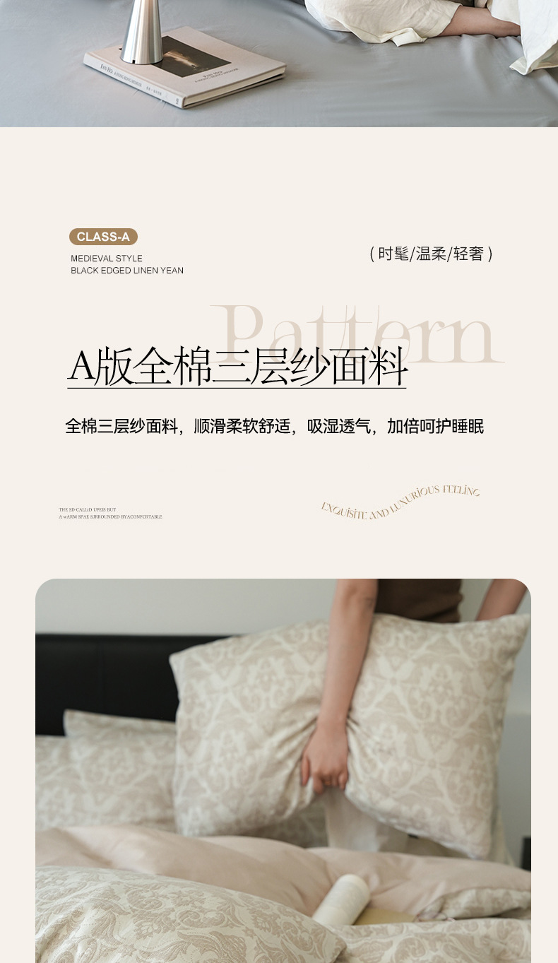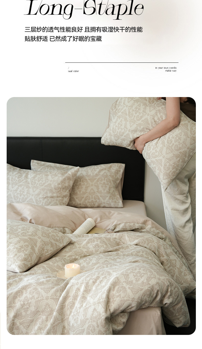 Cama de hilo de tres capas de cuatro piezas de algodón puro 2025, nuevo tipo de cuatro estaciones de sábanas de colcha de cama desnudas para dormir