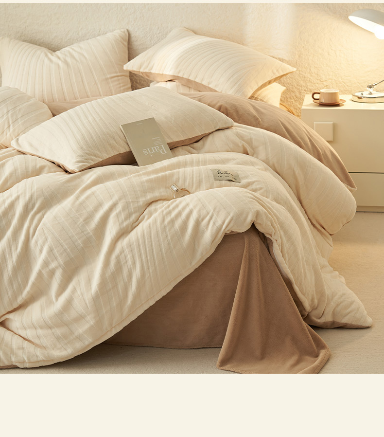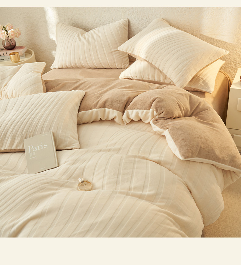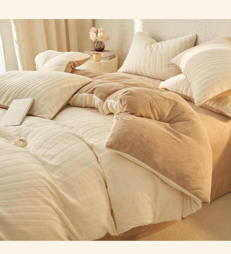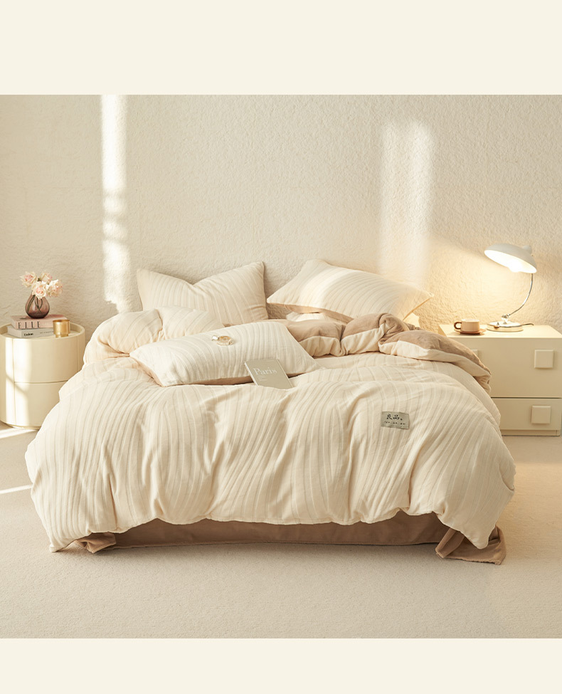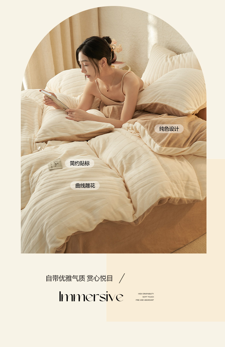Invierno de alta calidad cama de lana de leche de cuatro piezas cubierta de edredón de lana de doble cara sábanas de lana de coral franela gruesa