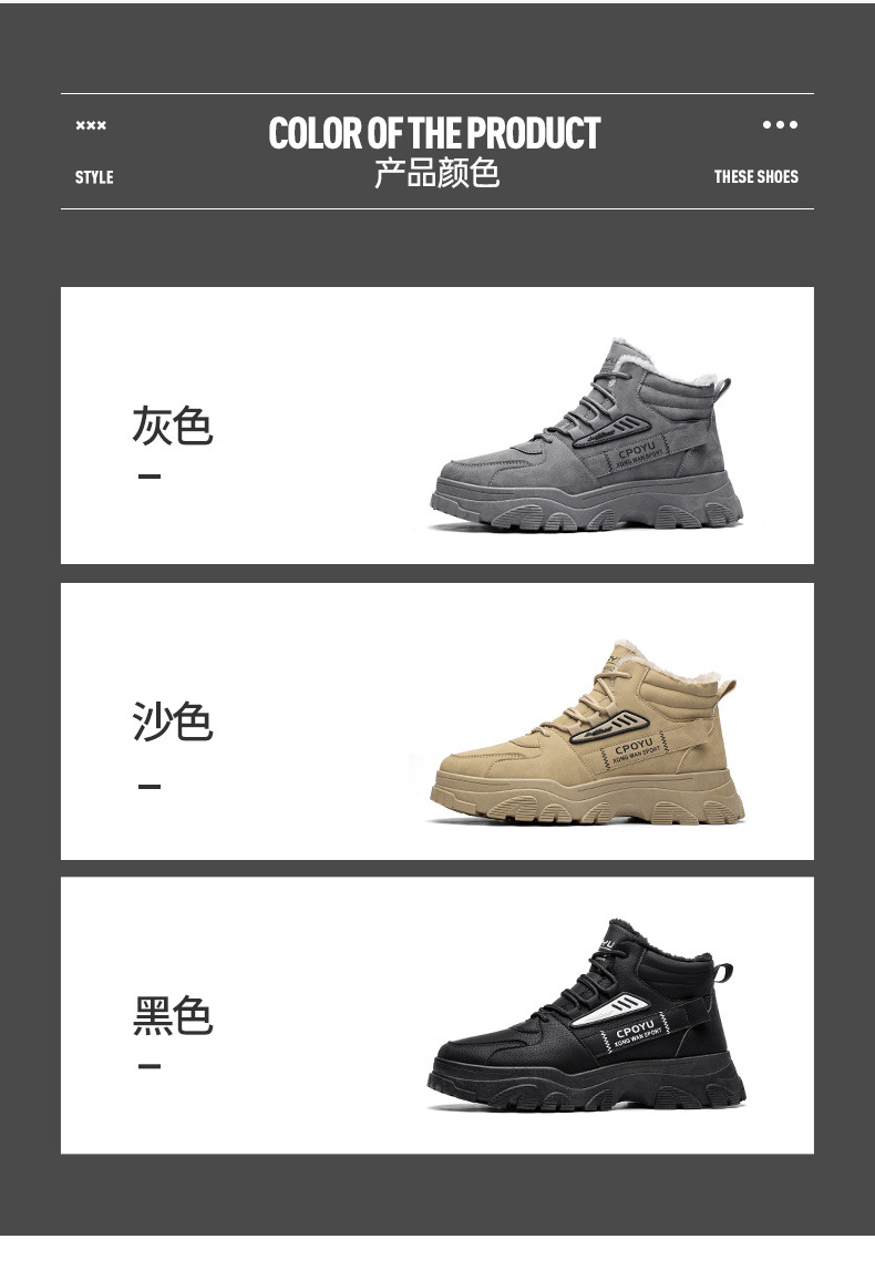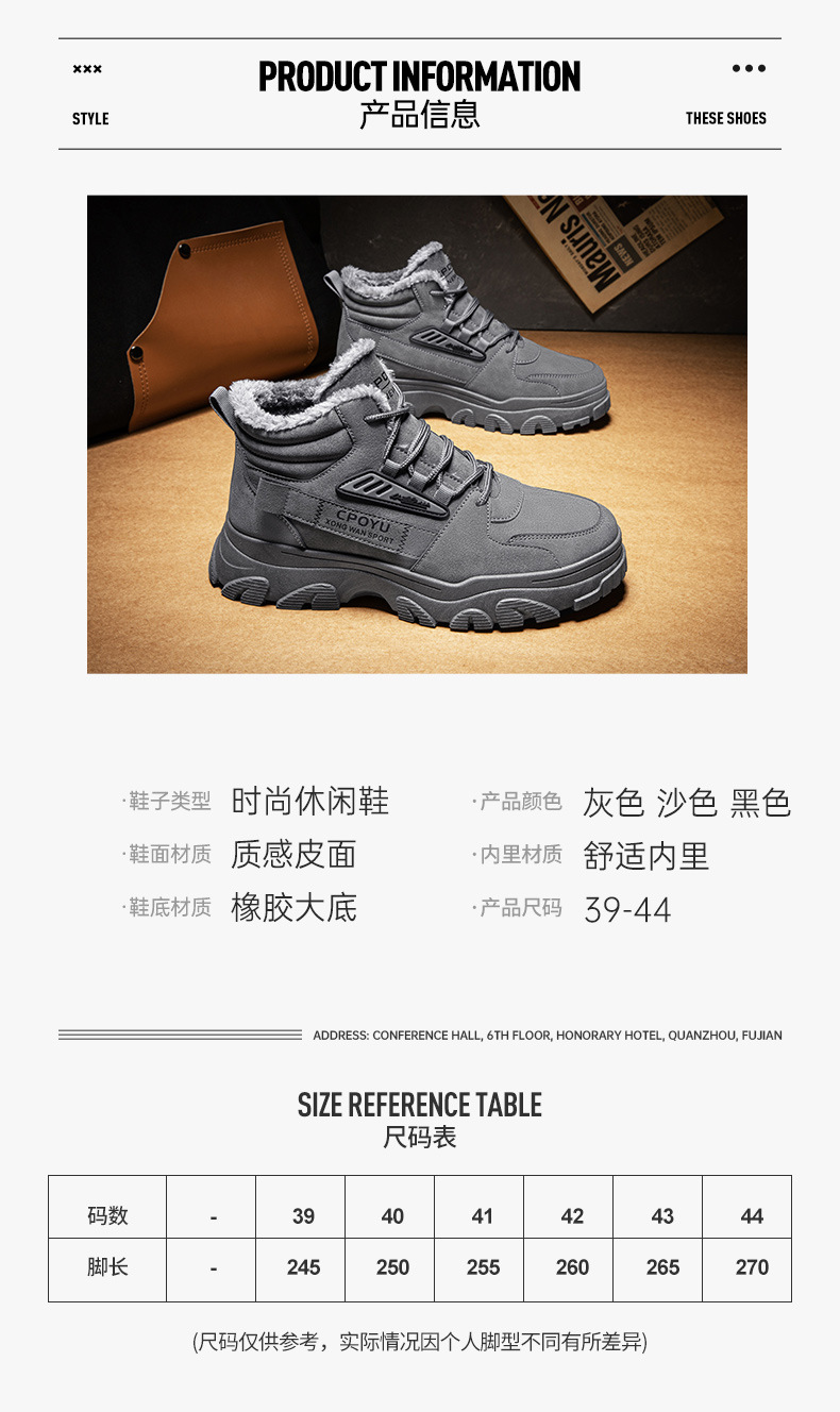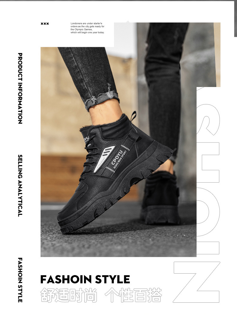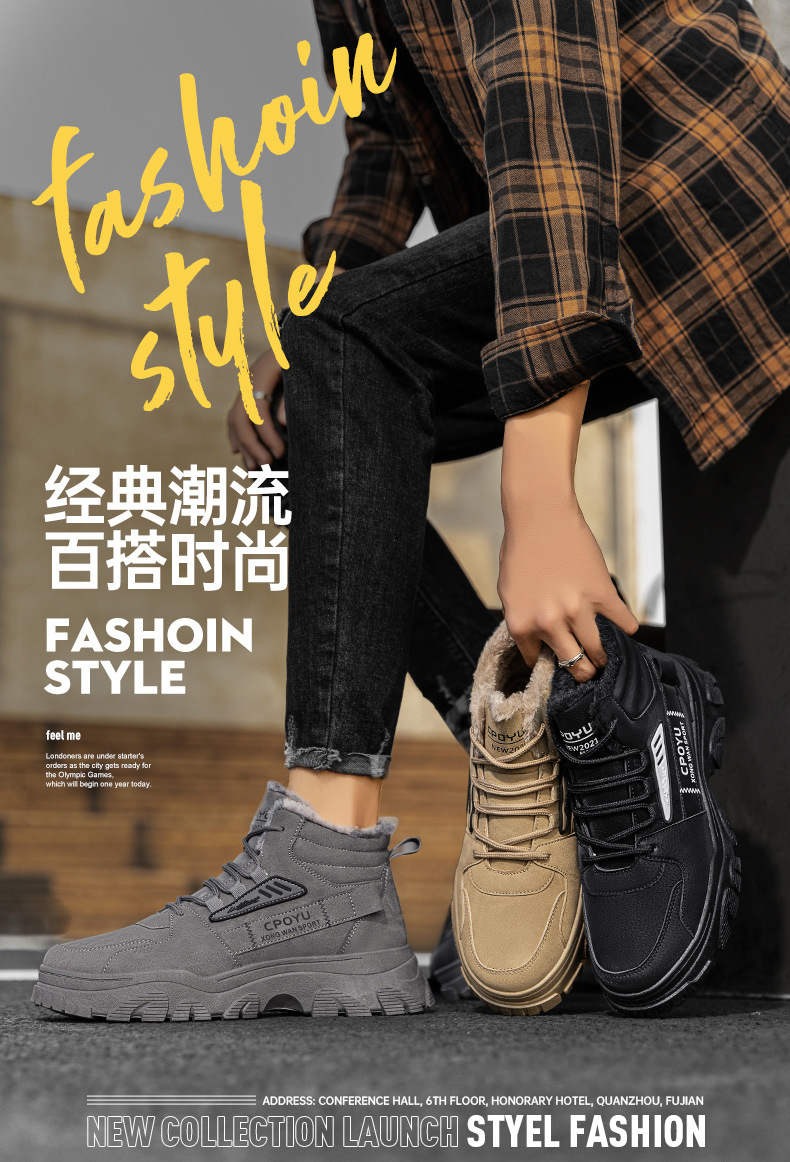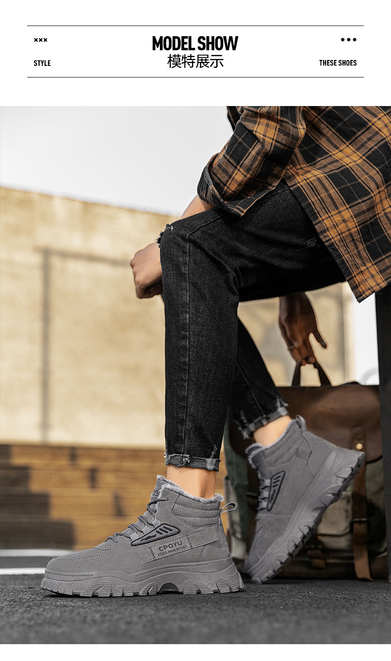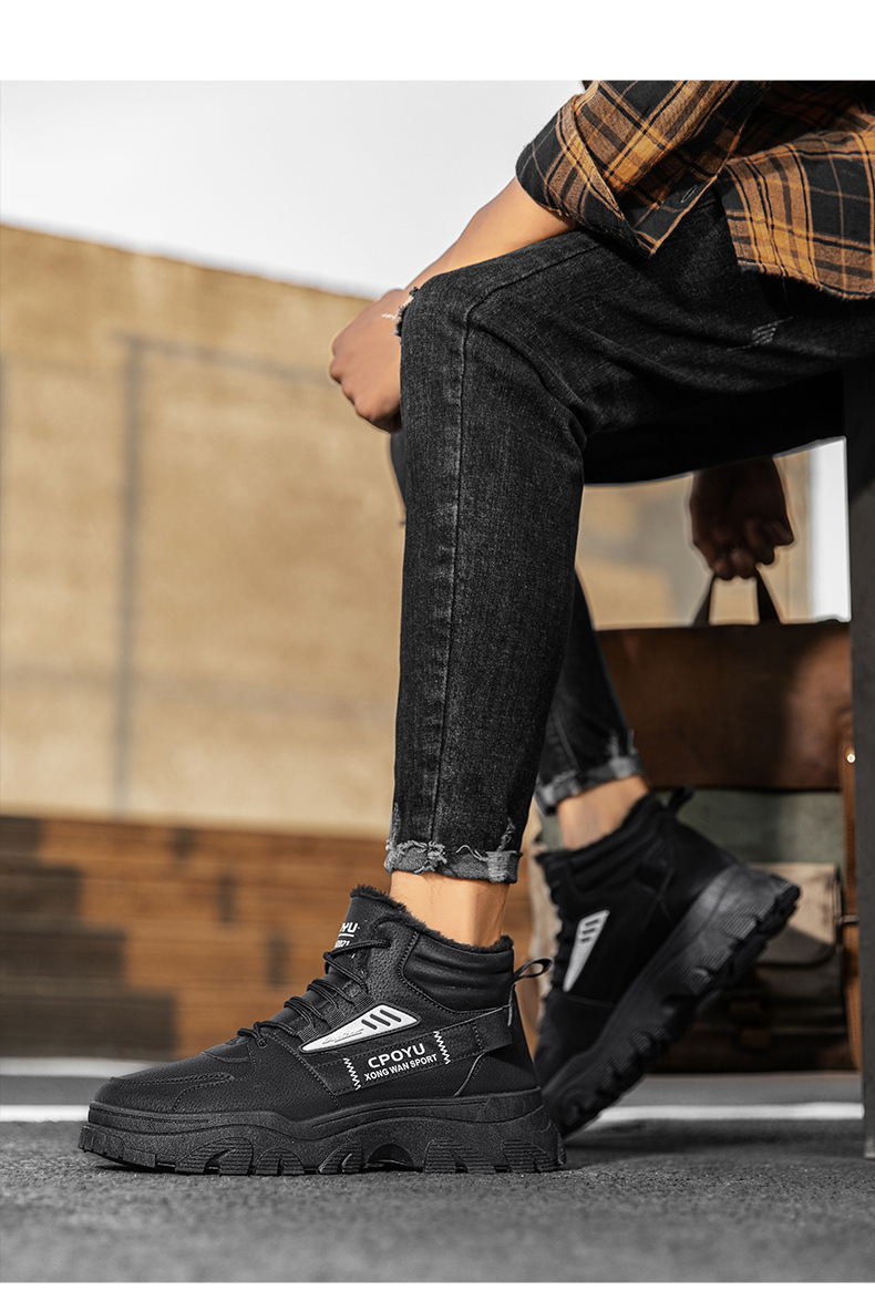 Zapatos de algodón calientes de alta altura, zapatos de trabajo casuales, zapatos de moda para hombres, botas de Martin a prueba de frío y caliente.