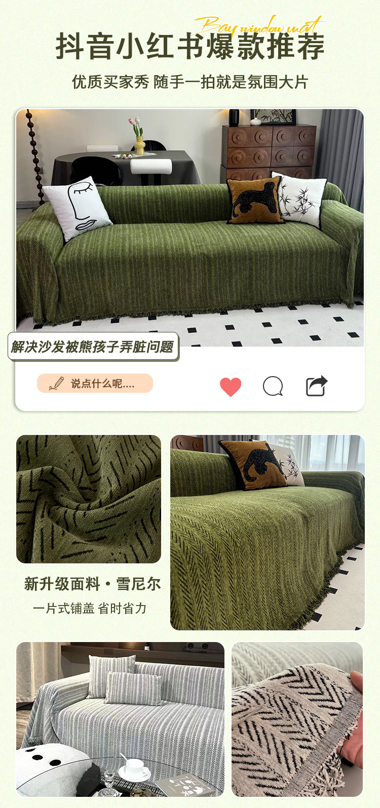 180 * 260cm, adecuado para sofás dobles