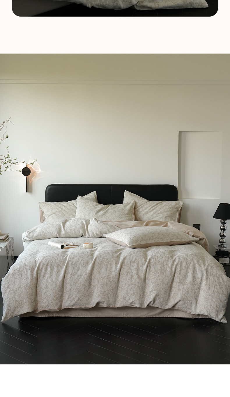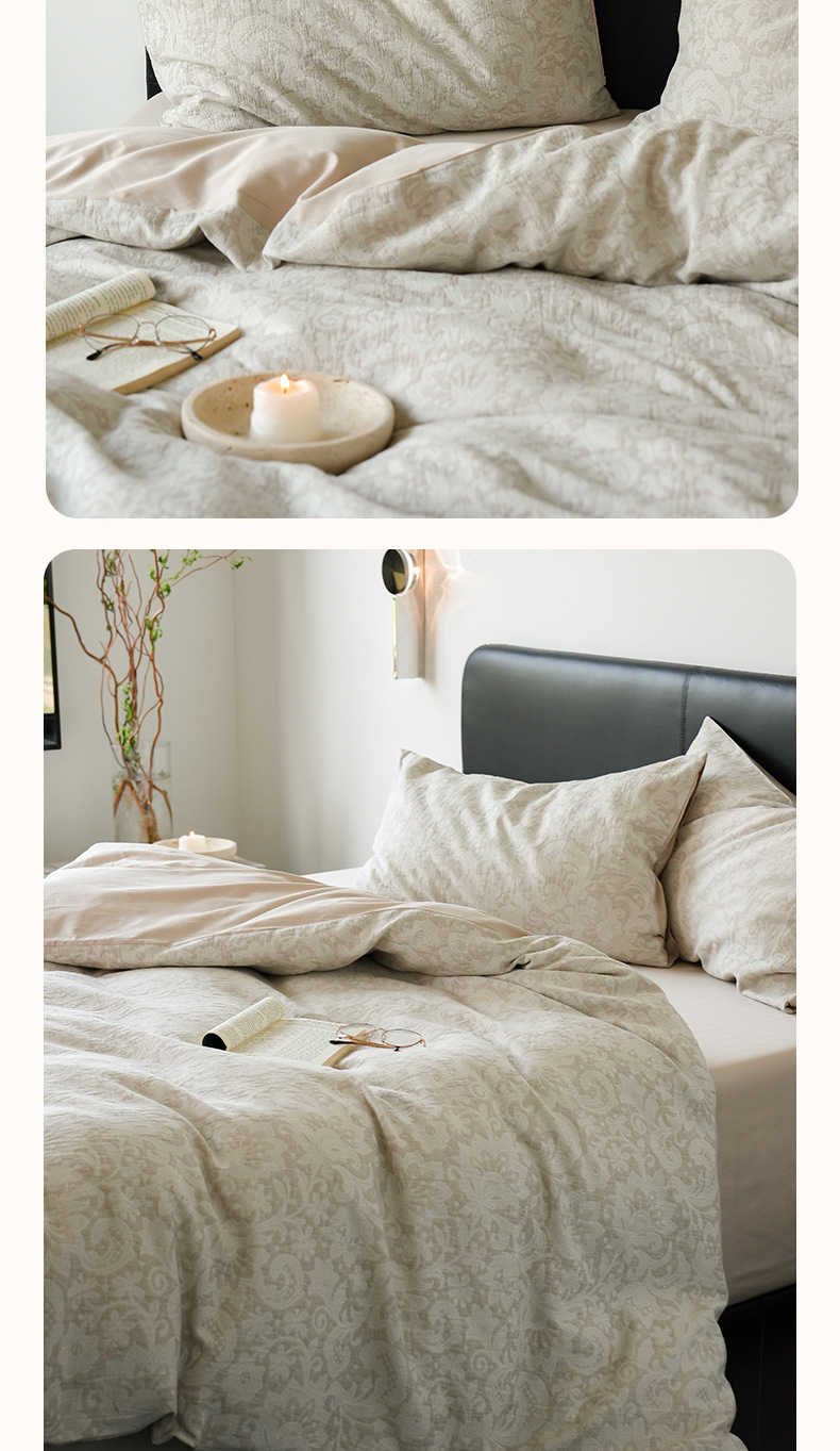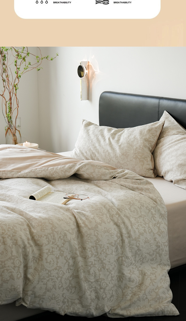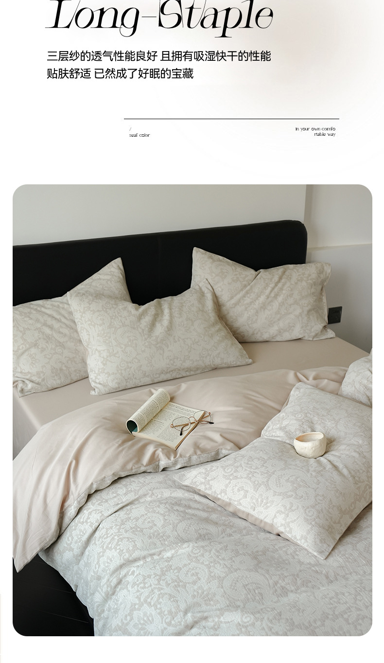 Alta sensación de algodón de tres capas de hilo en la cama de cuatro piezas conjunto 2025 nuevo lavado con agua de algodón ropa de cama Jacquard sábanas
