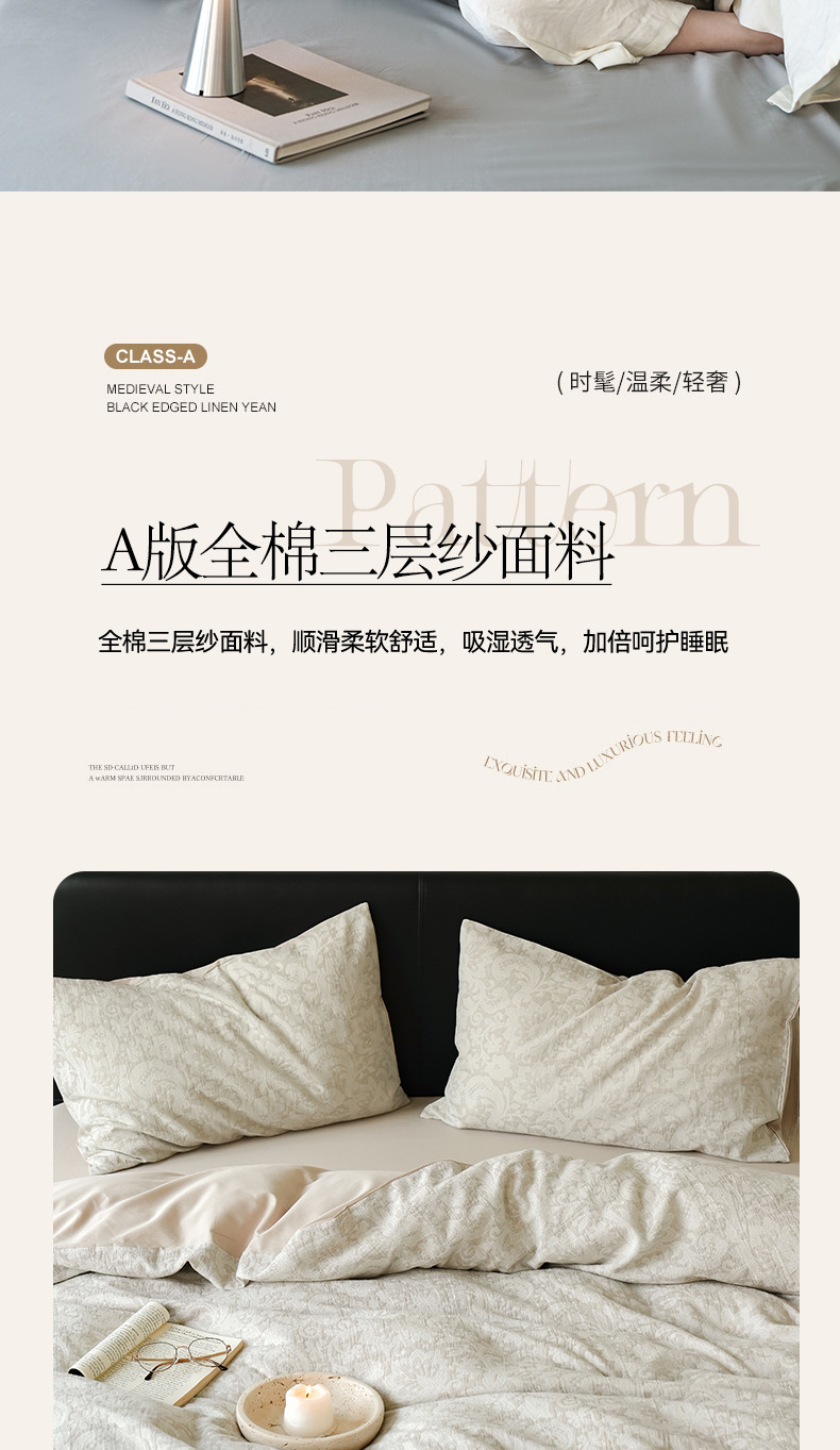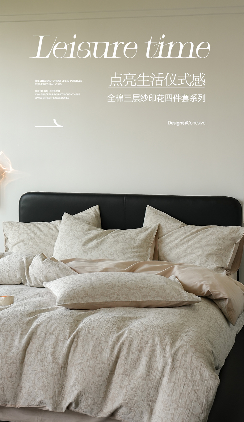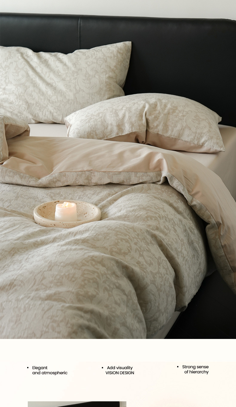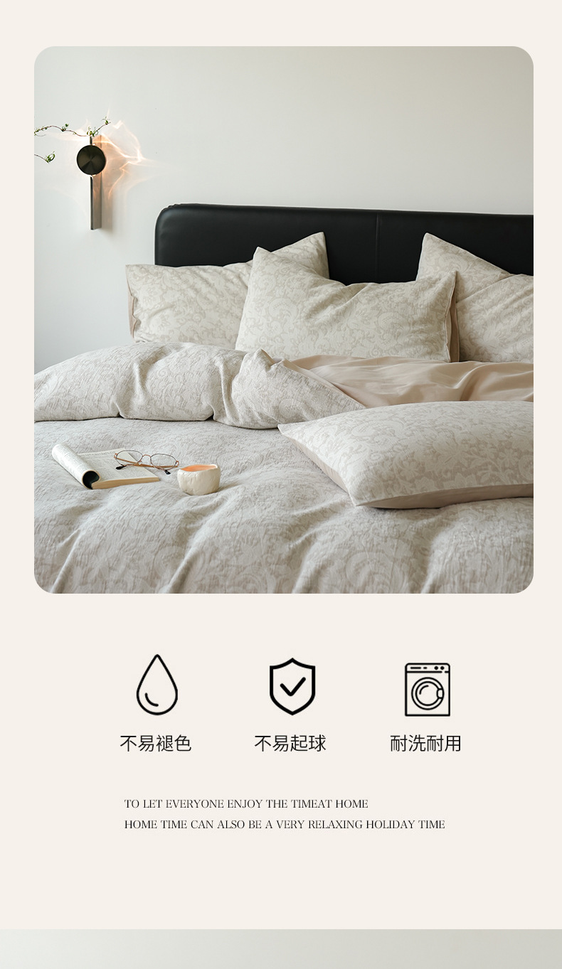Alta sensación de algodón de tres capas de hilo en la cama de cuatro piezas conjunto 2025 nuevo lavado con agua de algodón ropa de cama Jacquard sábanas