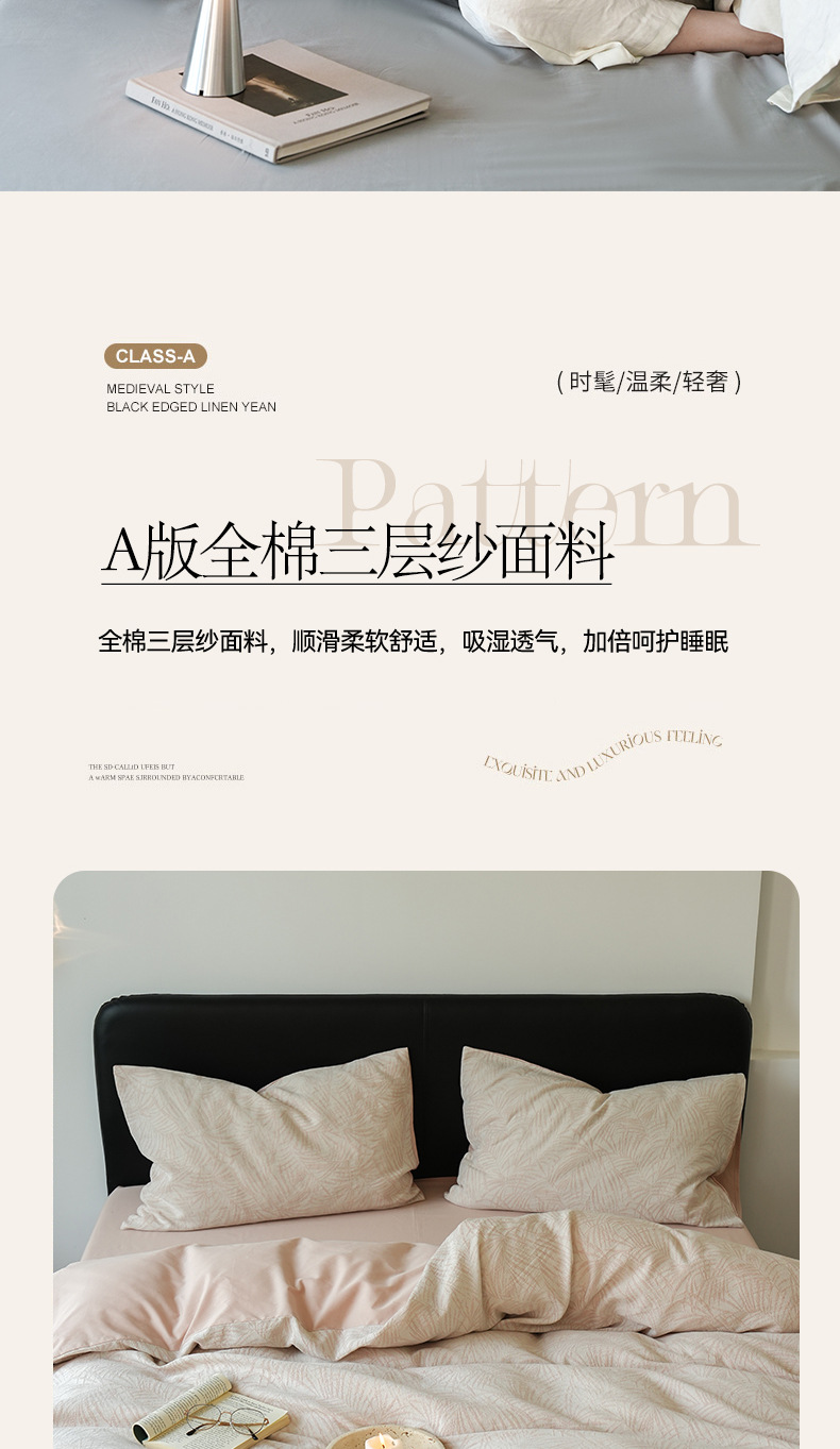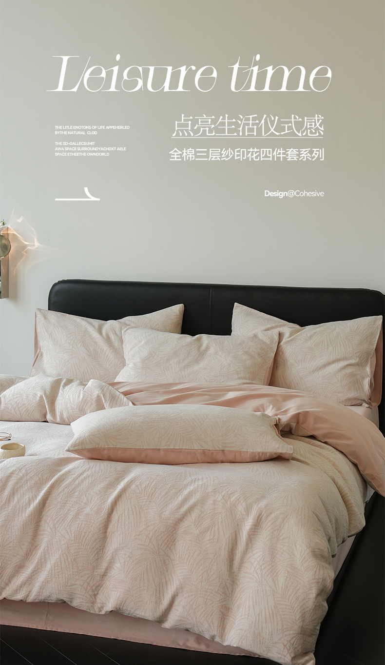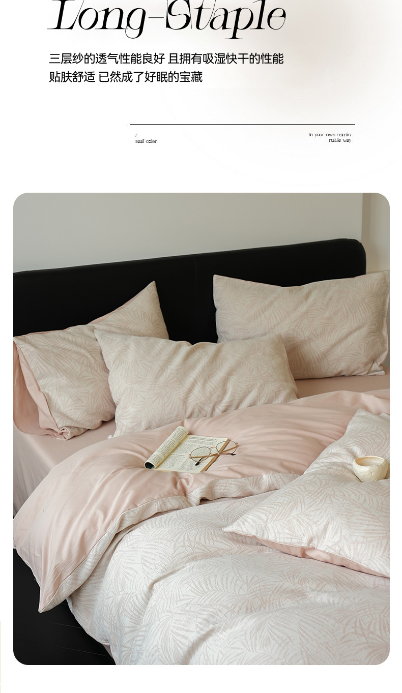 Cama de algodón de tres capas de hilo de cuatro piezas de lujo ligero de alta gama, cama de algodón simple, ropa de cama, colcha de cama de tres piezas
