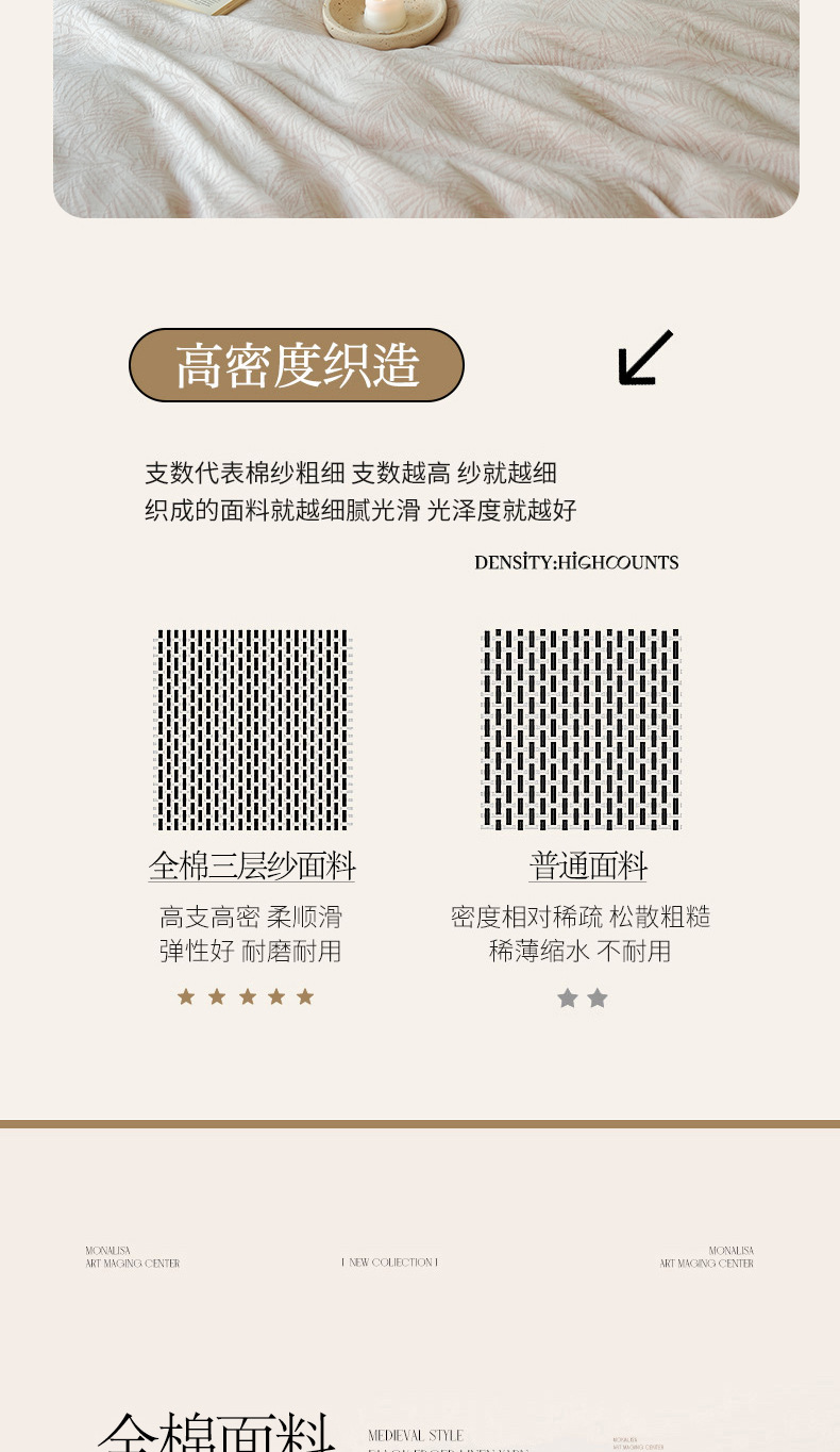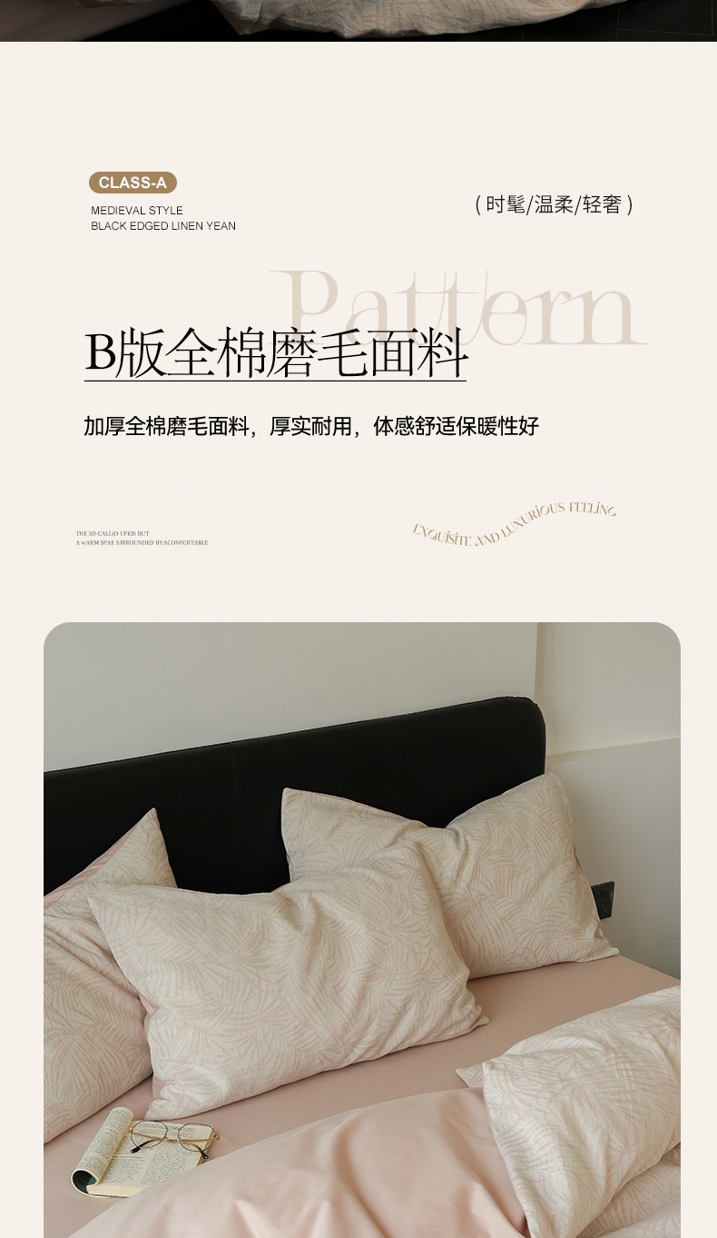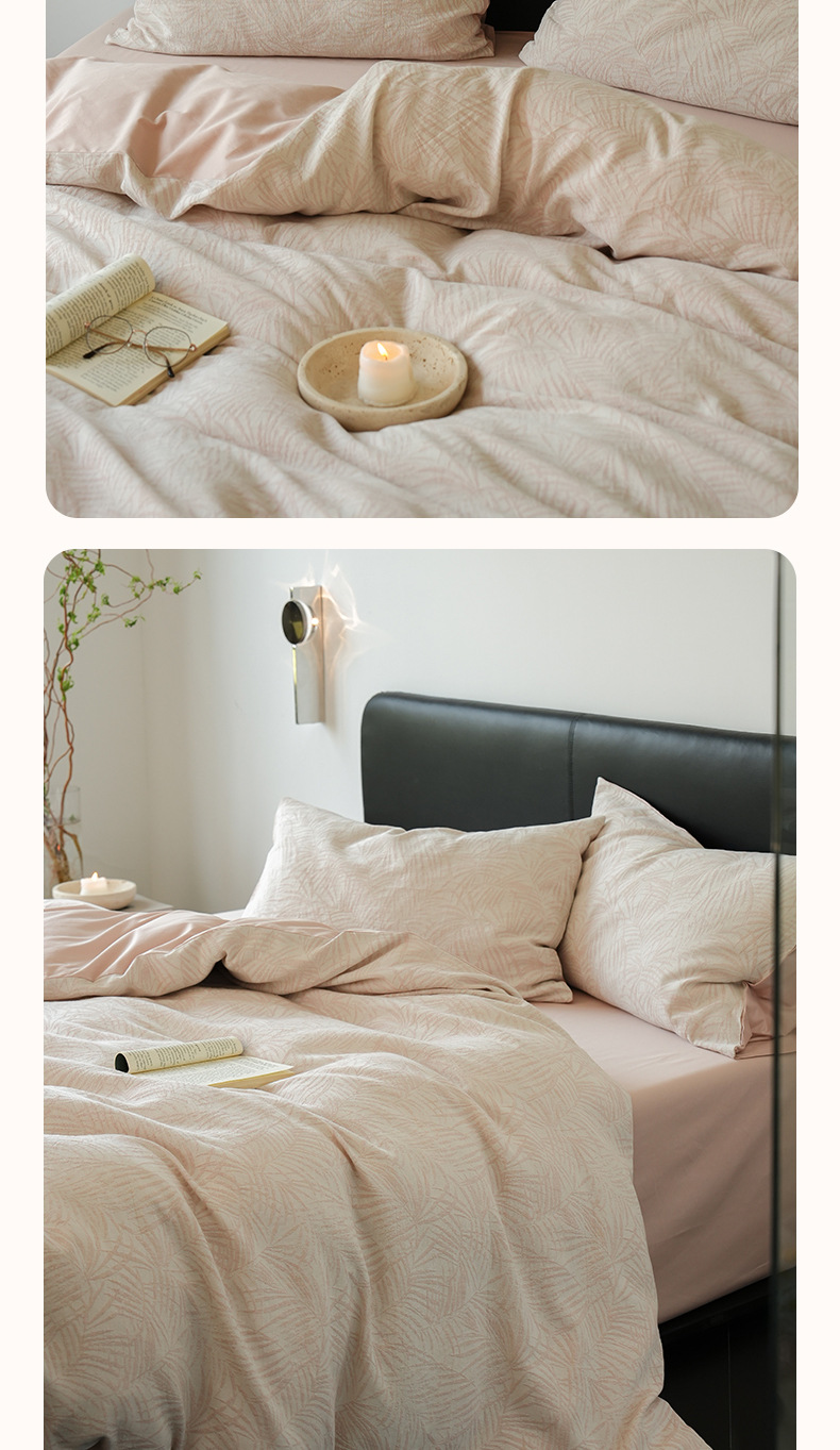 Cama de algodón de tres capas de hilo de cuatro piezas de lujo ligero de alta gama, cama de algodón simple, ropa de cama, colcha de cama de tres piezas