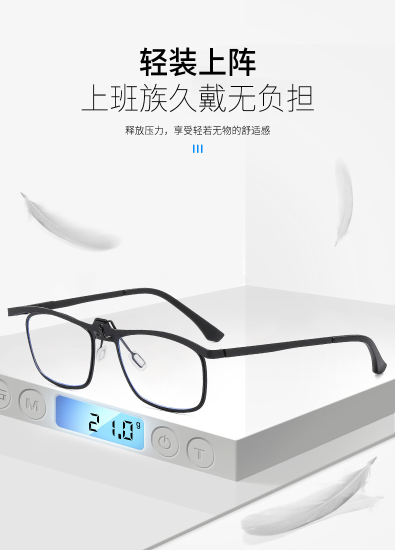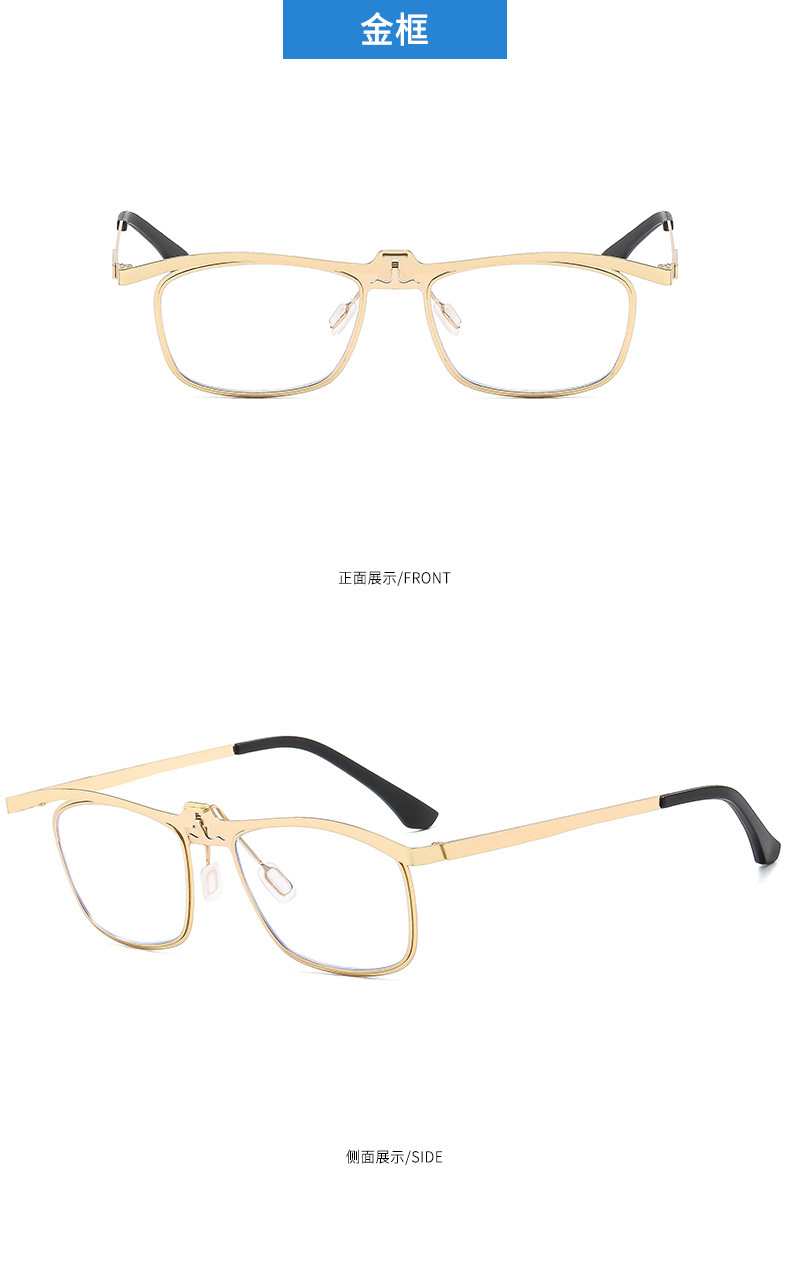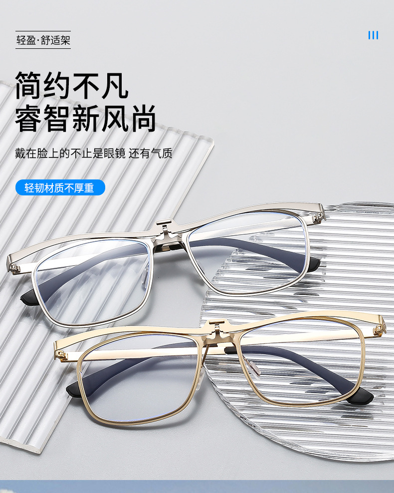 Metal extranjero flip gafas retrógradas marco cuadrado antiguo hombre luz azul alta definición gafas para mujeres de mediana edad y ancianos