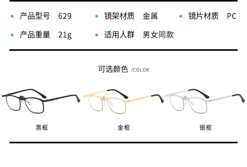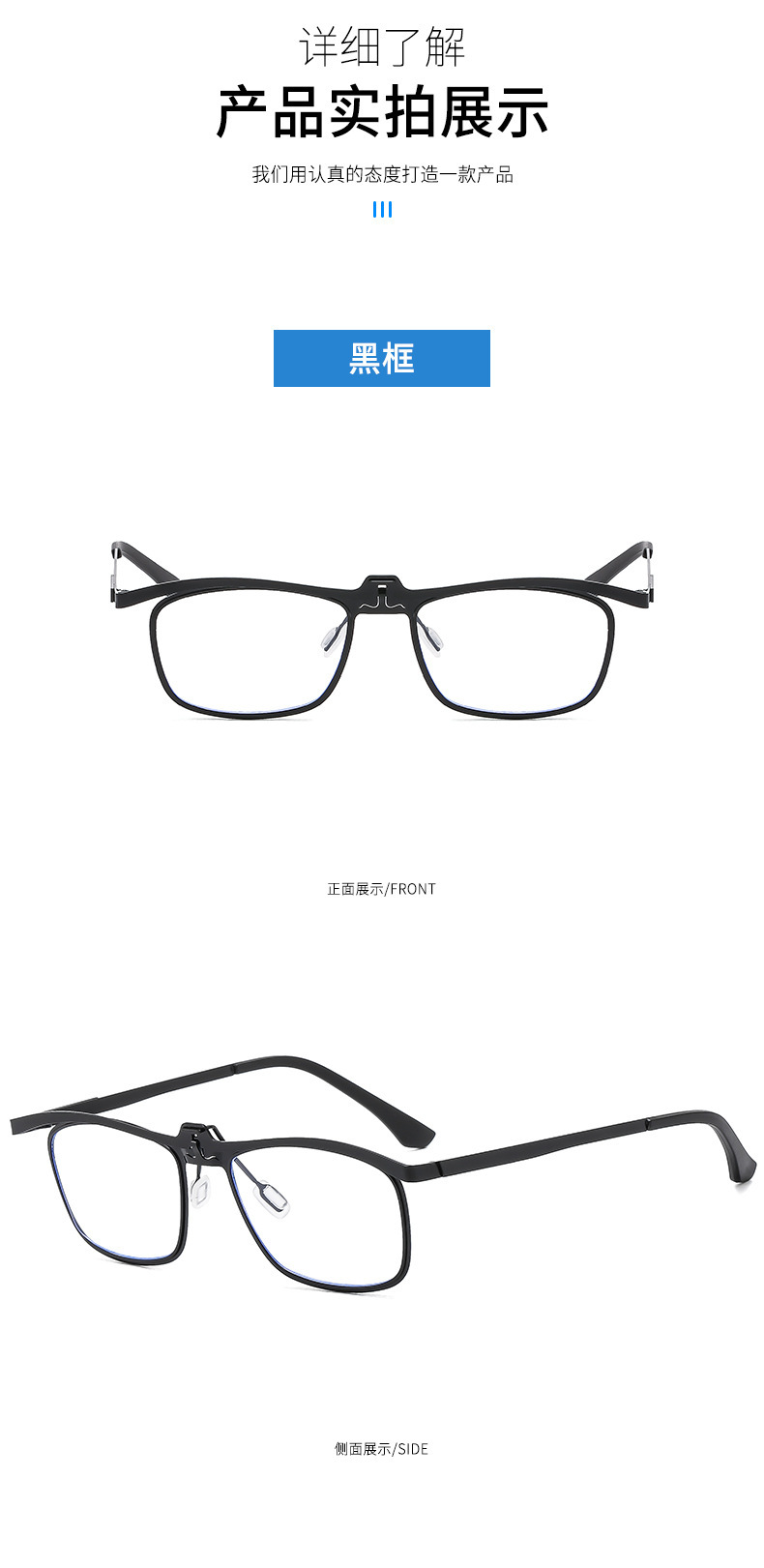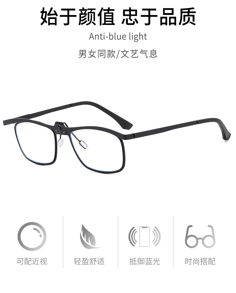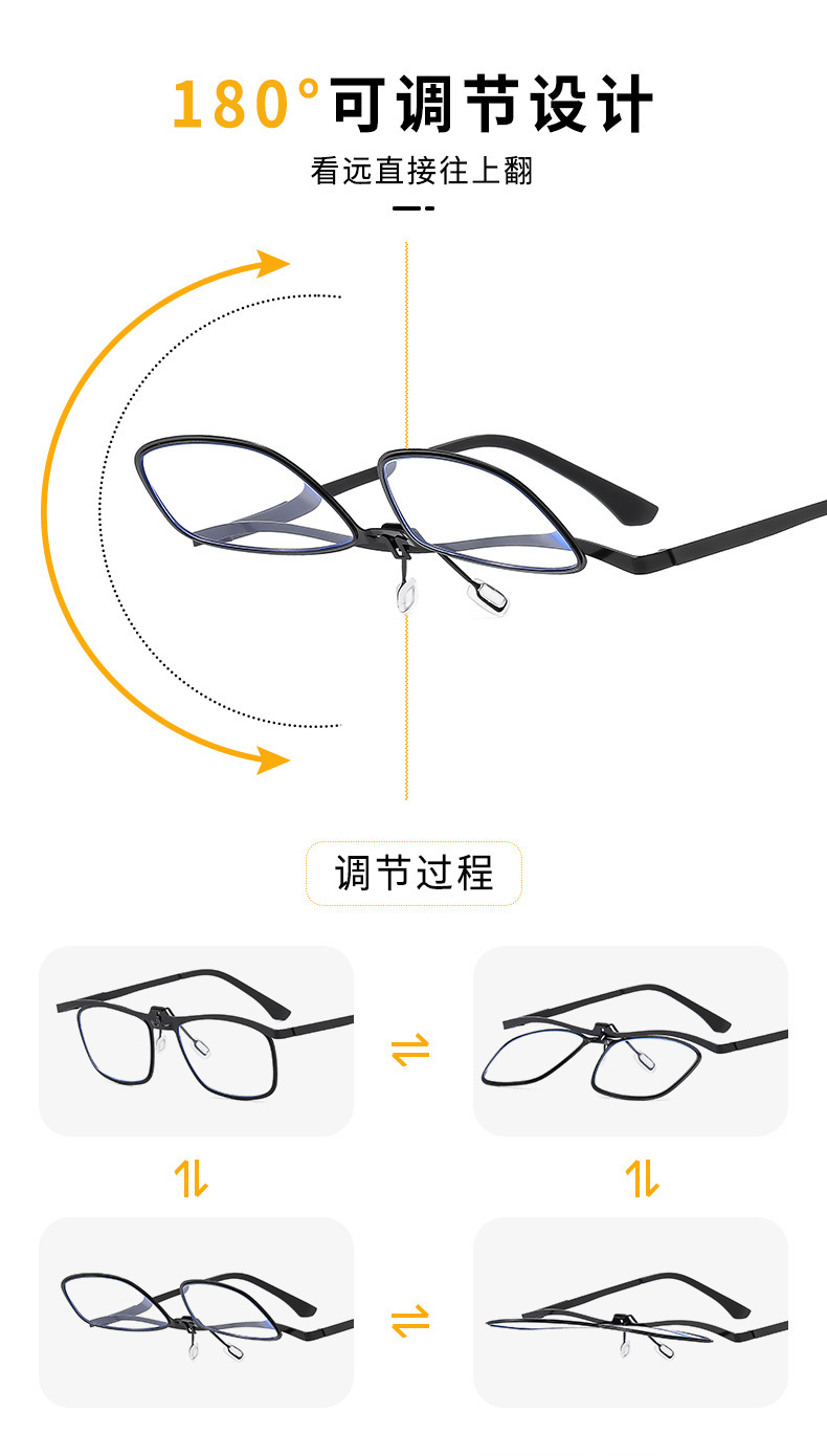 Metal extranjero flip gafas retrógradas marco cuadrado antiguo hombre luz azul alta definición gafas para mujeres de mediana edad y ancianos