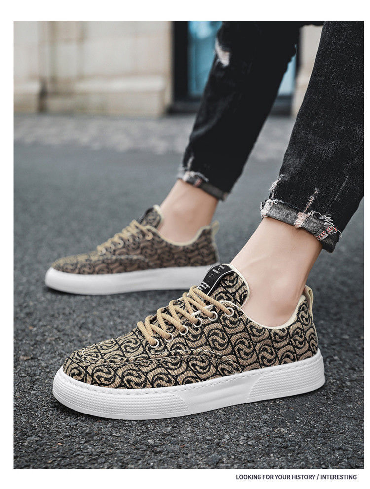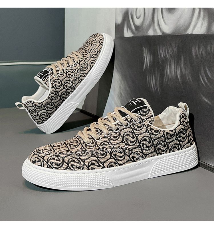 Zapatillas de lona para hombre, de caña baja, estilo nuevo de invierno 2025, zapatillas deportivas estampadas de caña baja, zapatillas deportivas casuales de suela gruesa para hombre.