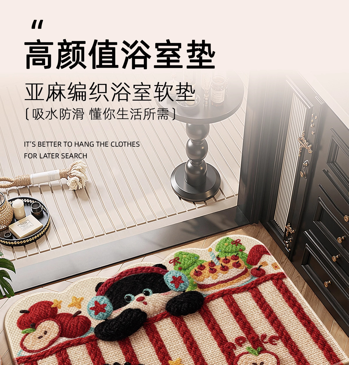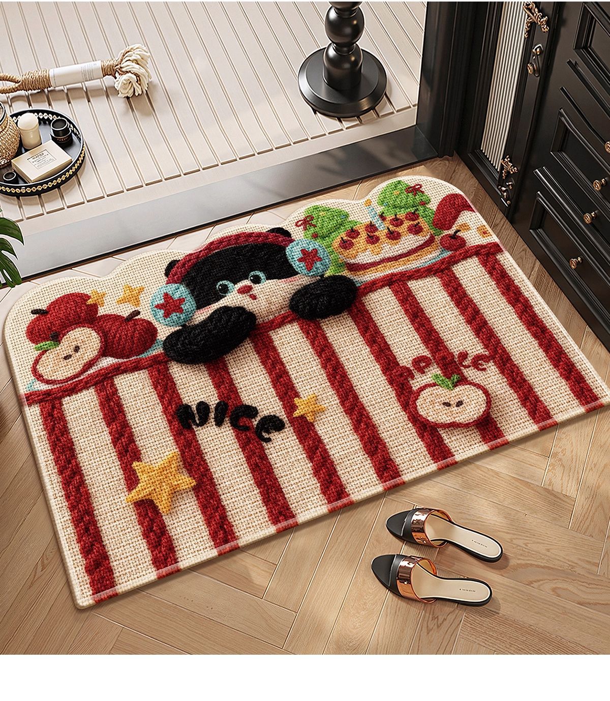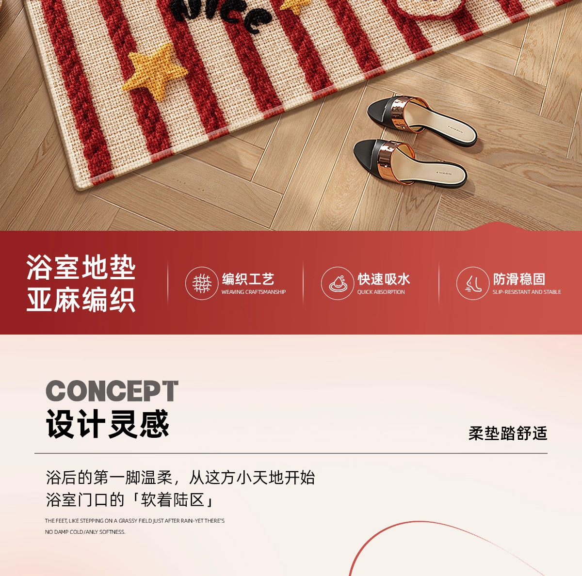 Cartoon lino tejido alfombra de baño alfombra roja absorción de agua puerta de baño alfombra antideslizante alfombra gruesa