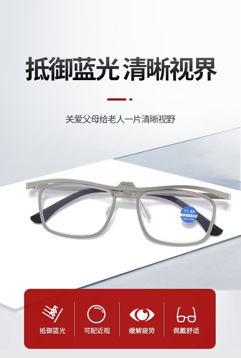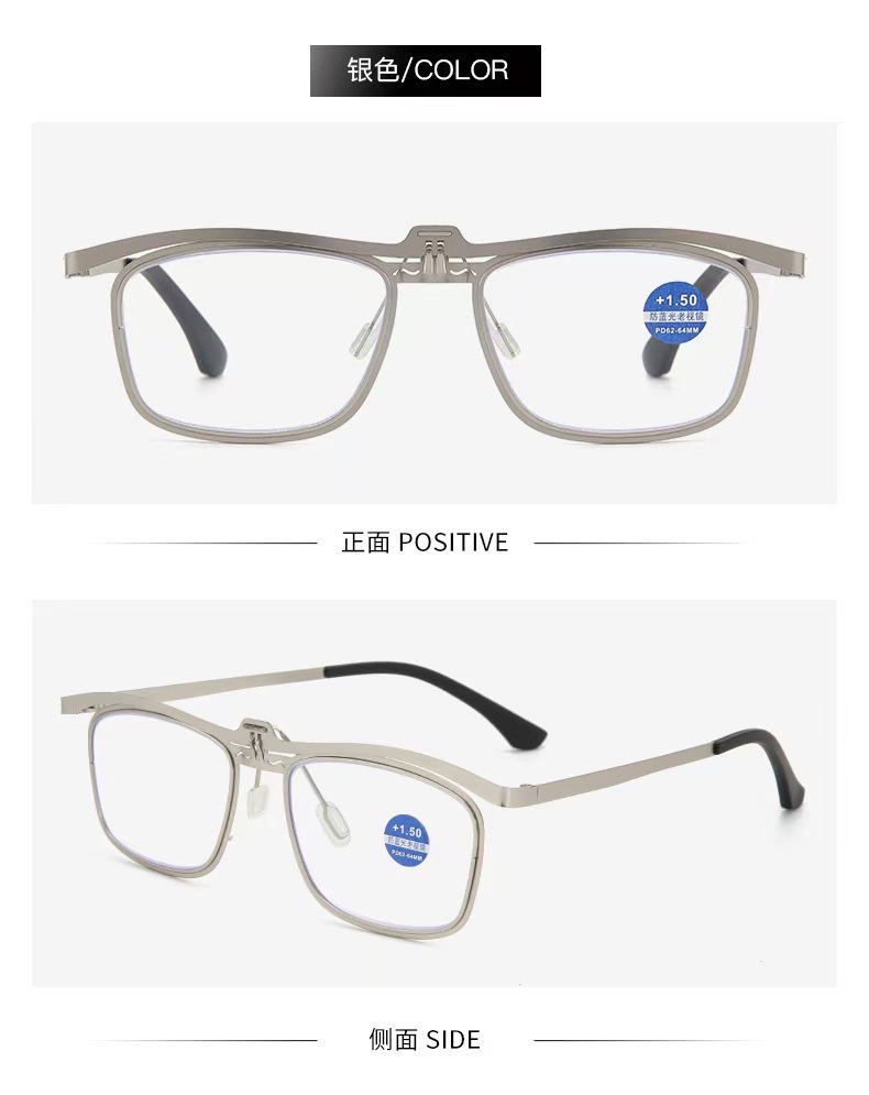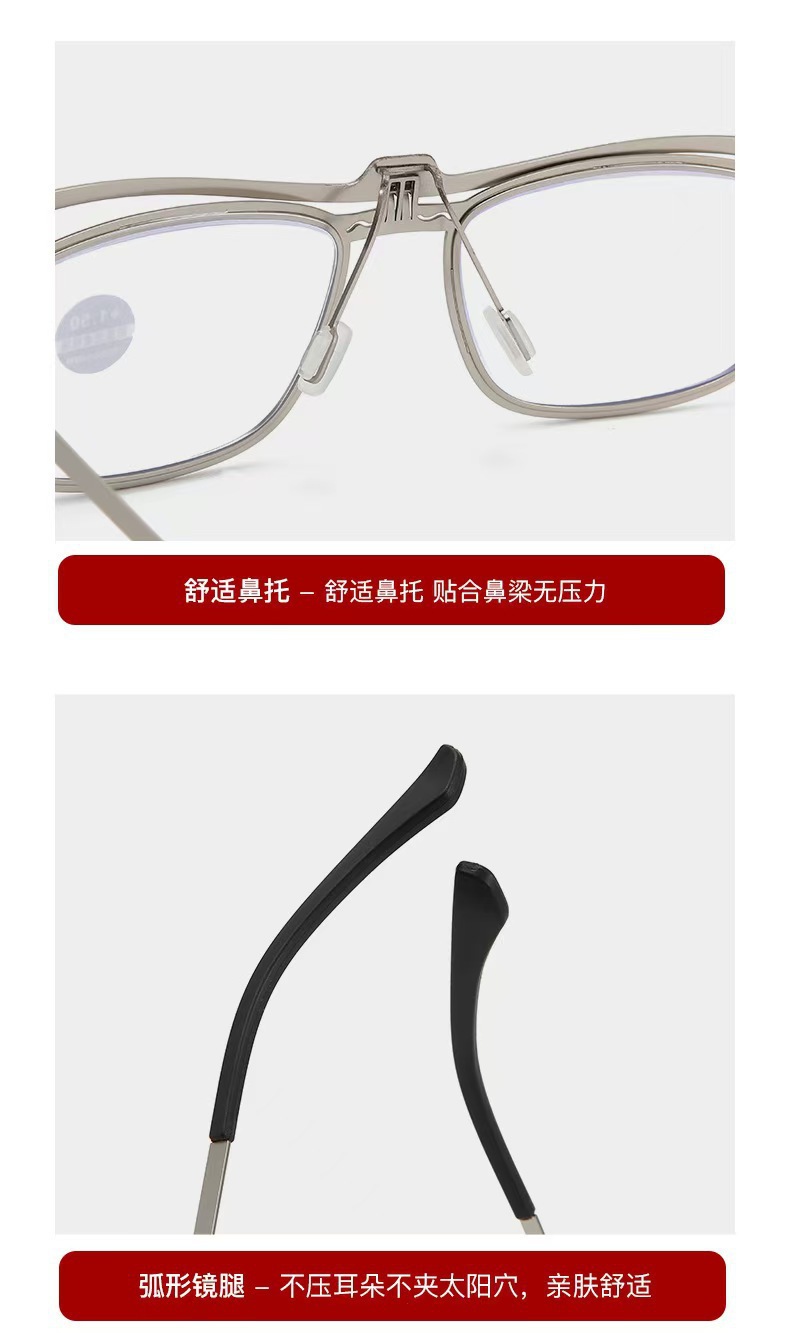 Gafas de lector de estilo extranjero, marco cuadrado retro, gafas de lector de metal, gafas antiluz azul HD, gafas de lector de edad media y vieja