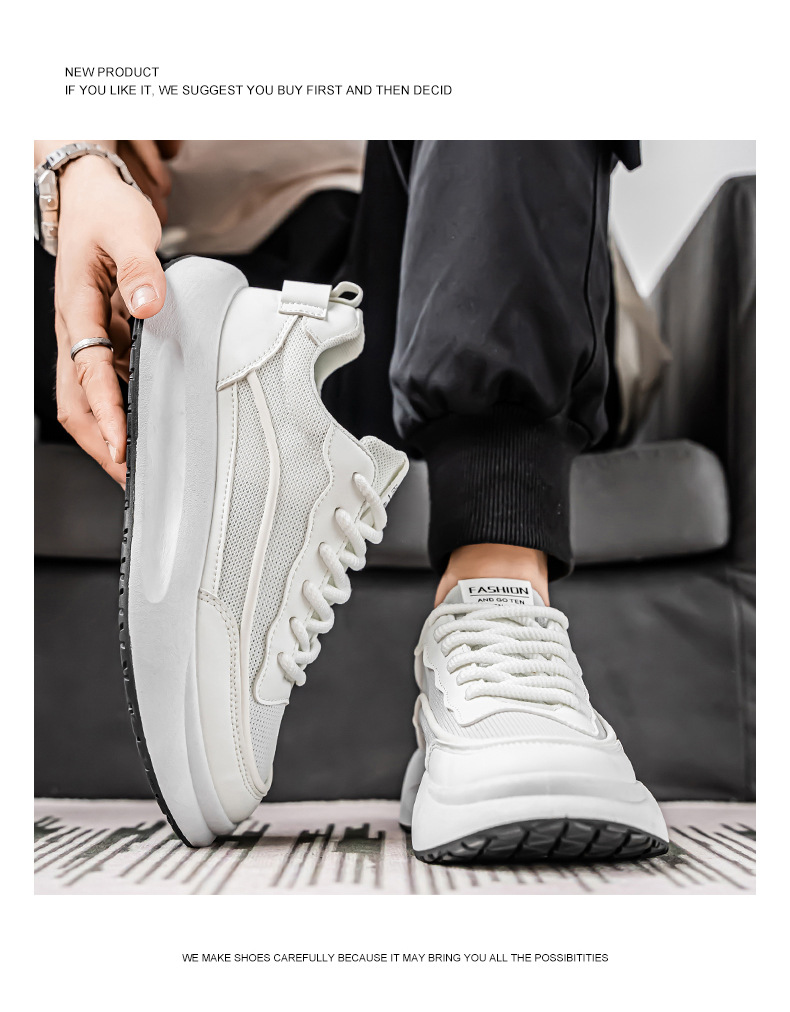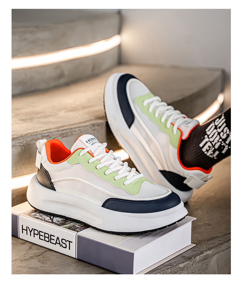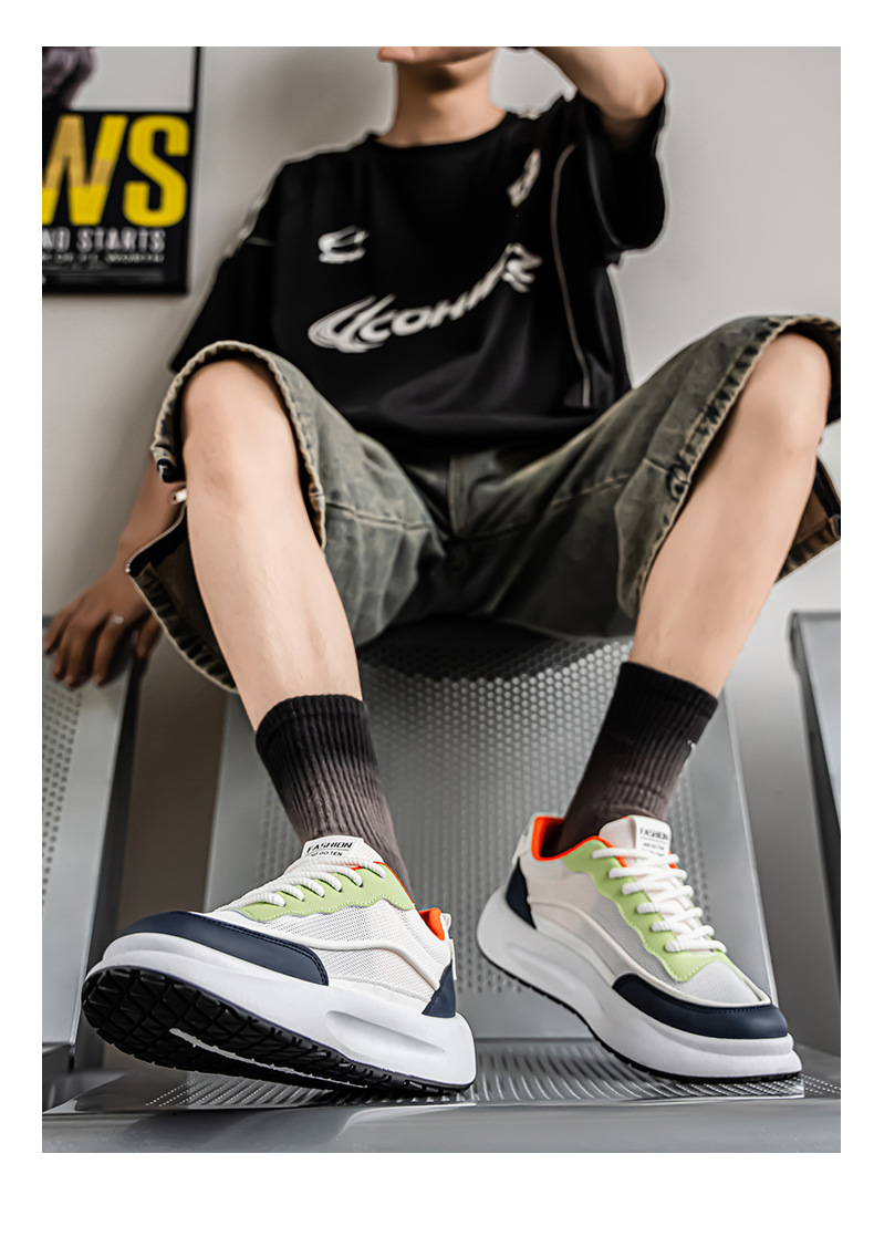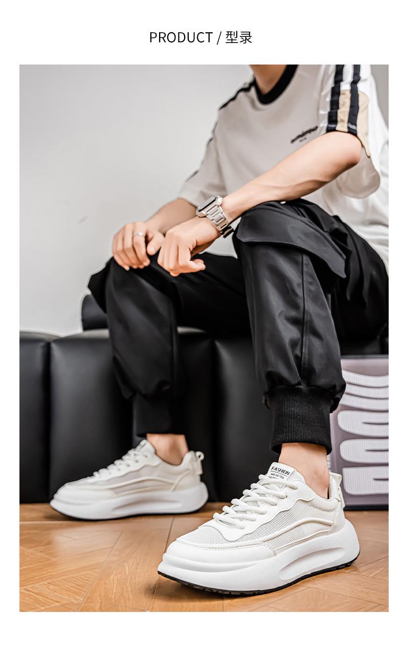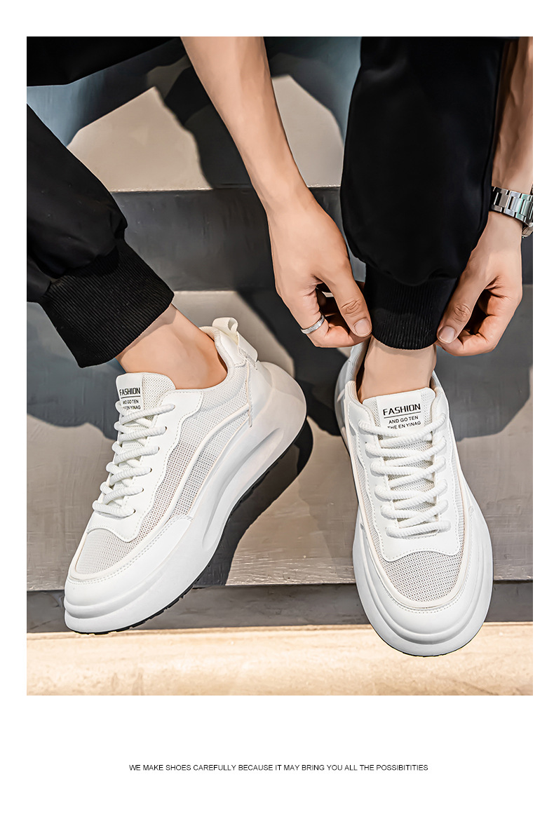 Zapatos de hombre 2025 nuevos zapatos blancos transpirables de malla de estilo moderno zapatos bajos de todo fósforo zapatos de suela gruesa zapatos casuales cómodos
