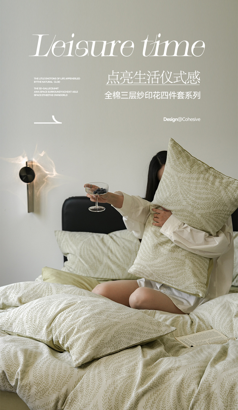 Luz de lujo clase A tres capas de algodón puro cuatro piezas 100 algodón Jacquard sábanas de cama de alta calidad cama