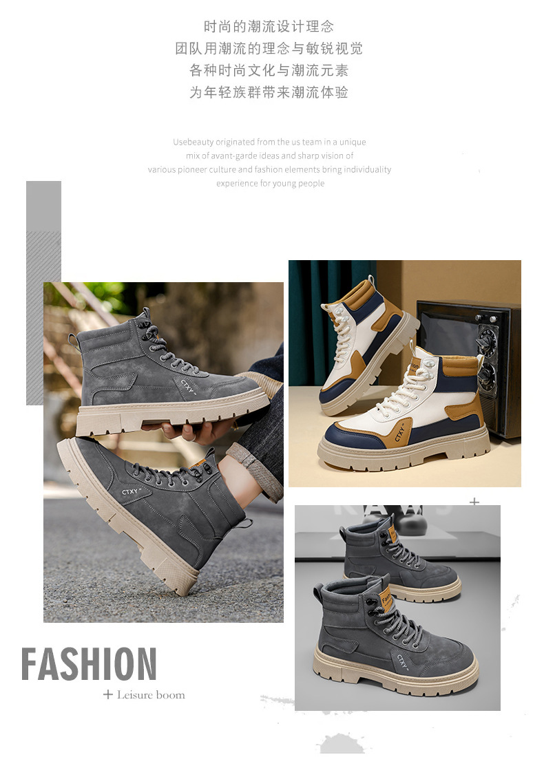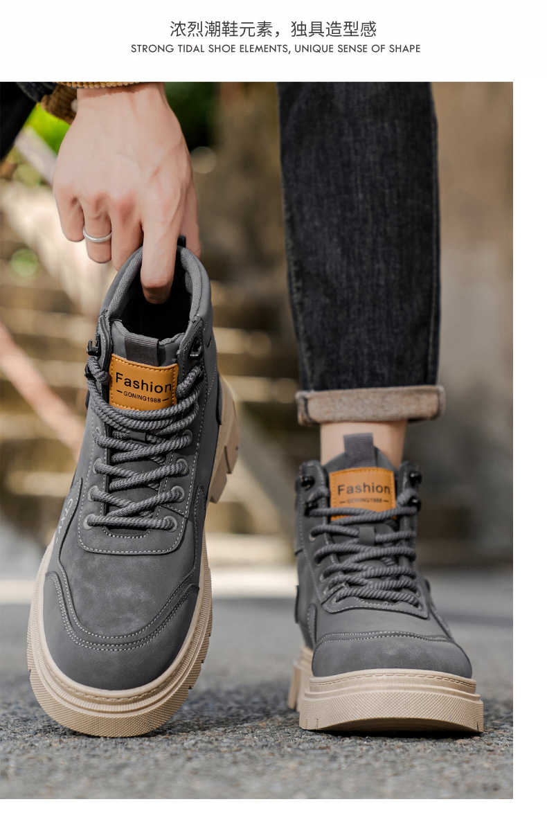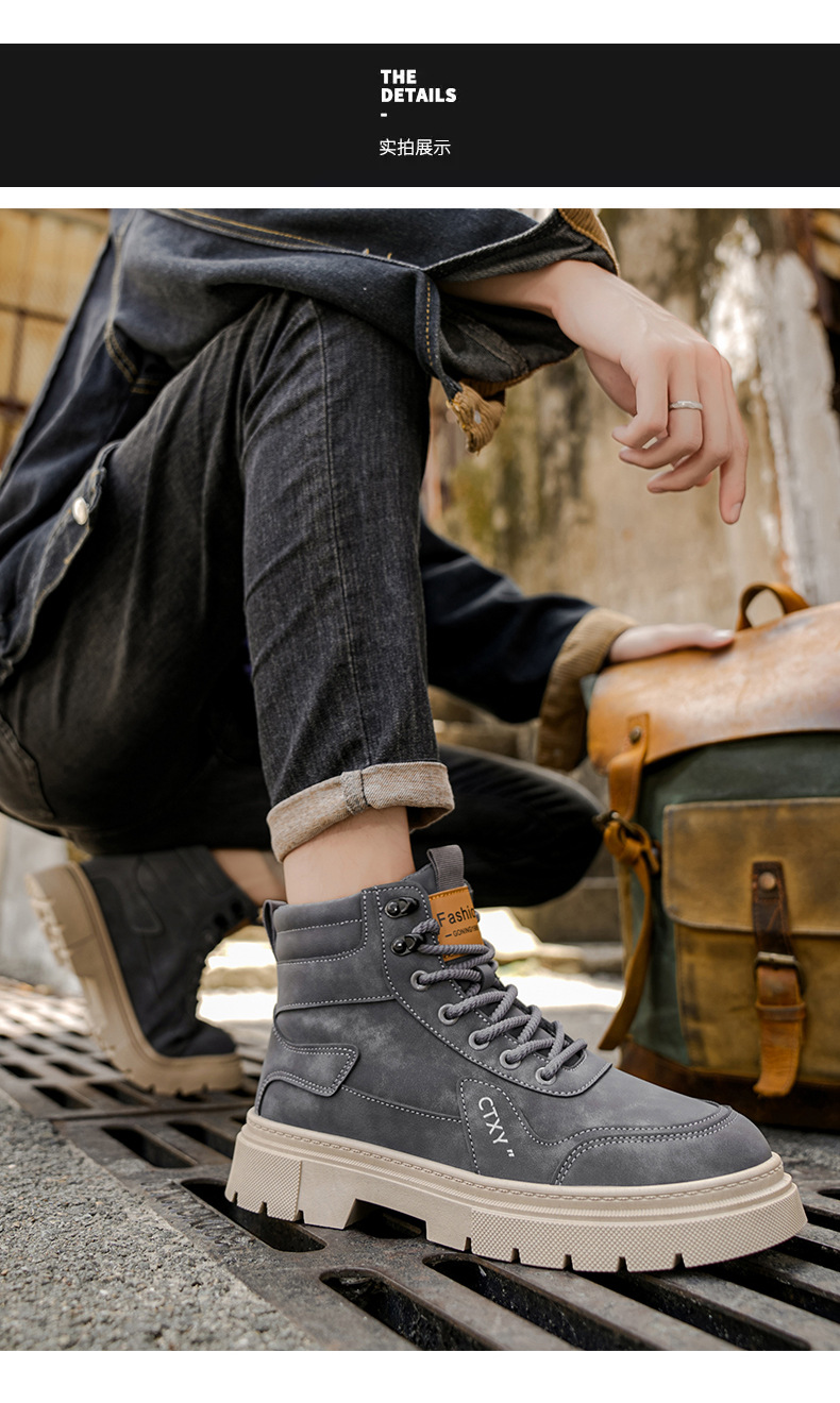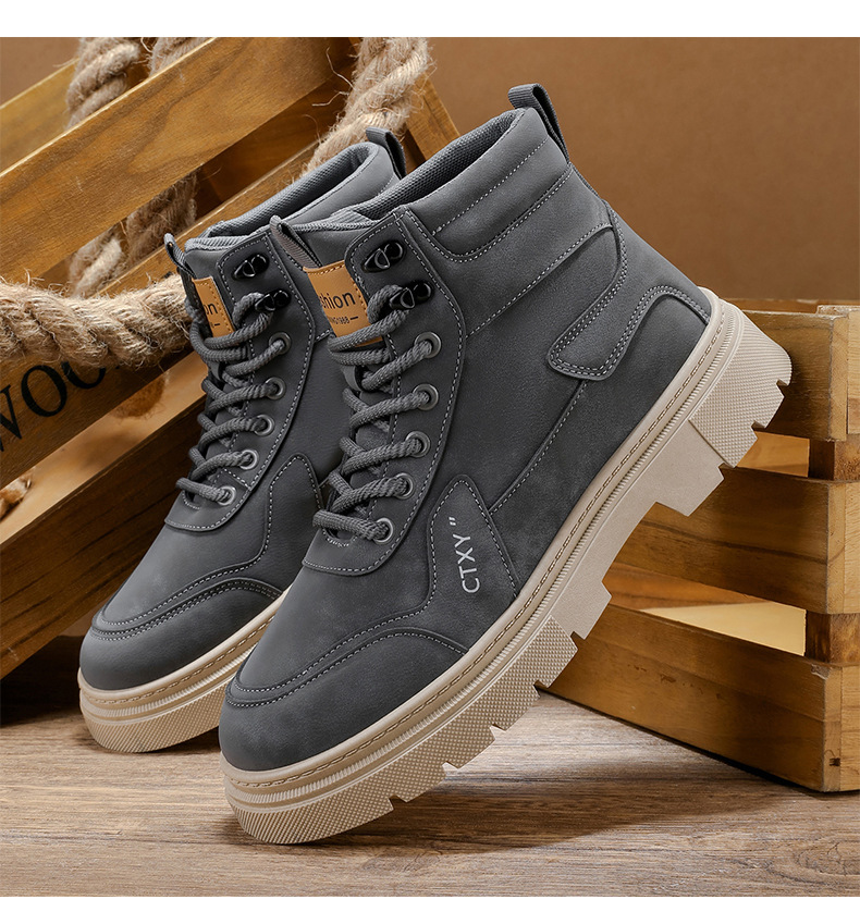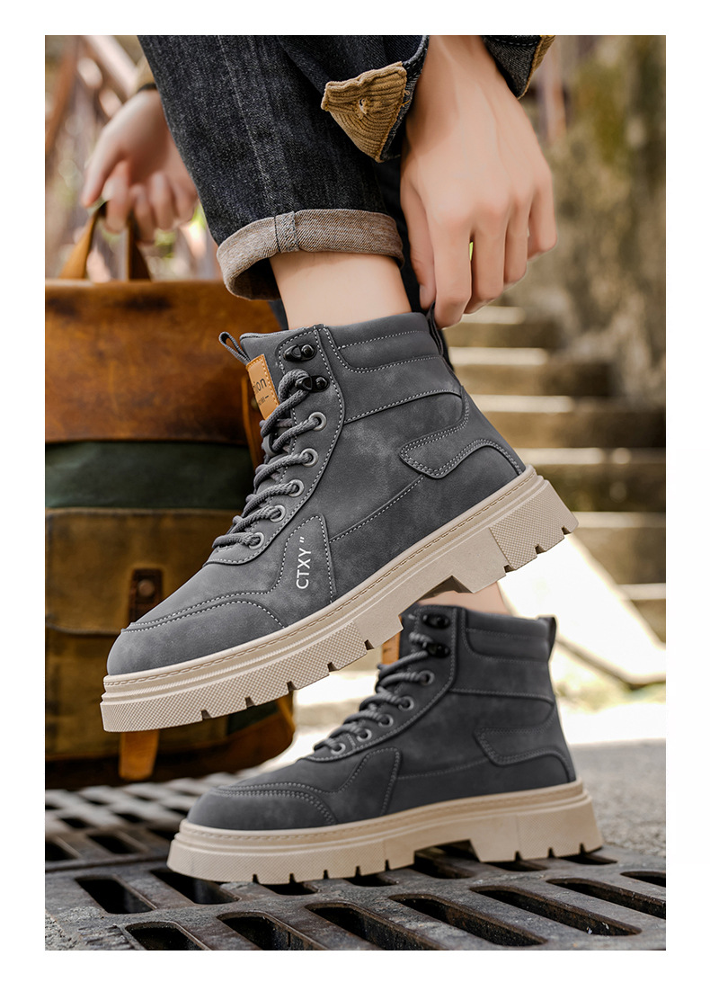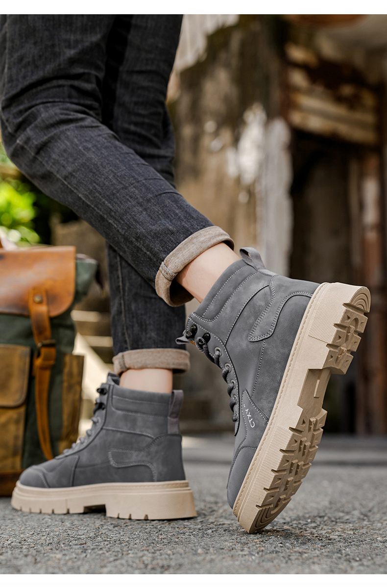 Botas Martin para hombre 2026 nueva primavera alta parte superior gruesa aumento de estilo británico botas de trabajo para hombre locomotora zapatos de moda casuales