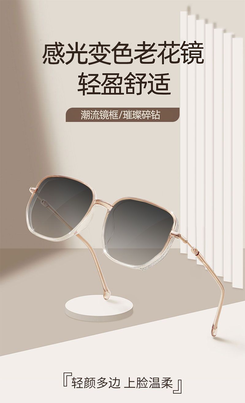 Gafas de presbiterias que cambian de color ultraligeras para mujeres de mediana edad y ancianas, versión coreana blanca de todo fósforo sin maquillaje, marco de ojo de marco grande suave y de cara alta