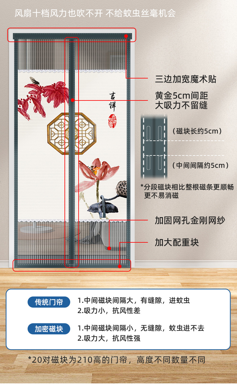 Cortina de puerta a prueba de mosquitos privacidad ventilación sin perforación doméstica 2025 nuevo tipo de puerta de pantalla magnética auto-succión anti-espionamiento partición de barrera