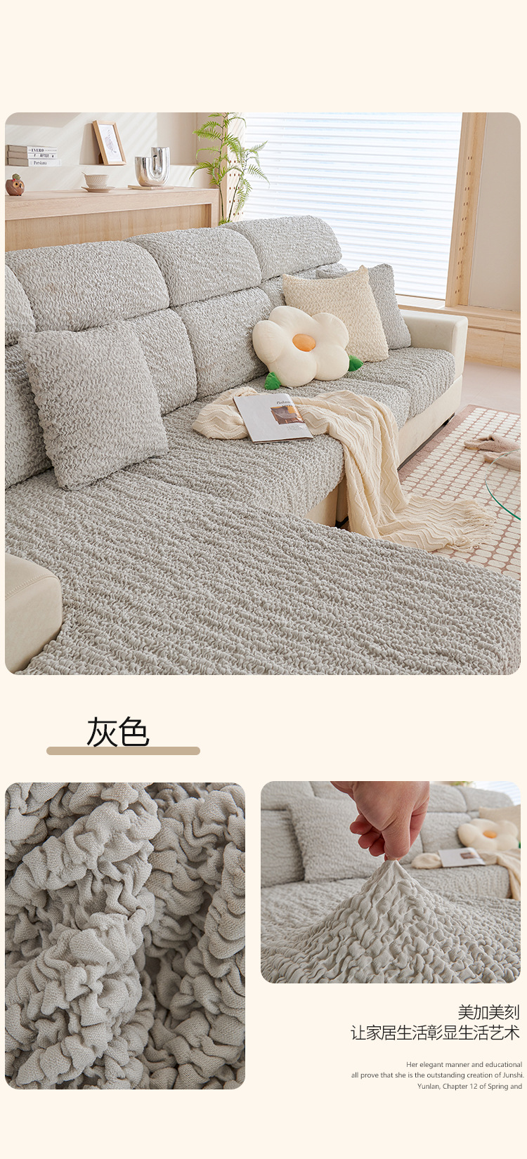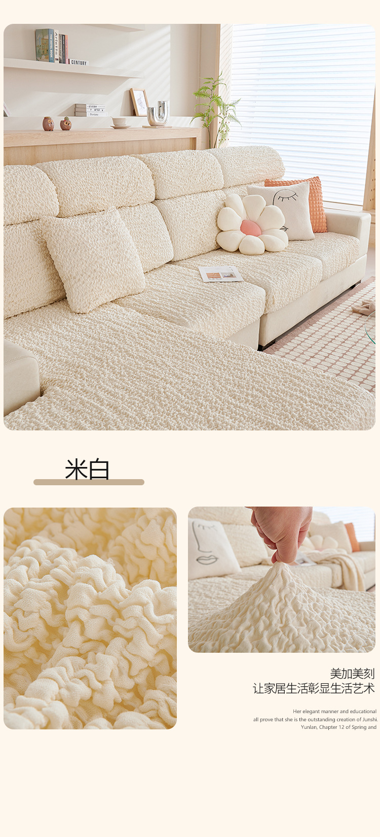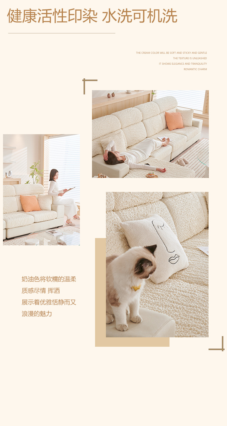 Cream burbuja hilo sofá cubierta todo incluido respaldo nuevo sofá elástico para proteger a los gatos contra el cojín perezoso