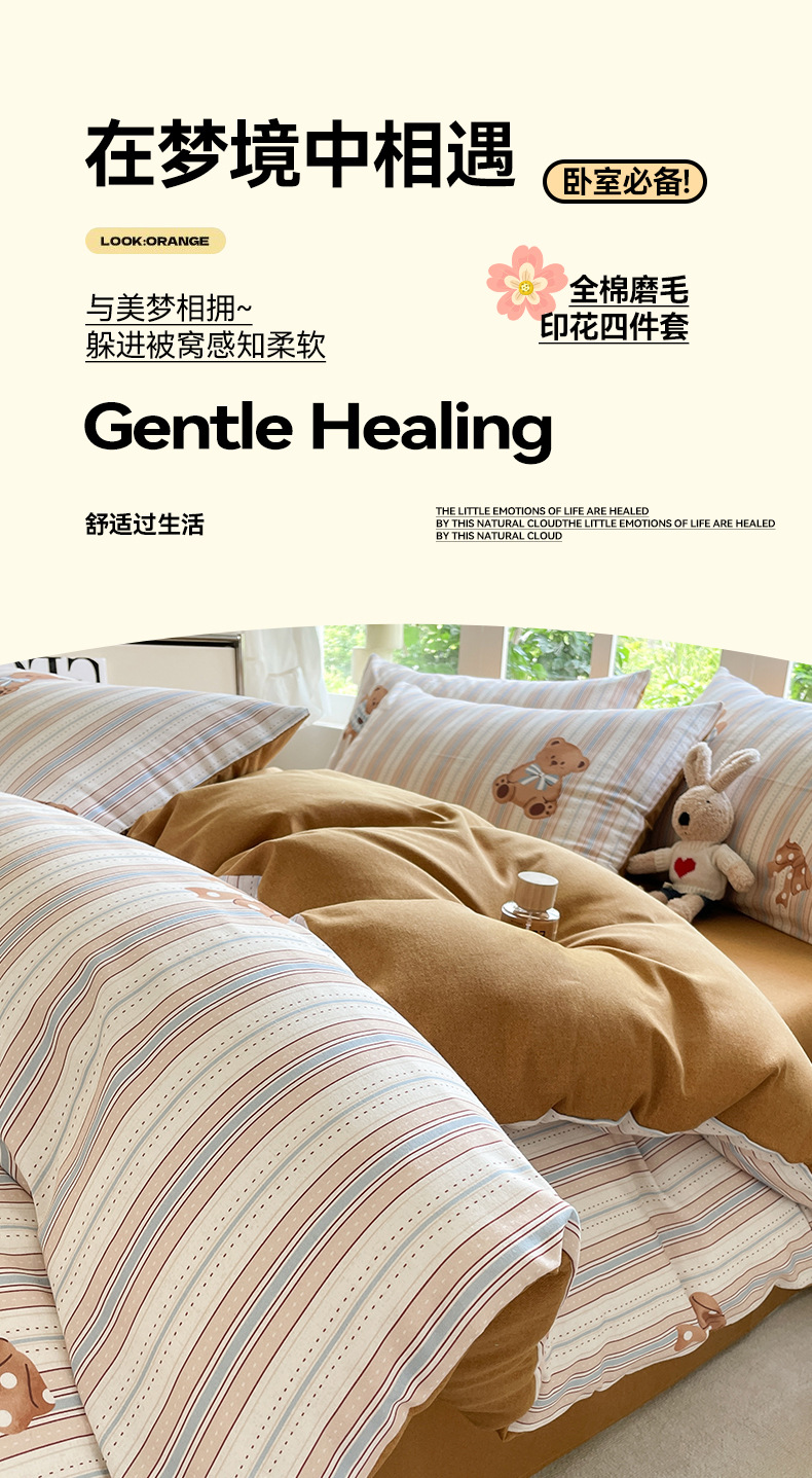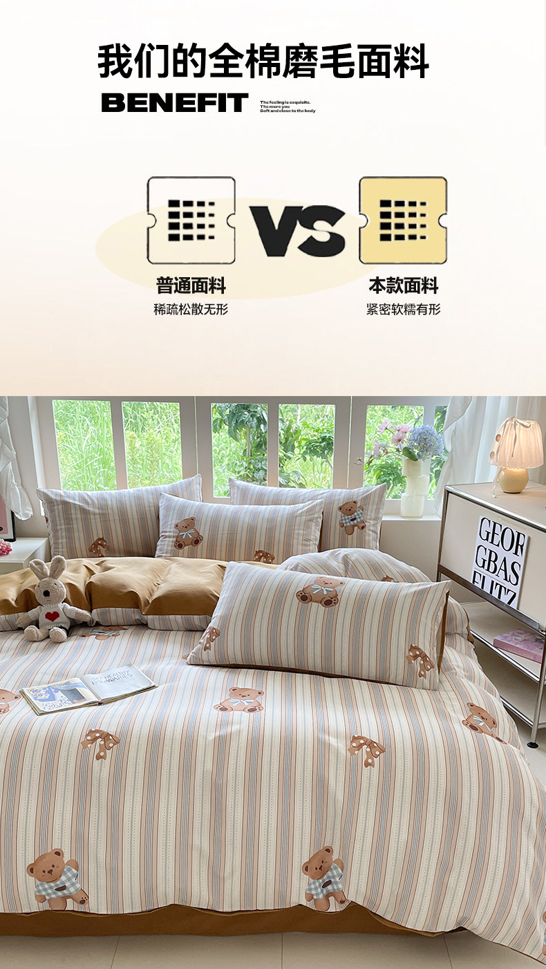 Cuatro piezas de ropa de cama de algodón, cubierta de edredón de invierno, sábanas de lana gruesa y molida, dormitorio de tres piezas