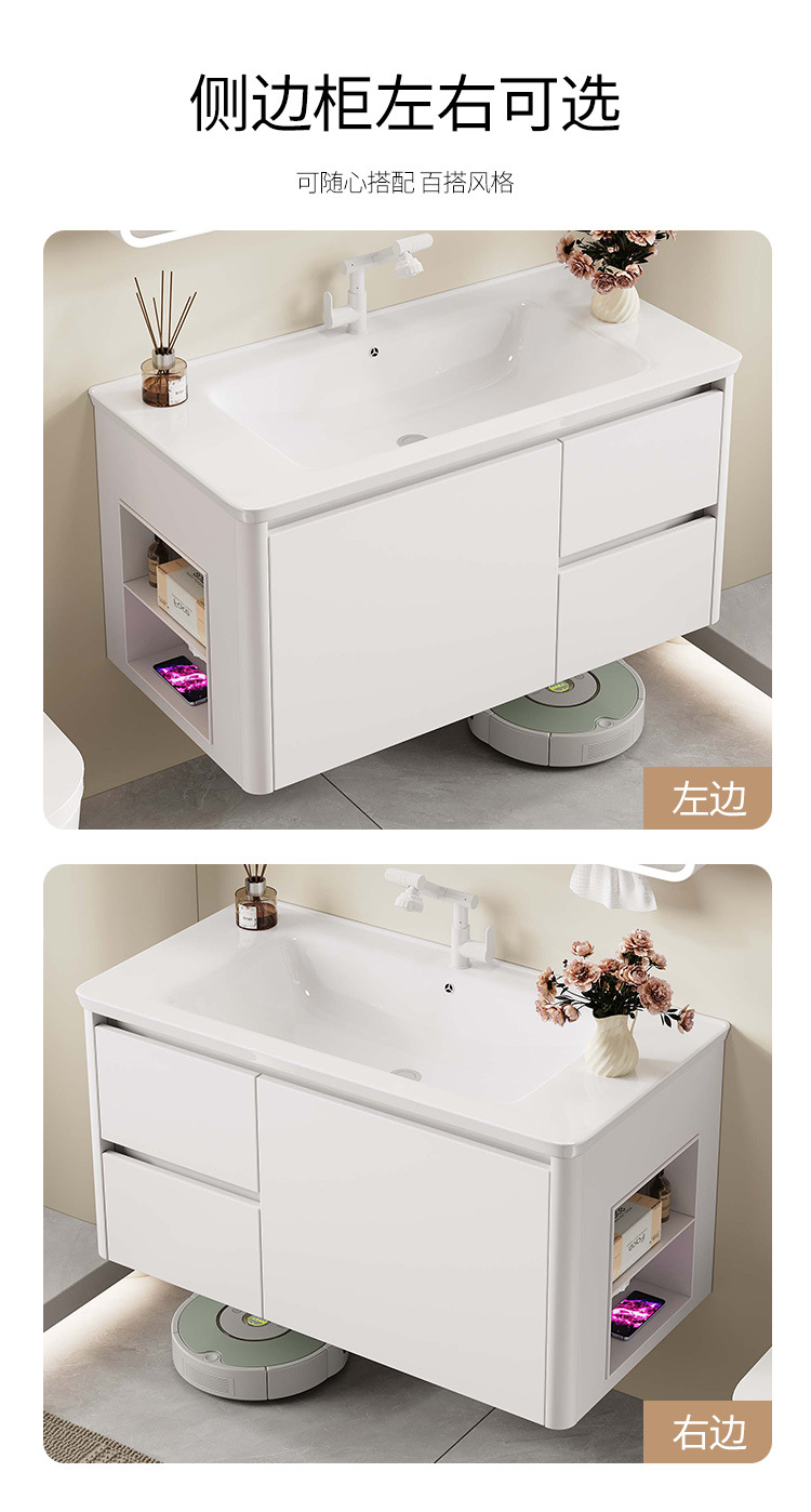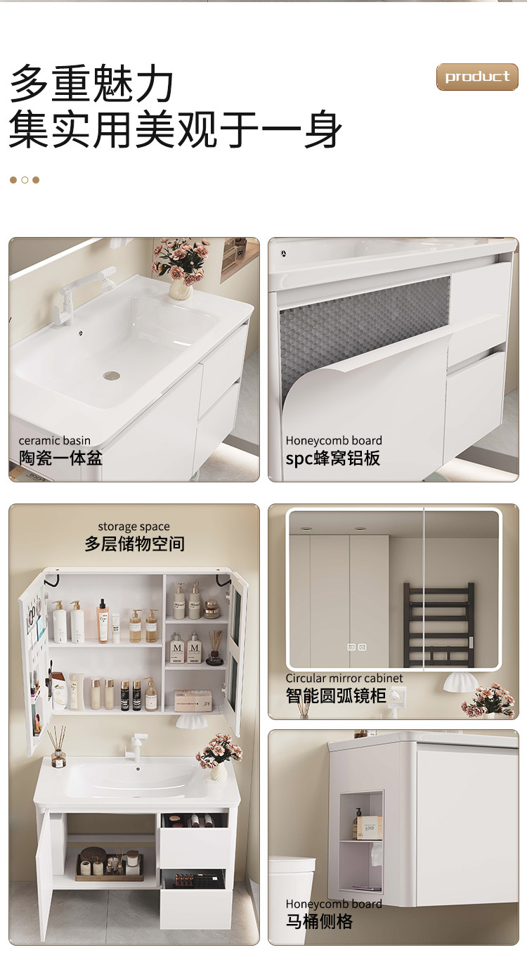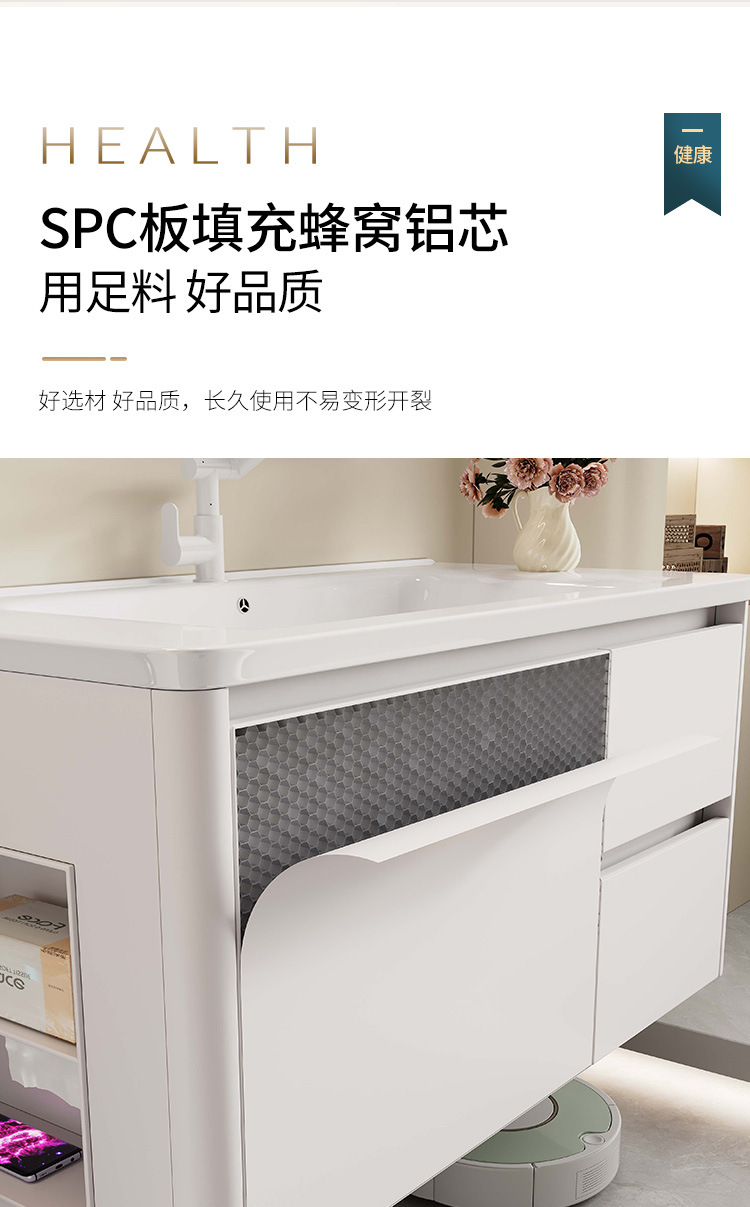 Nuevo gabinete de lavabo integrado de rejilla lateral, gabinete de baño a prueba de humedad, cajón de abeja, gabinete de almacenamiento de espejo inteligente