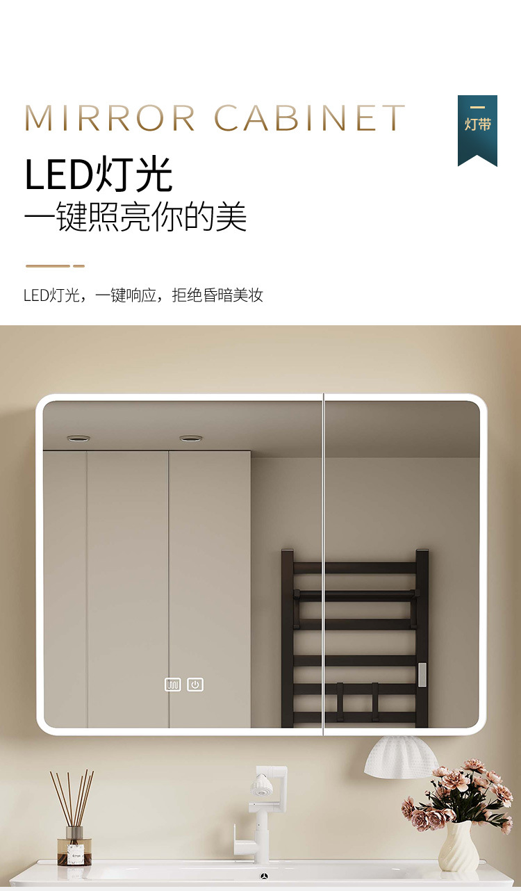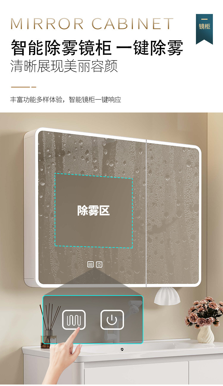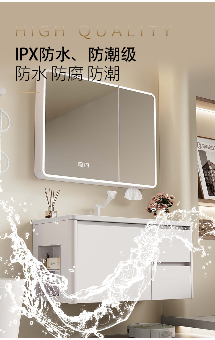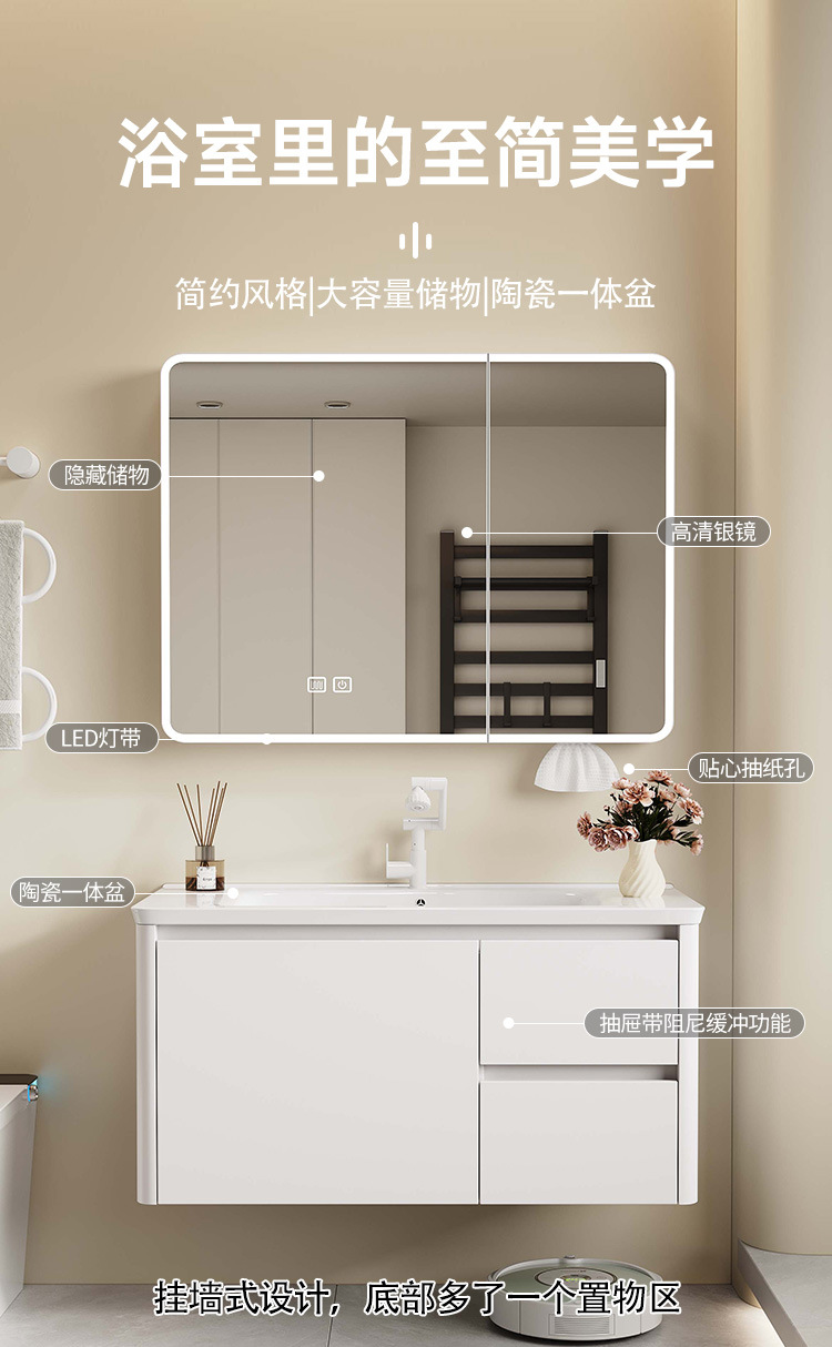 Nuevo gabinete de lavabo integrado de rejilla lateral, gabinete de baño a prueba de humedad, cajón de abeja, gabinete de almacenamiento de espejo inteligente