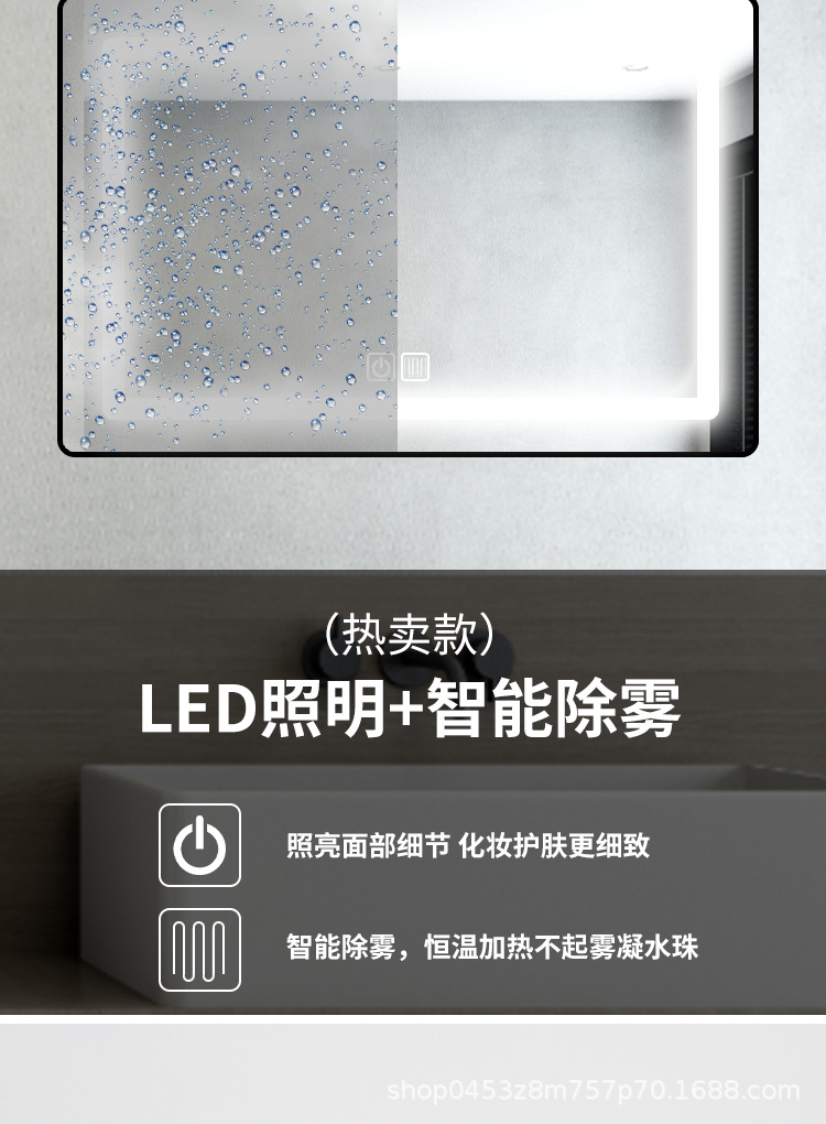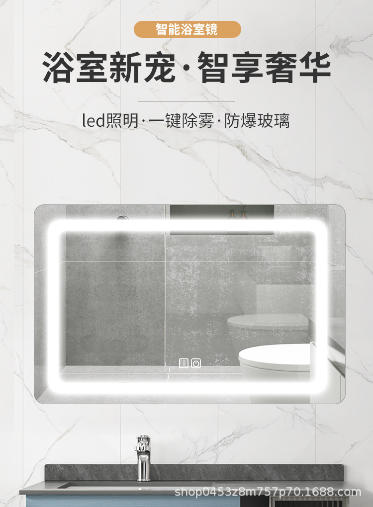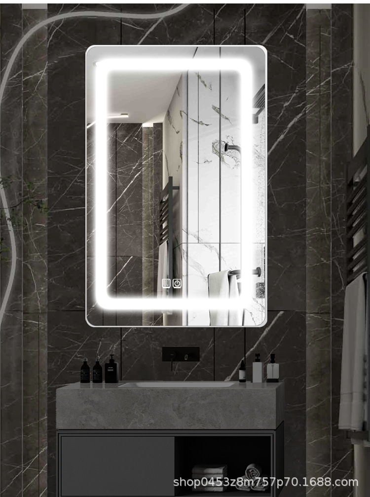 Espejo inteligente cuadrado pantalla táctil baño con lámpara anti-nebble baño colgado pared espejo maquillaje