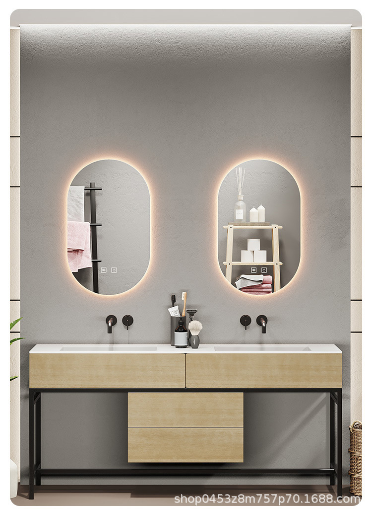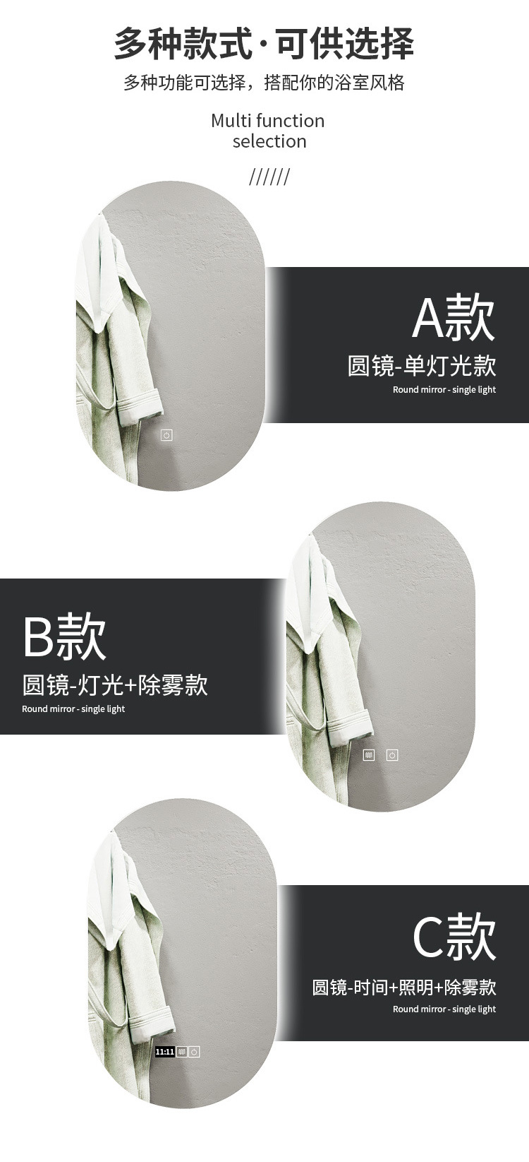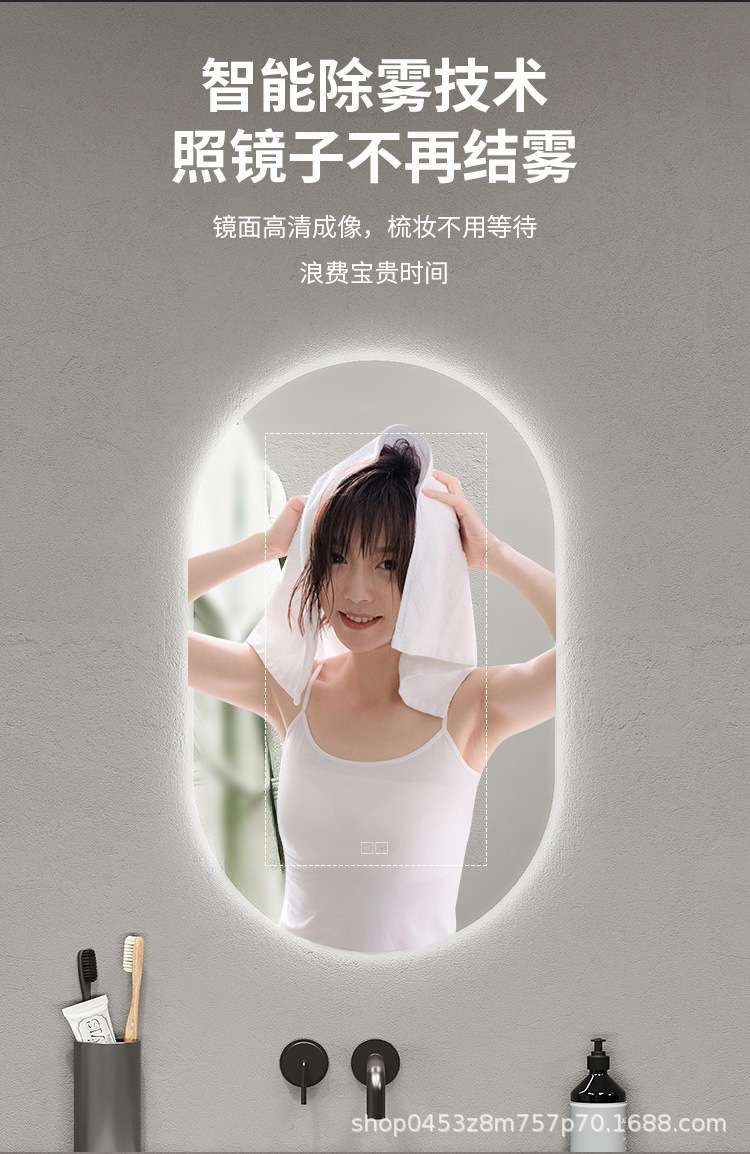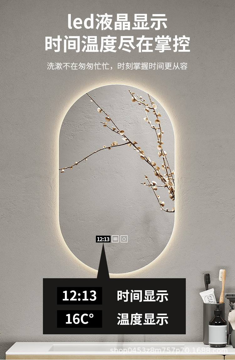 espejo de baño inteligente pista oval anti-fog led luminoso baño con lámpara en la pared del baño tipo de pared colgante doméstica