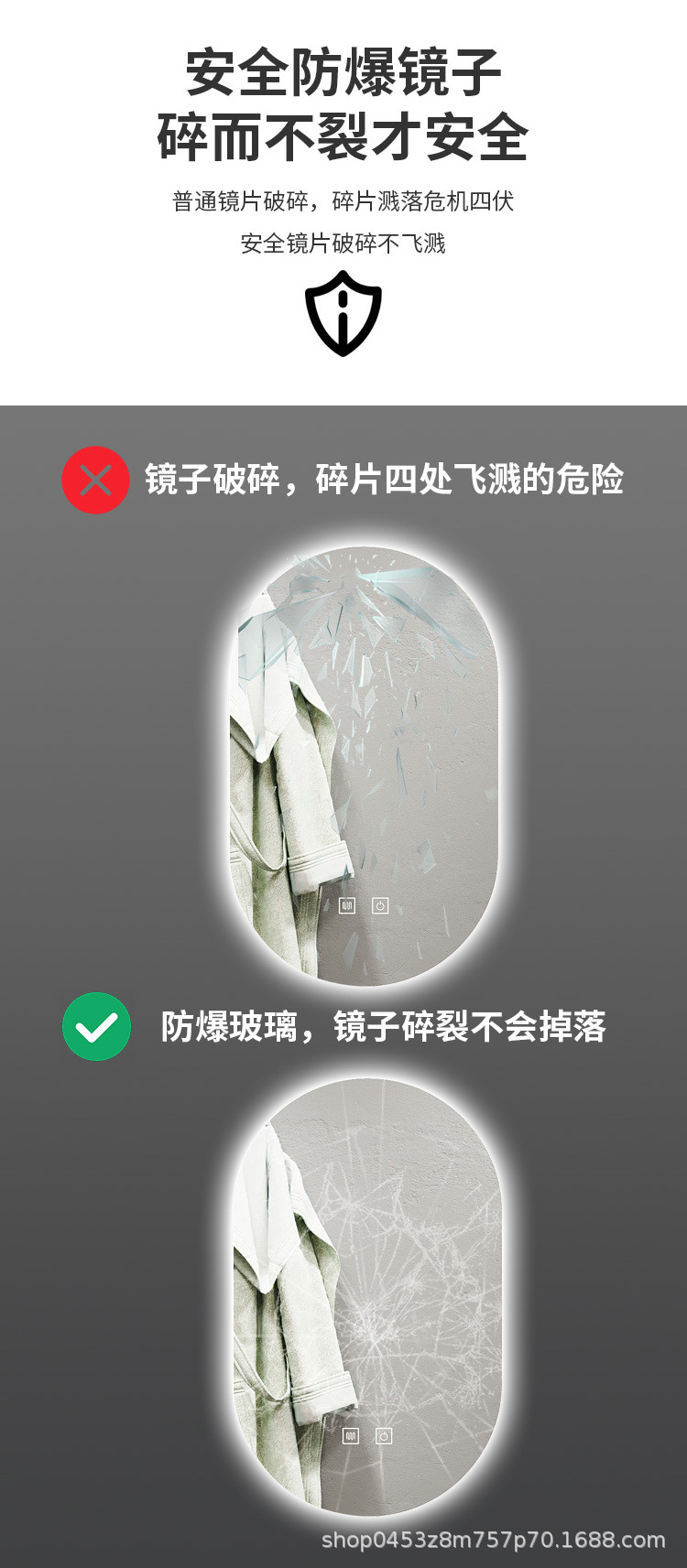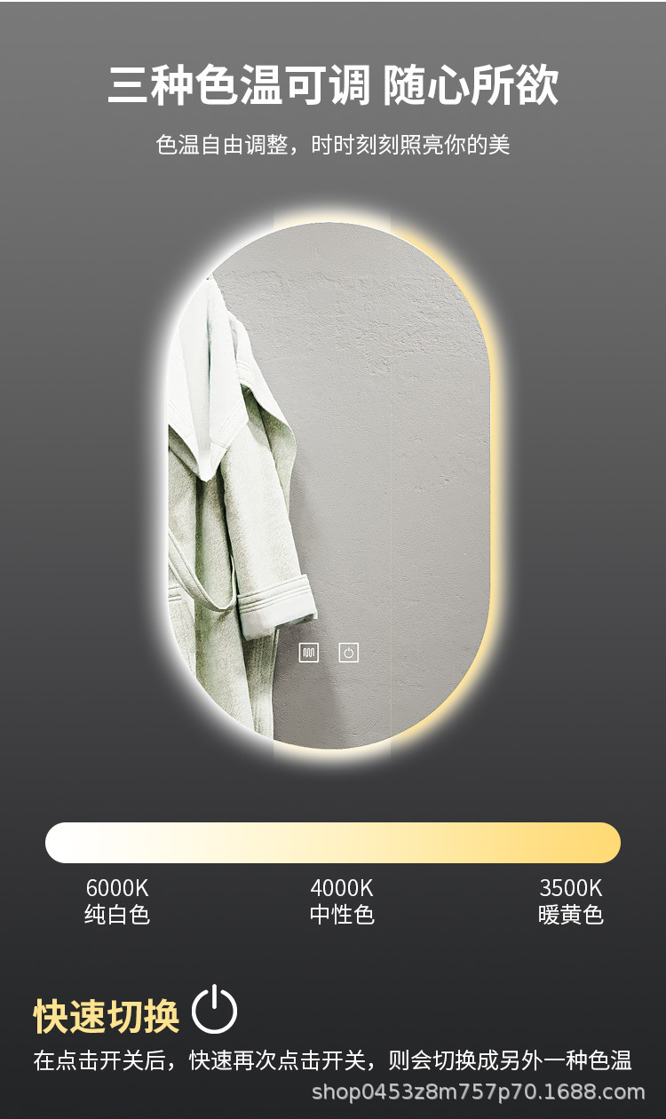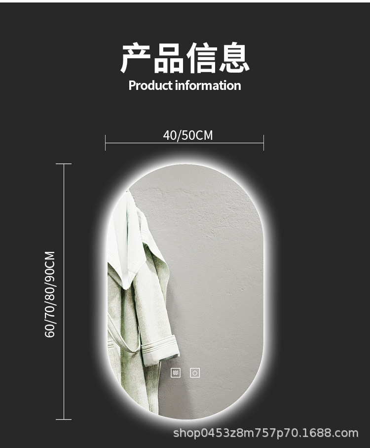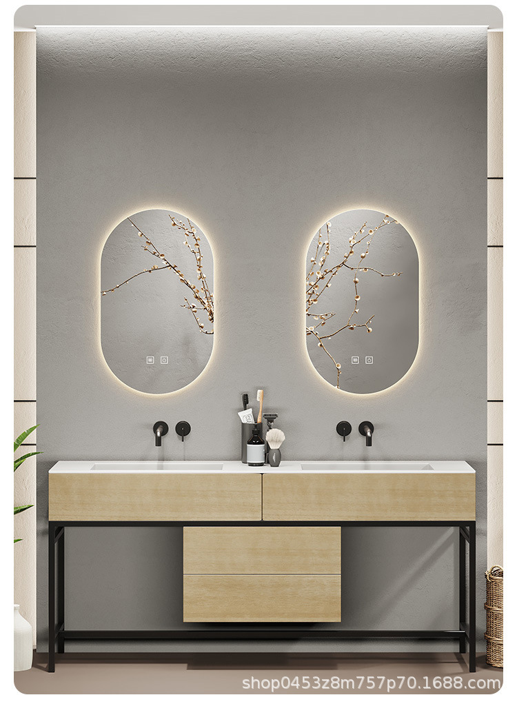 espejo de baño inteligente pista oval anti-fog led luminoso baño con lámpara en la pared del baño tipo de pared colgante doméstica