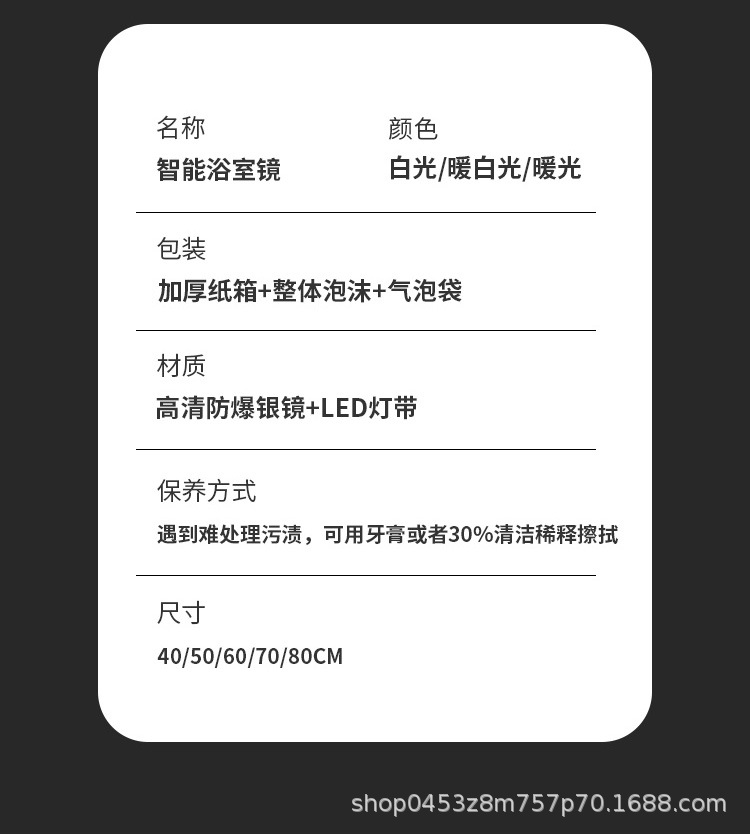 | Color | 40 * 60 pista redonda inteligente de retroiluminación - iluminación (monocromática), 40 * 70 pista redonda inteligente de retroiluminación - iluminación (monocromática), 50 * 80 pista redonda inteligente de retroiluminación - iluminación (monocromática), 50 * 90 pista redonda inteligente de retroiluminación - iluminación (monocromática), 40 * 60 pista redonda inteligente de retroiluminación - iluminación (tricolor), 40 * 70 pista redonda inteligente de retroiluminación - iluminación (tricolor), 50 * 80 pista redonda inteligente de retroiluminación - iluminación (tricolor), 50 * 90 pista redonda inteligente de retroiluminación - iluminación (tricolor), 40 * 60 pista redonda inteligente de retroiluminación - iluminación + desinebriamiento (monocromático), 40 * 70 pista redonda inteligente de retroiluminación - iluminación + desinebriamiento (monocromático), 50 * 80 pista redonda inteligente de retroiluminación - iluminación + desinebriamiento (monocromático), 50 * 90 pista redonda inteligente de retroiluminación - iluminación + desinebriamiento (monocromático), 40 * 60 pista redonda inteligente de retroiluminación - iluminación + desinebriamiento (tricolor), 40 * 70 pista redonda inteligente de retroiluminación - iluminación + desinfracción (Tricolor), 50 * 80 pista redonda inteligente de retroiluminación - iluminación + desinfracción (Tricolor), 50 * 90 pista redonda inteligente de retroiluminación - iluminación + desinfracción (Tricolor), 40 * 60 pista redonda inteligente de retroiluminación - iluminación + desinfracción + pantalla de tiempo (monocromática), 40 * 70 pista redonda inteligente de retroiluminación - iluminación + desinfracción + pantalla de tiempo (monocromática), 50 * 80 pista redonda inteligente de retroiluminación - iluminación + desineblinación + pantalla de tiempo (monocromática), 50 * 90 pista redonda inteligente de retroiluminación - iluminación + desineblinación + pantalla de tiempo (monocromática), 40 * 60 pista redonda inteligente de retroiluminación - iluminación + desineblinación + pantalla de tiempo (tricolor), 40 * 70 pista redonda inteligente de retroiluminación - iluminación + desineblinación + pantalla de tiempo (tricolor), 50 * 80 pista redonda inteligente de retroiluminación - iluminación + desineblinación + pantalla de tiempo (tricolor), 50 * 90 retroiluminación inteligente pista redonda - iluminación + desfogado + pantalla de tiempo (Tricolor) |