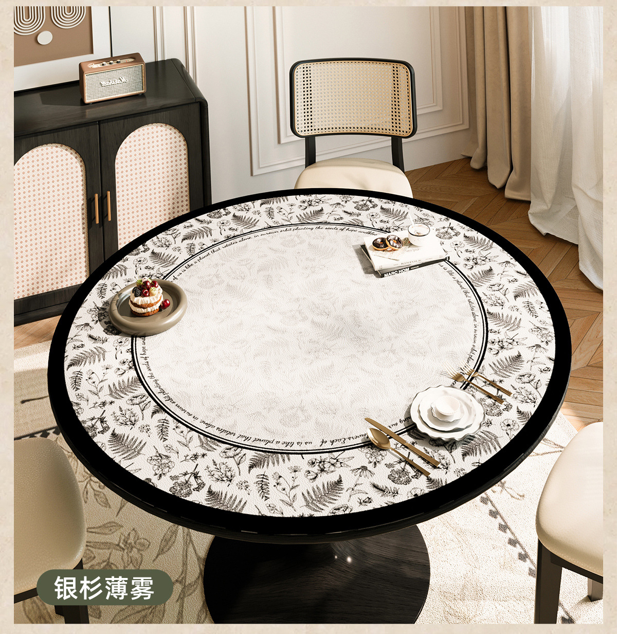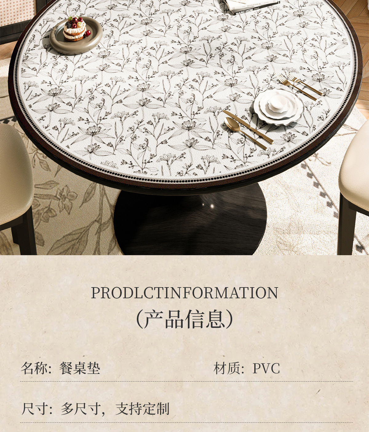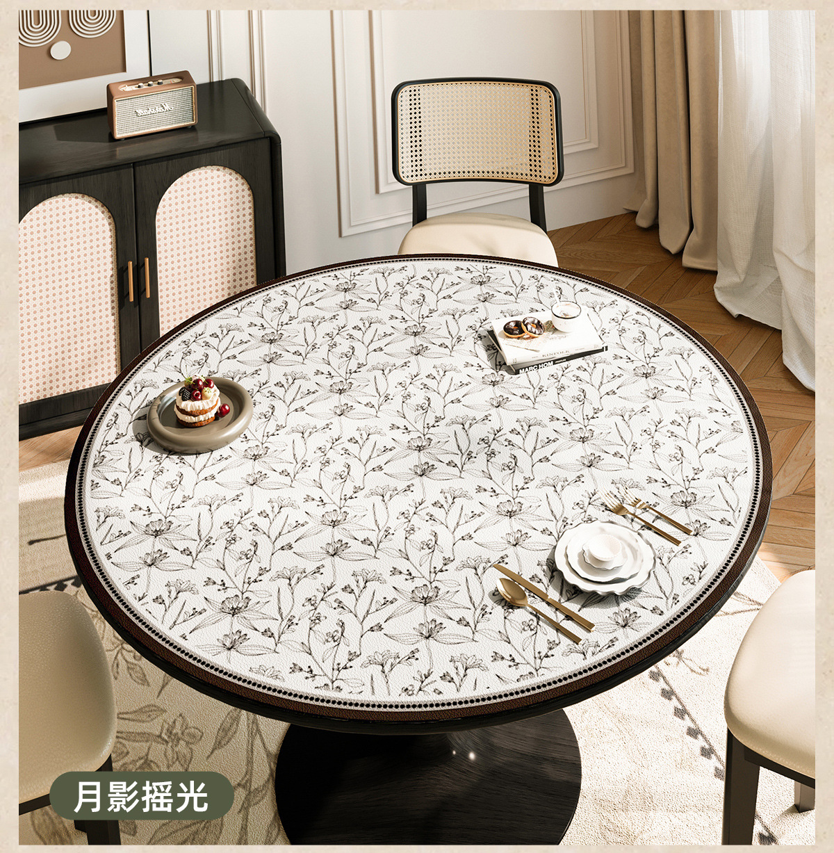 2025 nuevo estilo chino mesa redonda impermeable a prueba de agua a prueba de aceite sin lavado almohadilla de mesa redonda de cuero almohadilla de protección de mesa redonda