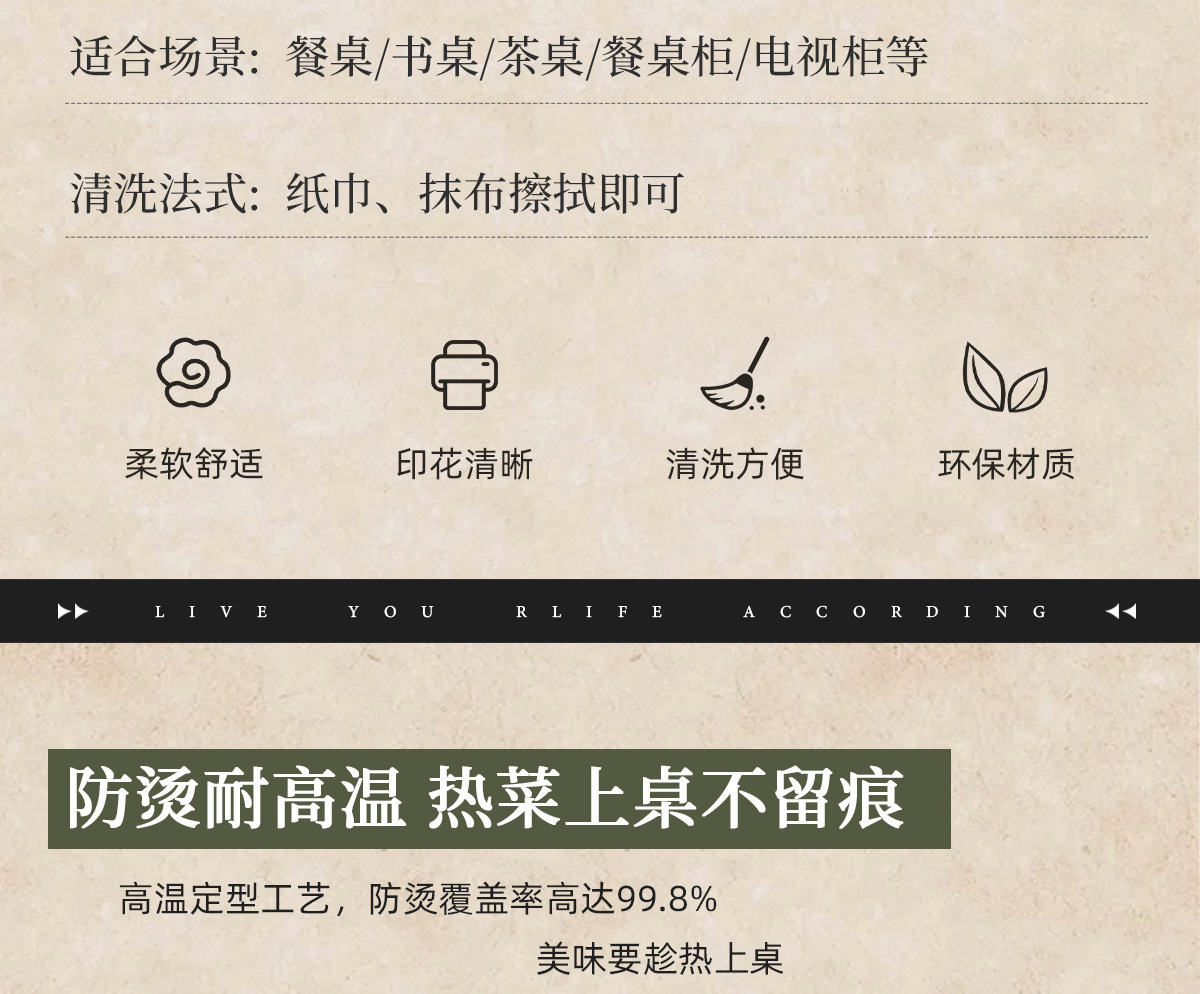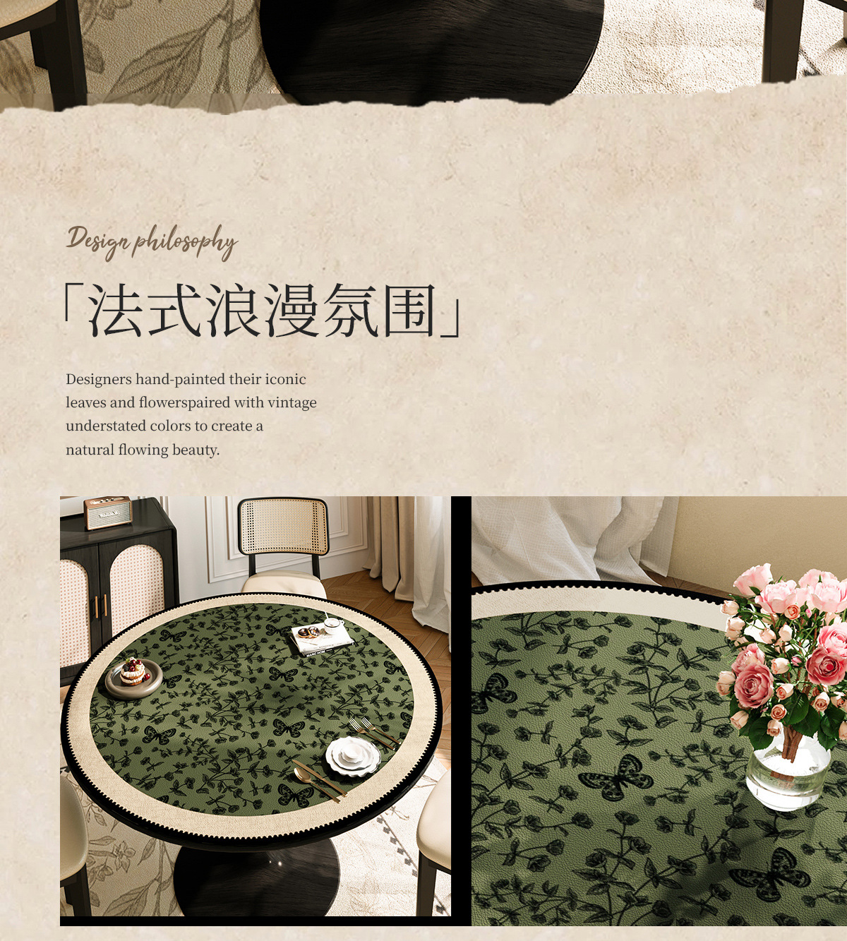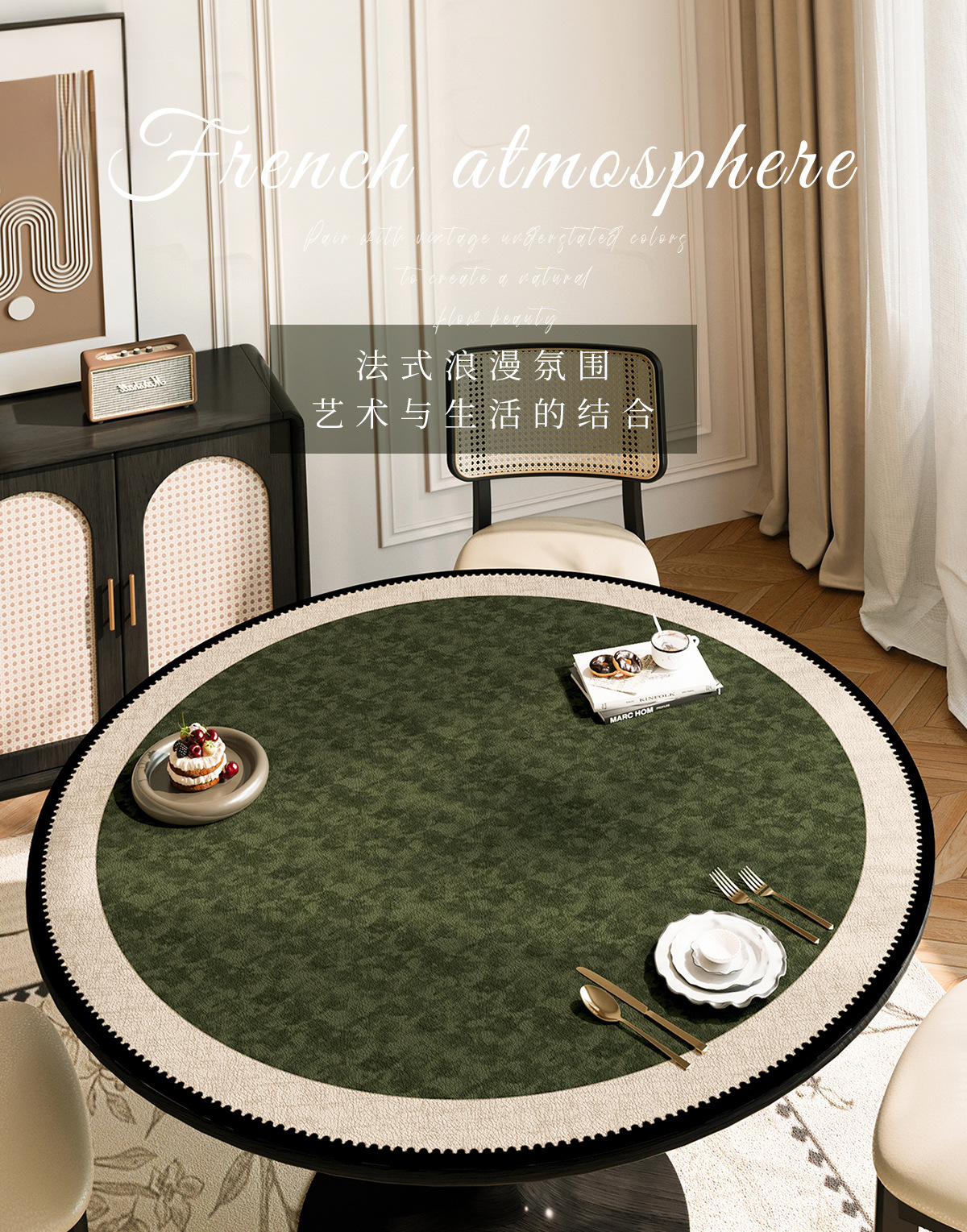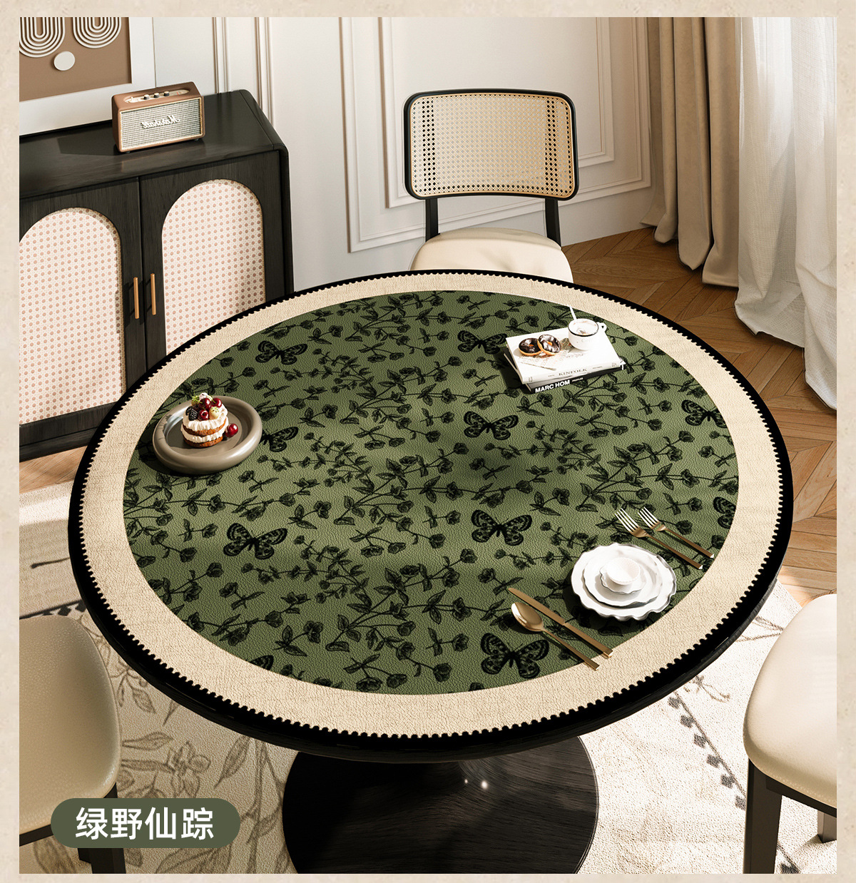 2025 nuevo estilo chino mesa redonda impermeable a prueba de agua a prueba de aceite sin lavado almohadilla de mesa redonda de cuero almohadilla de protección de mesa redonda