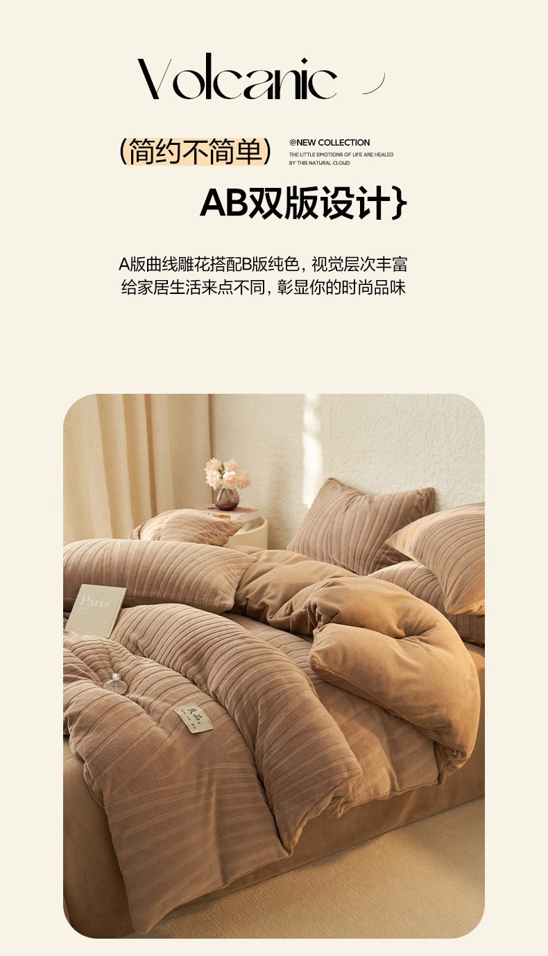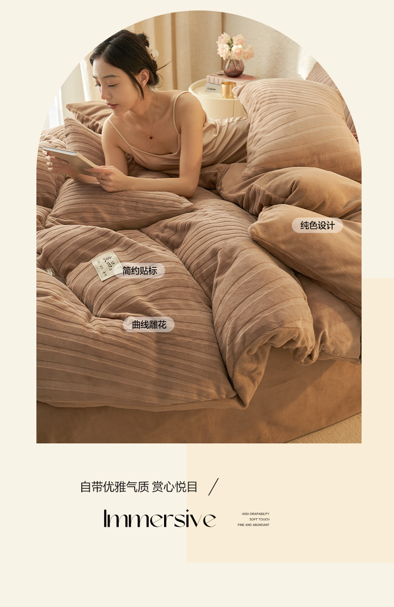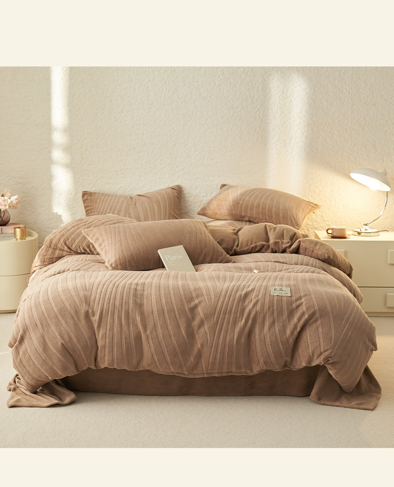 Otoño y invierno tallado de leche de lana de cuatro piezas lujoso lujoso de alto grado engrosado colcha de cama de lana de coral brida