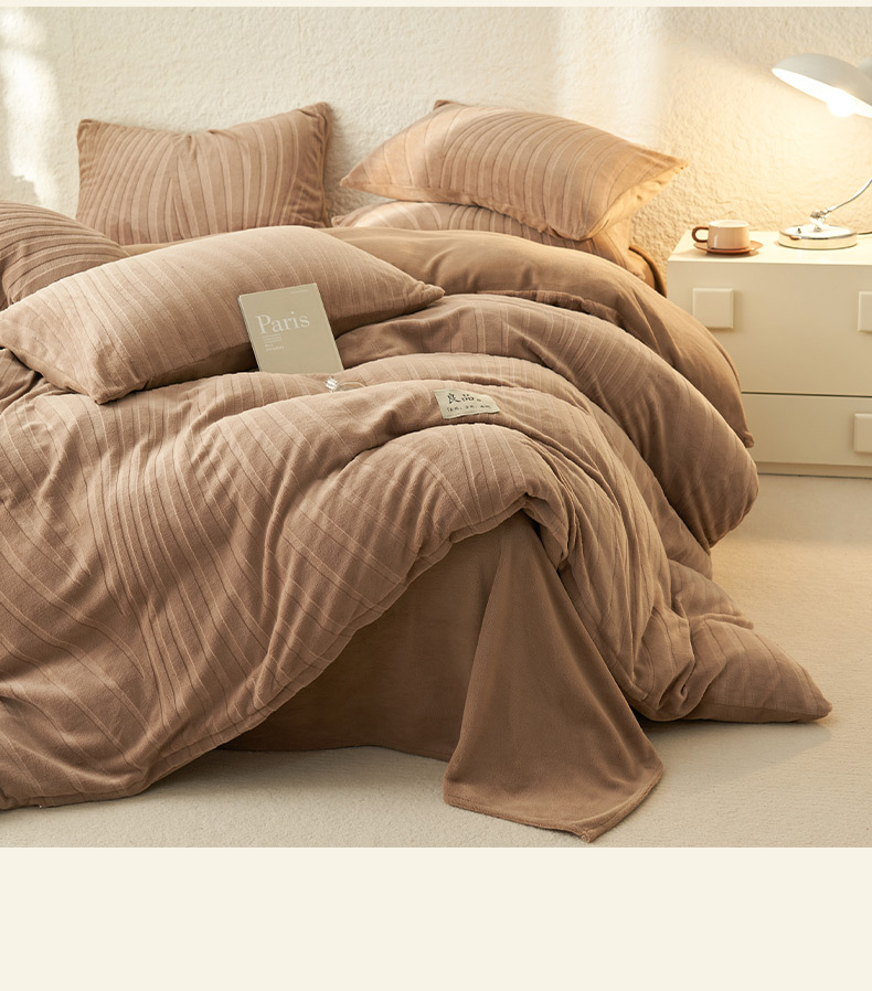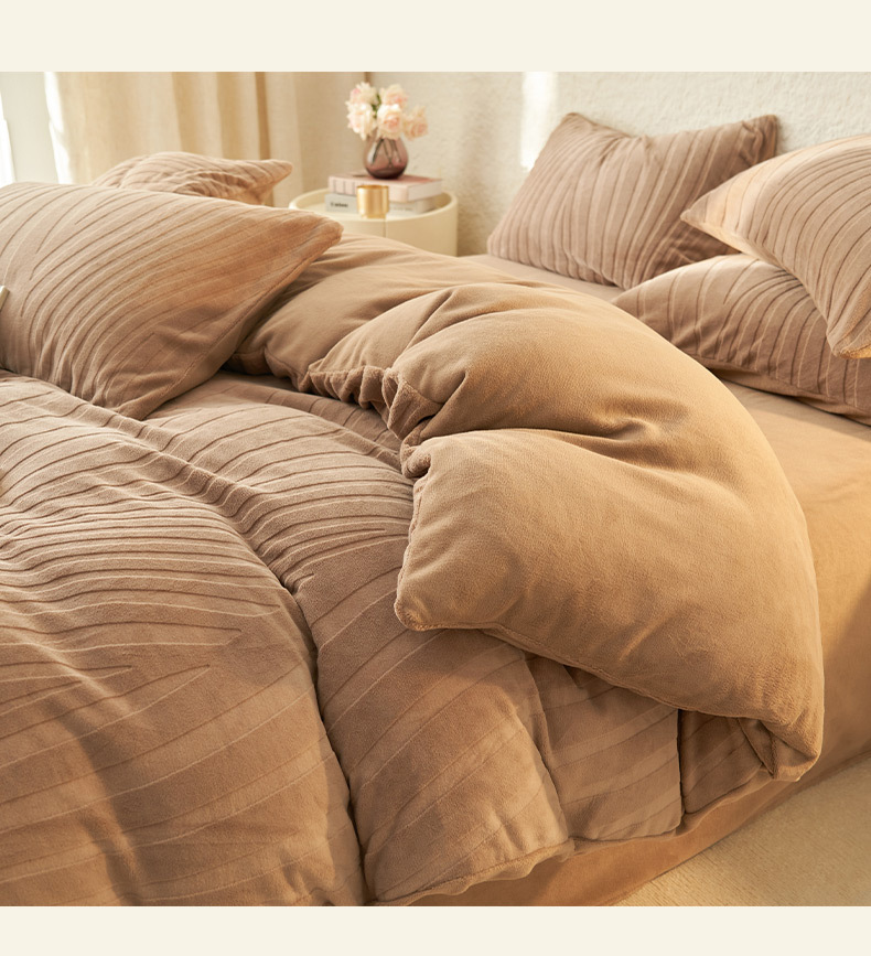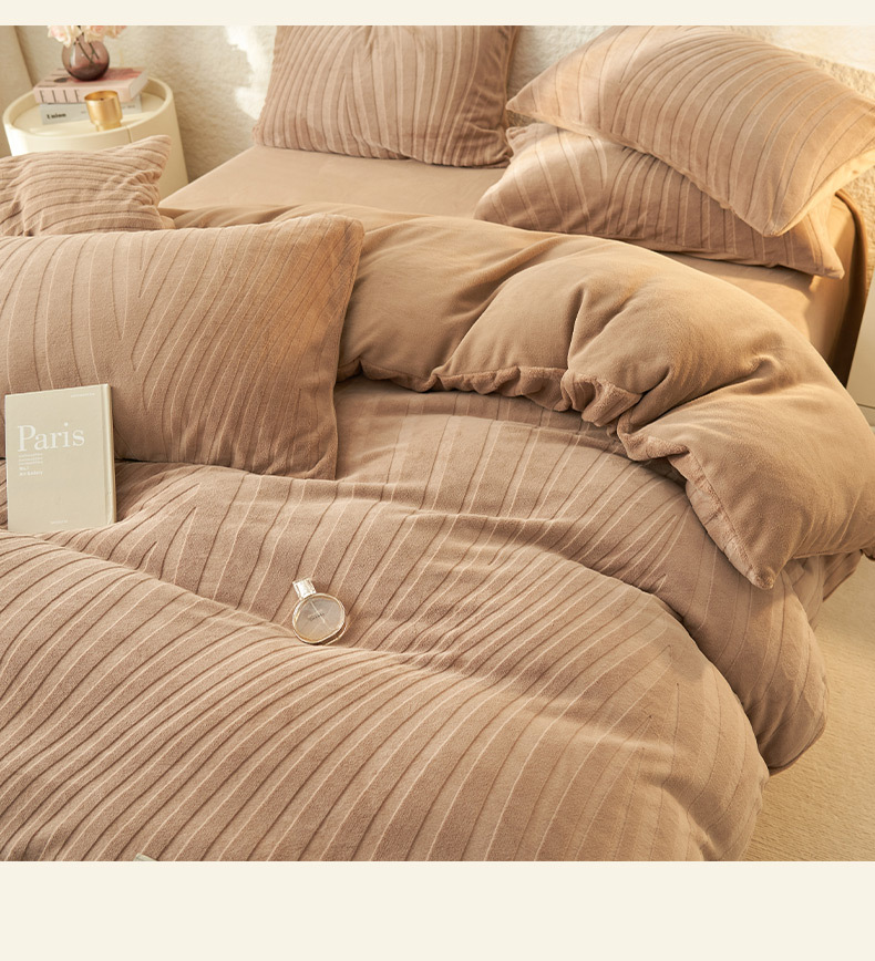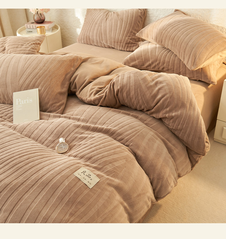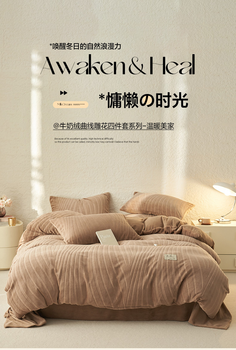 Otoño y invierno tallado de leche de lana de cuatro piezas lujoso lujoso de alto grado engrosado colcha de cama de lana de coral brida