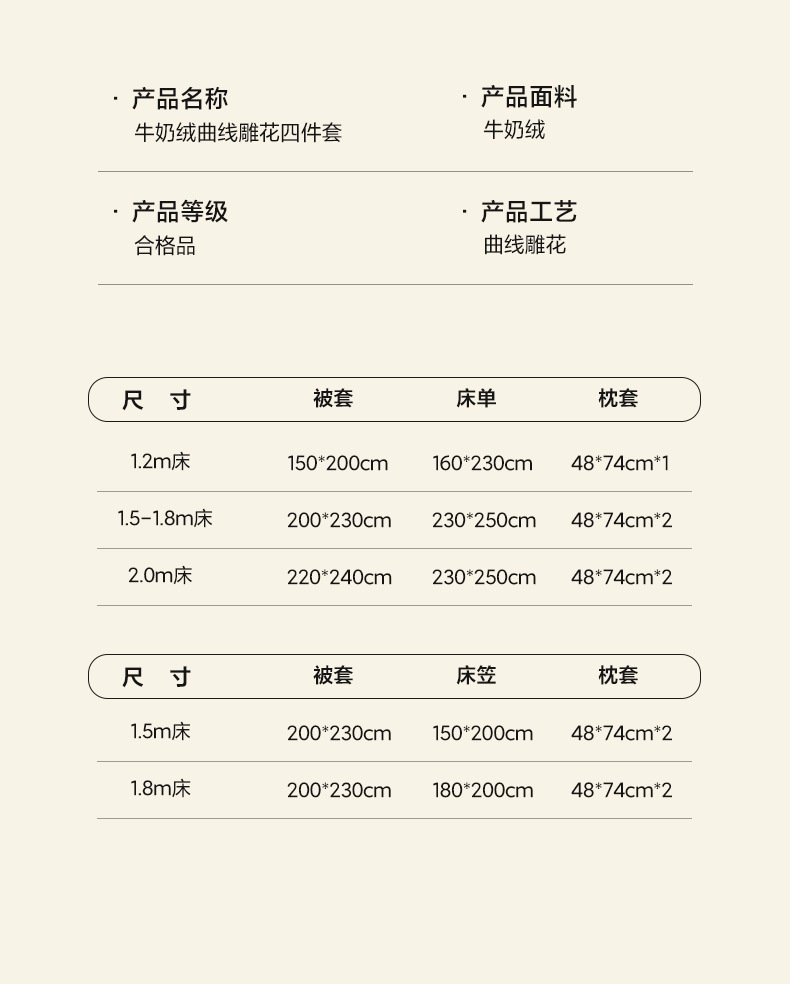 | Número de artículo | MC - 230g leche veludo curva tallado conjunto de cuatro piezas |