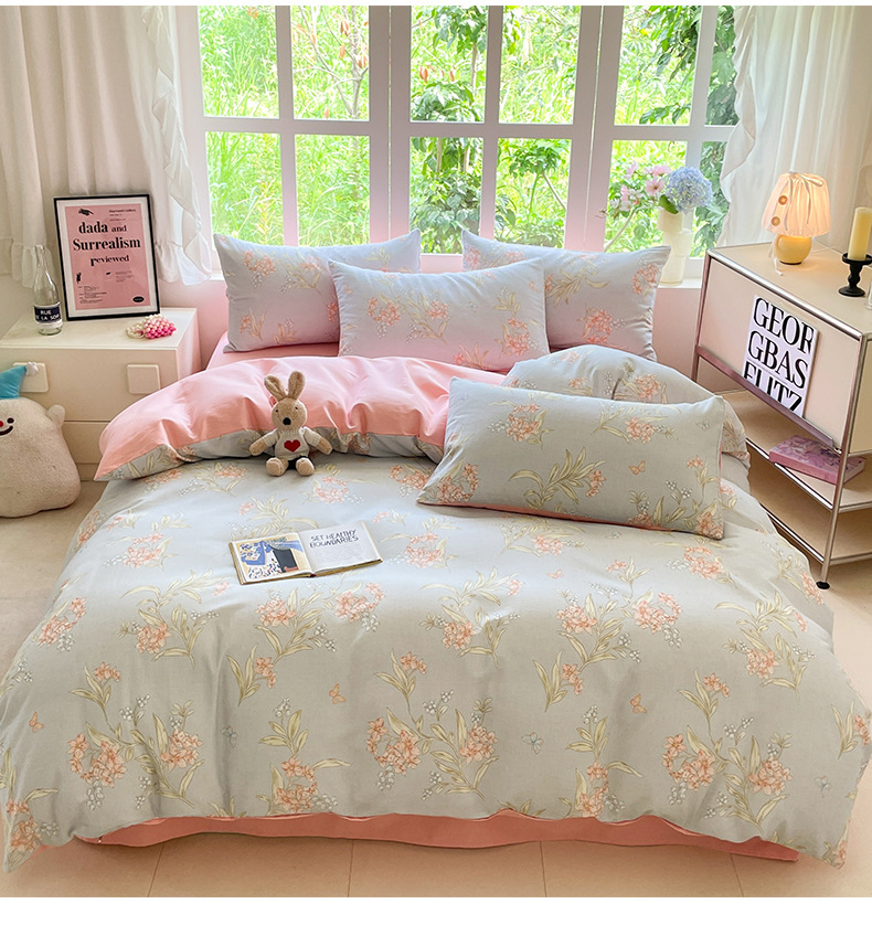 Cuatro piezas de algodón, ropa de cama de algodón, cubierta de edredón, sábanas de invierno gruesas, dormitorios de estudiantes, tres piezas