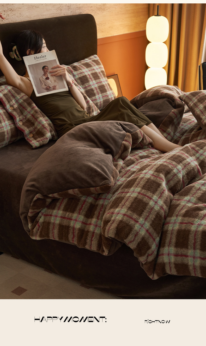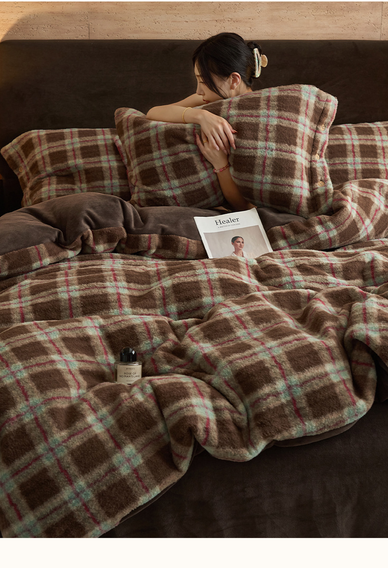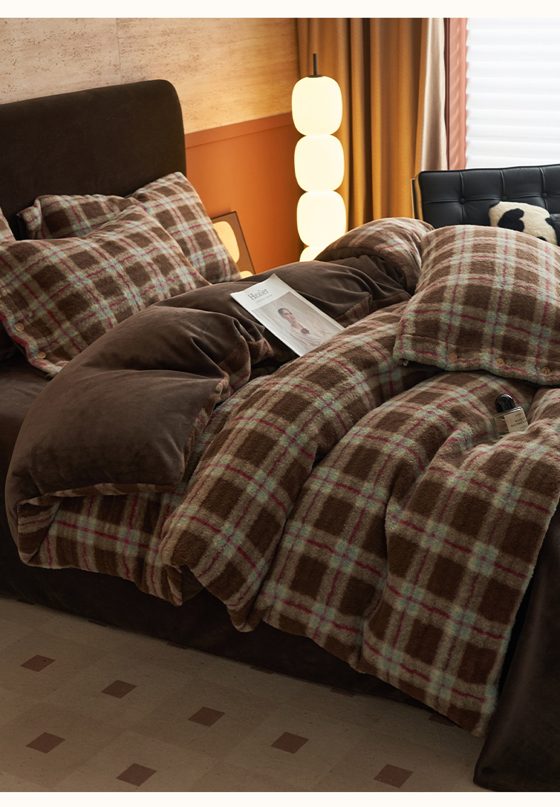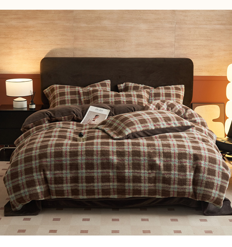 Simple estilo retro alpaca cuatro piezas de cachemira de leche de invierno engrosado sábanas de cachemira de coral colcha de cama de tres piezas