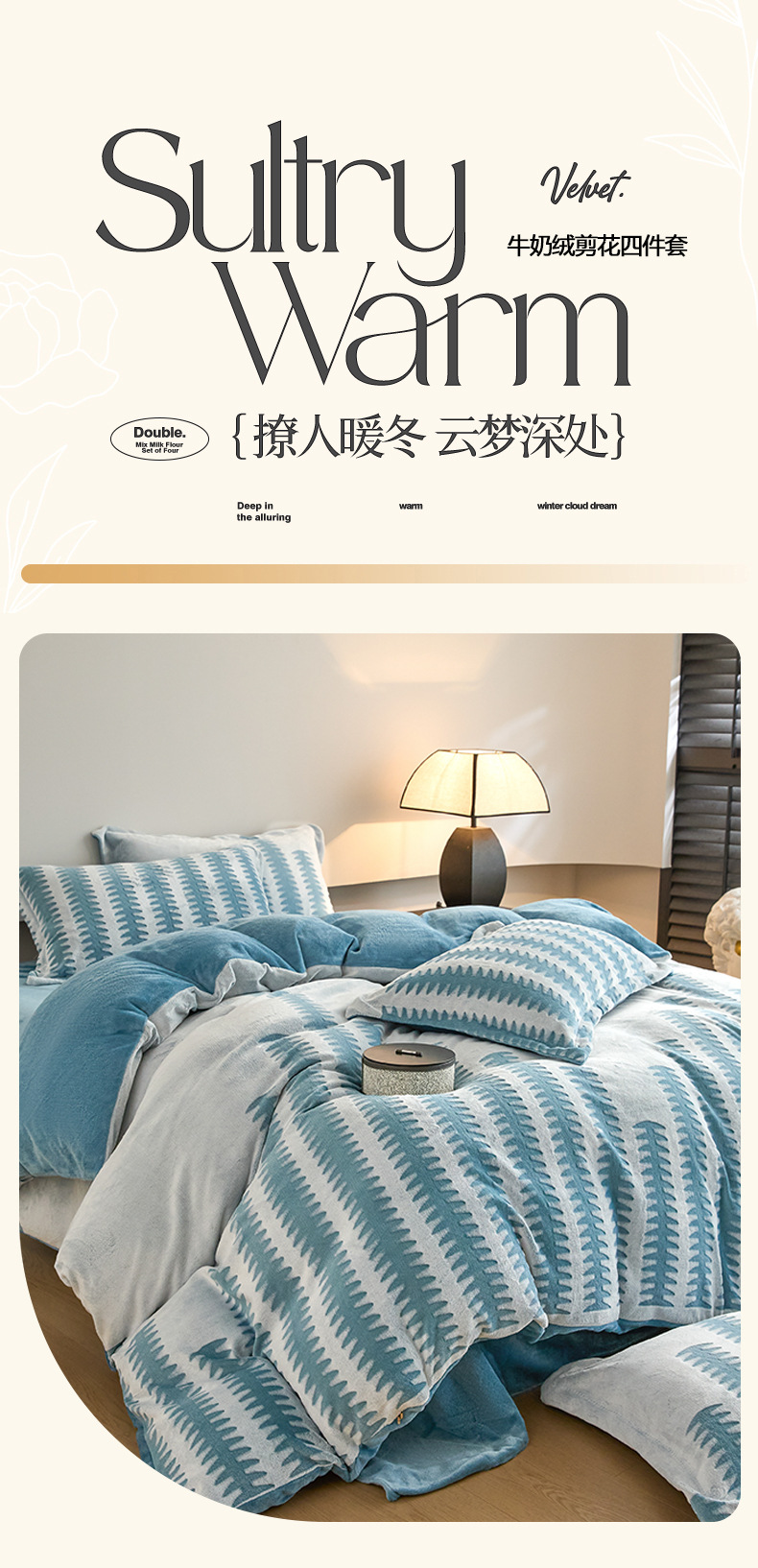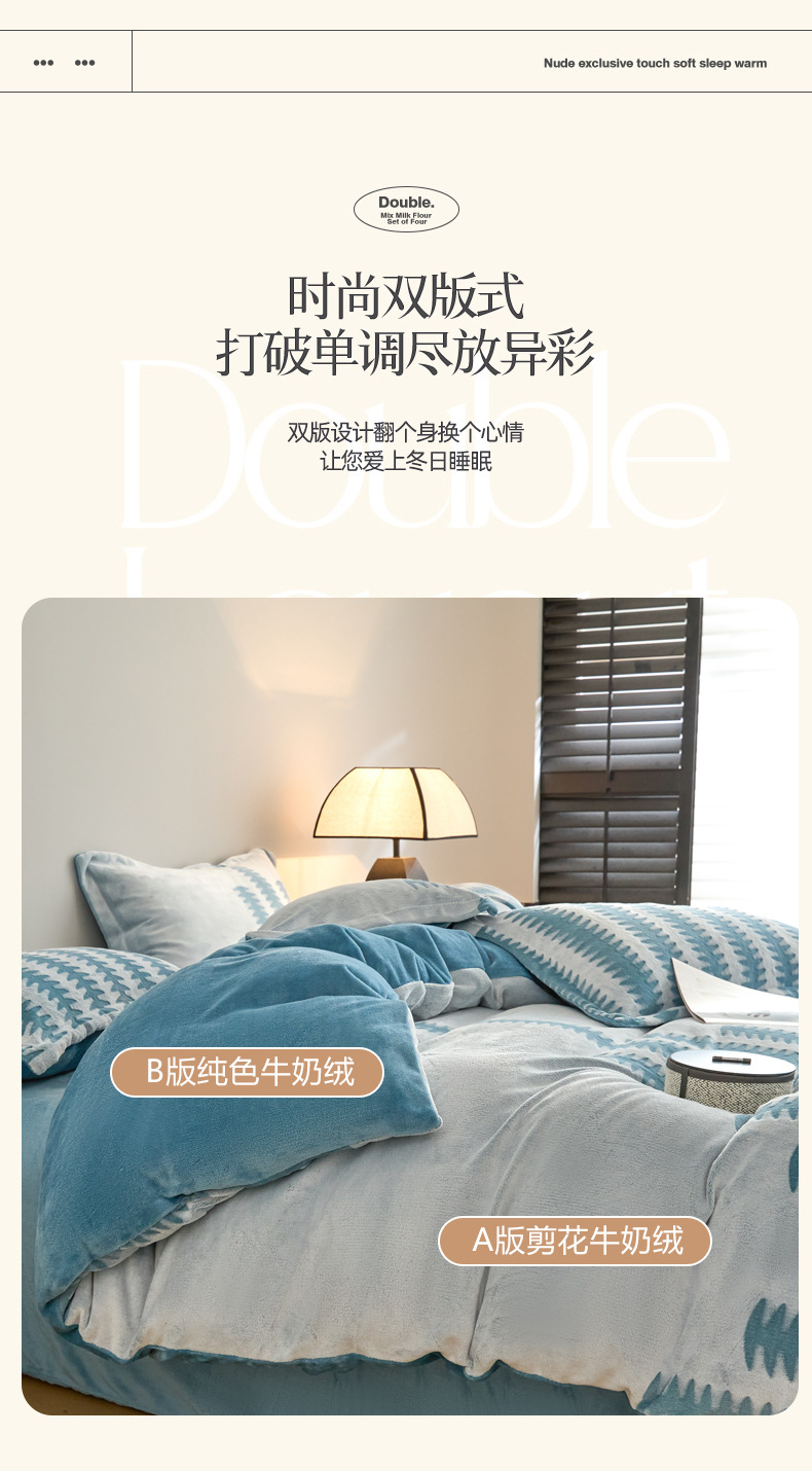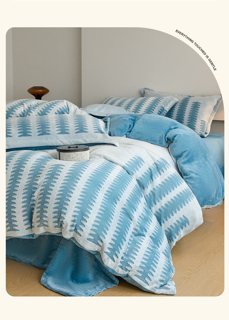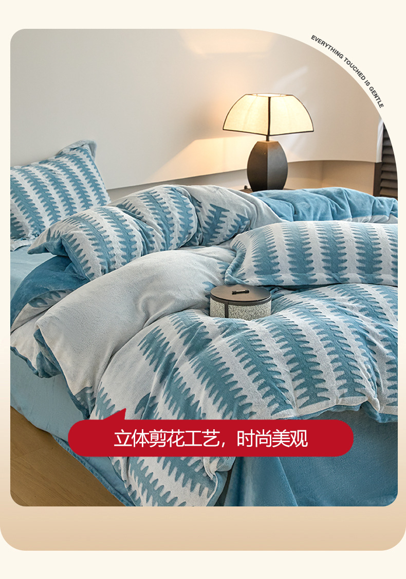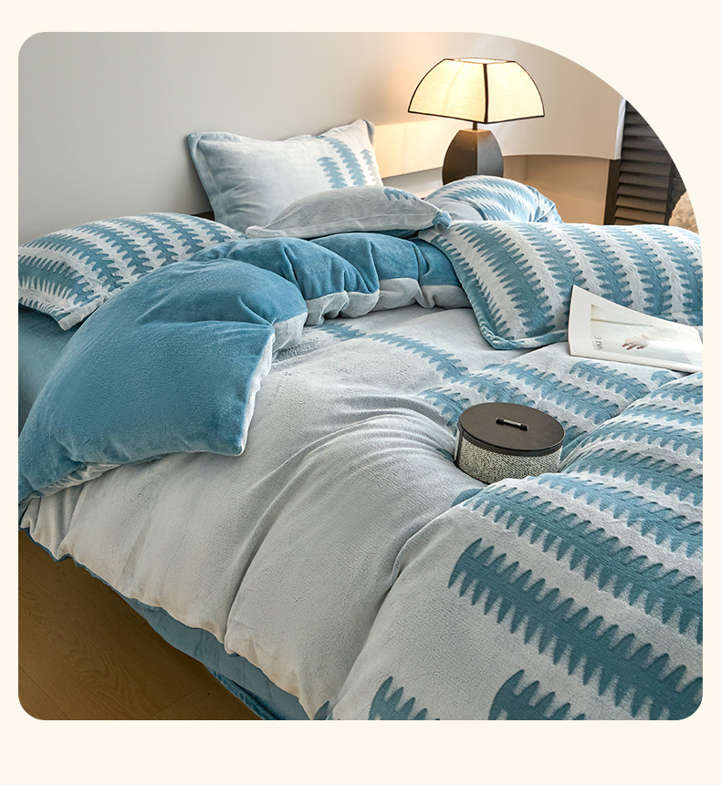 Invierno engrosado tallado cama de peluche cuatro piezas cubierta de edredón de peluche sábanas de peluche de leche engrosadas ropa de cama caliente