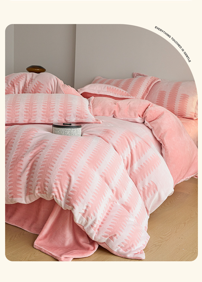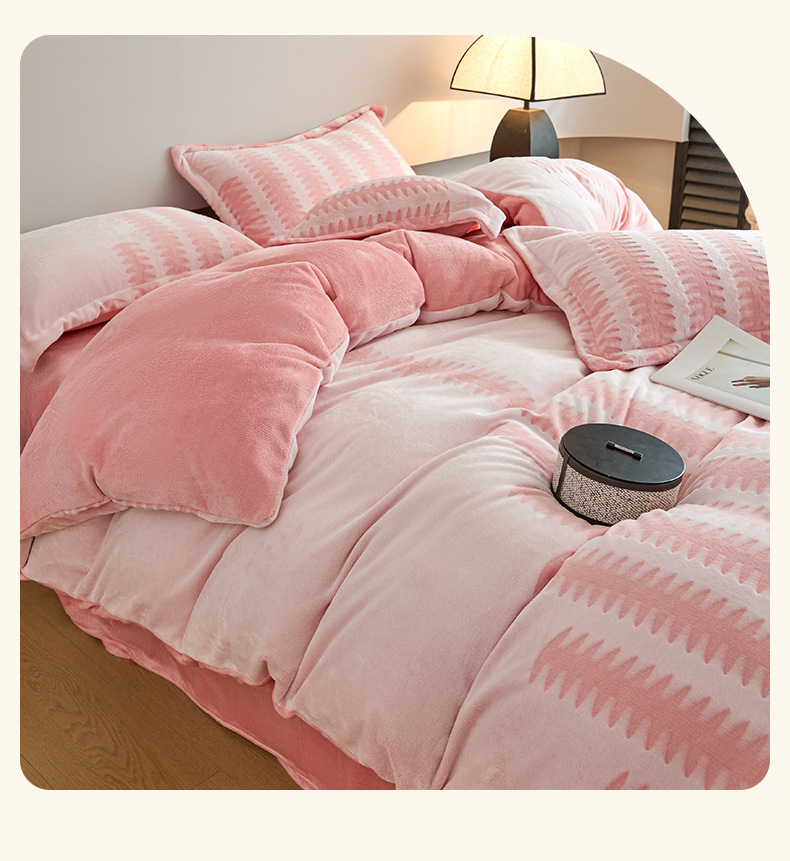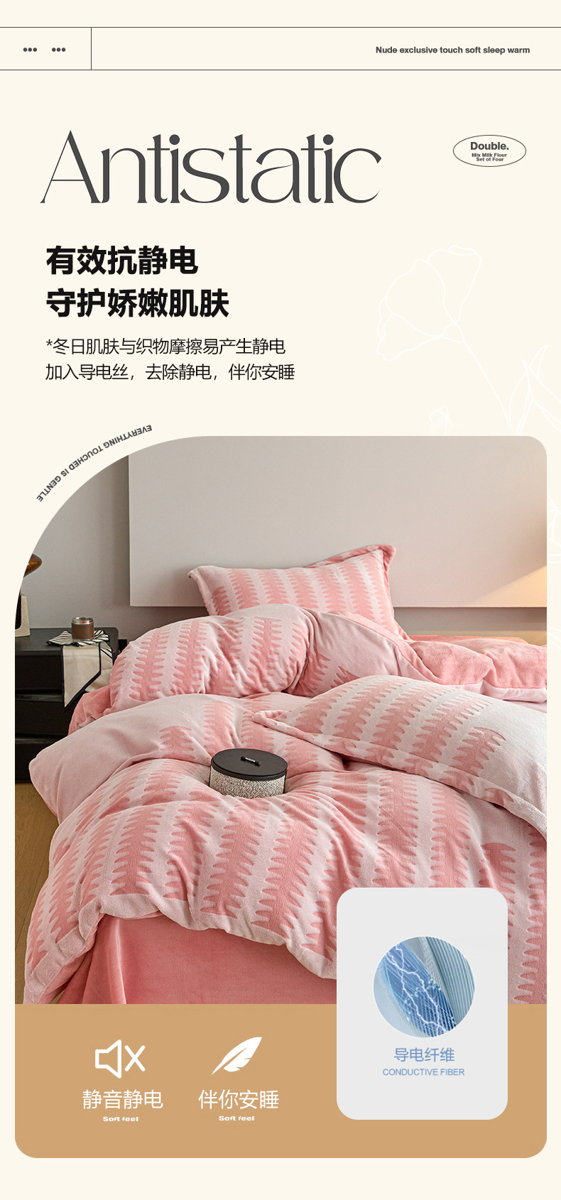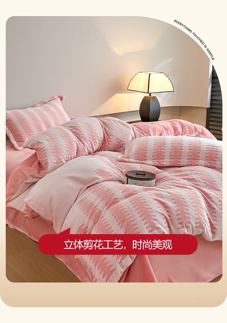Dormitorio de lujo ligero tallado cama de terciopelo de leche de cuatro piezas de otoño y invierno cálido doble edredón de coral cubierta de sábanas gruesas