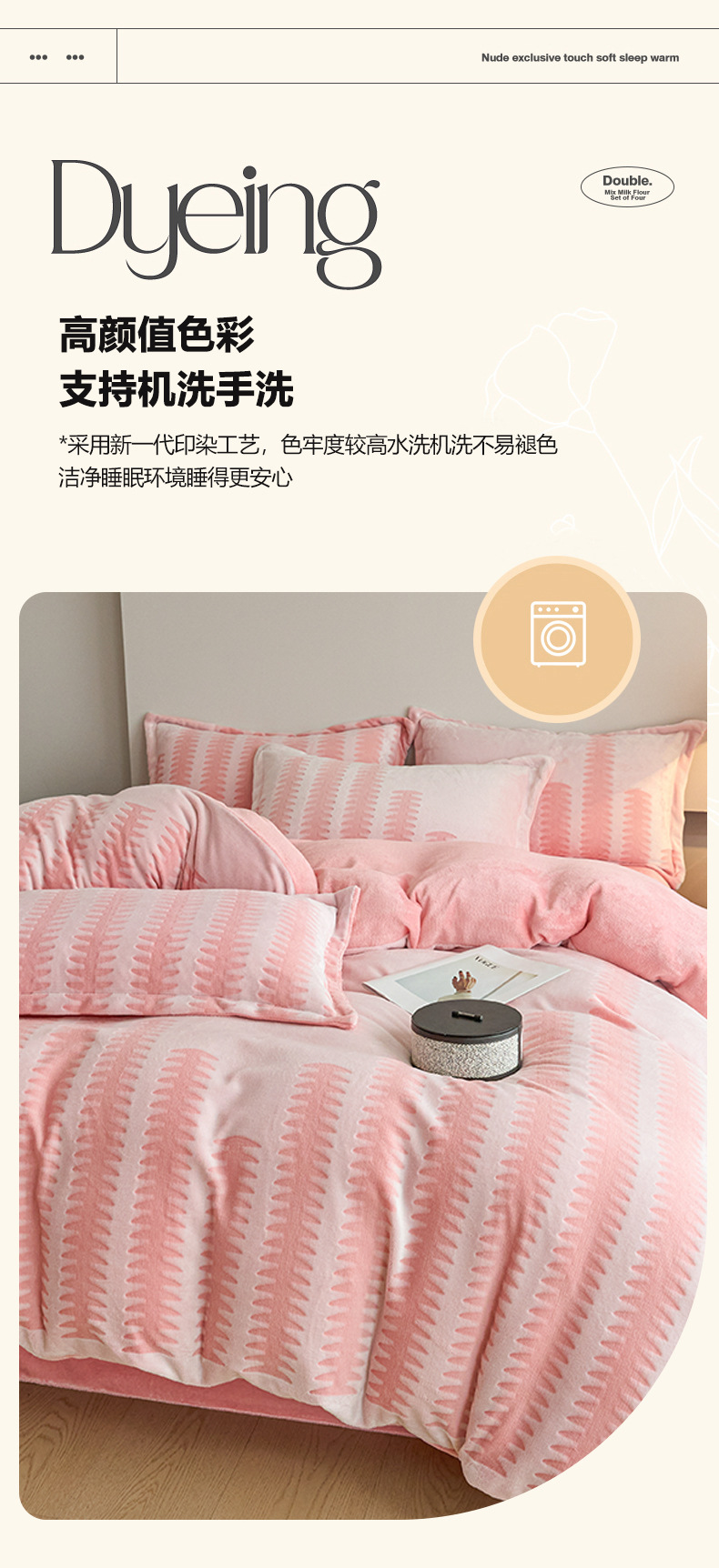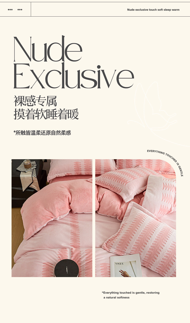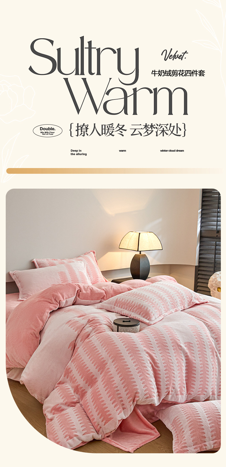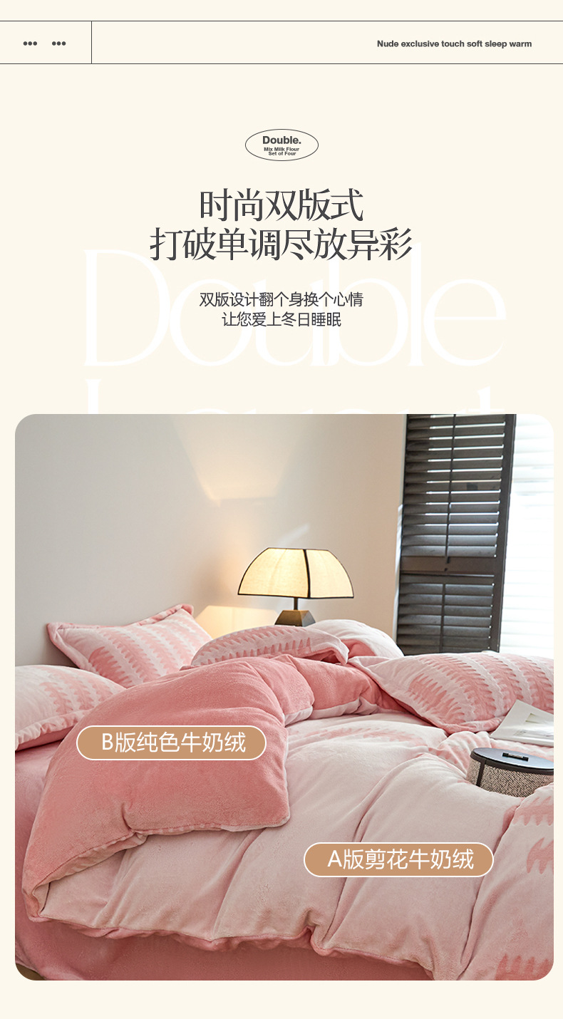 Dormitorio de lujo ligero tallado cama de terciopelo de leche de cuatro piezas de otoño y invierno cálido doble edredón de coral cubierta de sábanas gruesas
